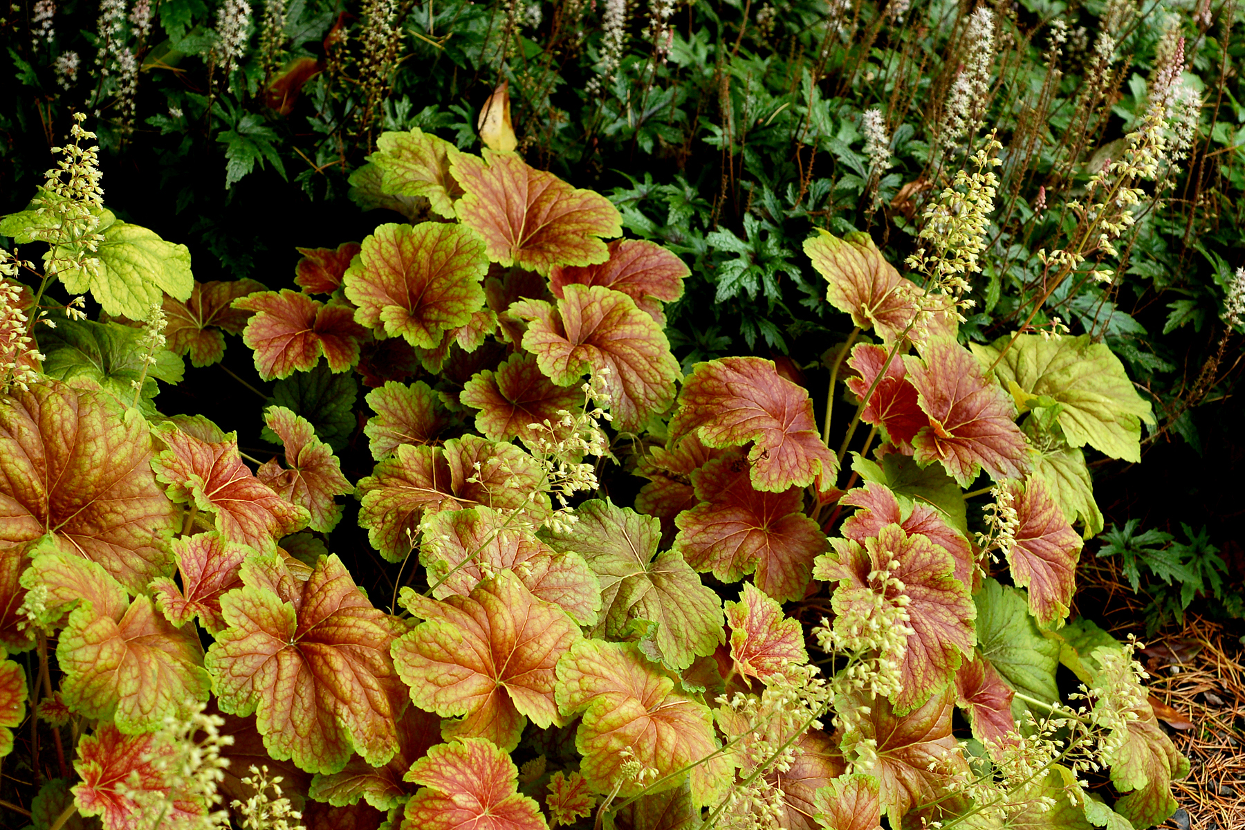Some varieties of coral bells change colors throughout the year. Spring and fall weather tends to make the colors brighter while the summer’s heat may encourage a light silvering to develop on some varieties. This is perfectly normal and should not be a cause for concern.
