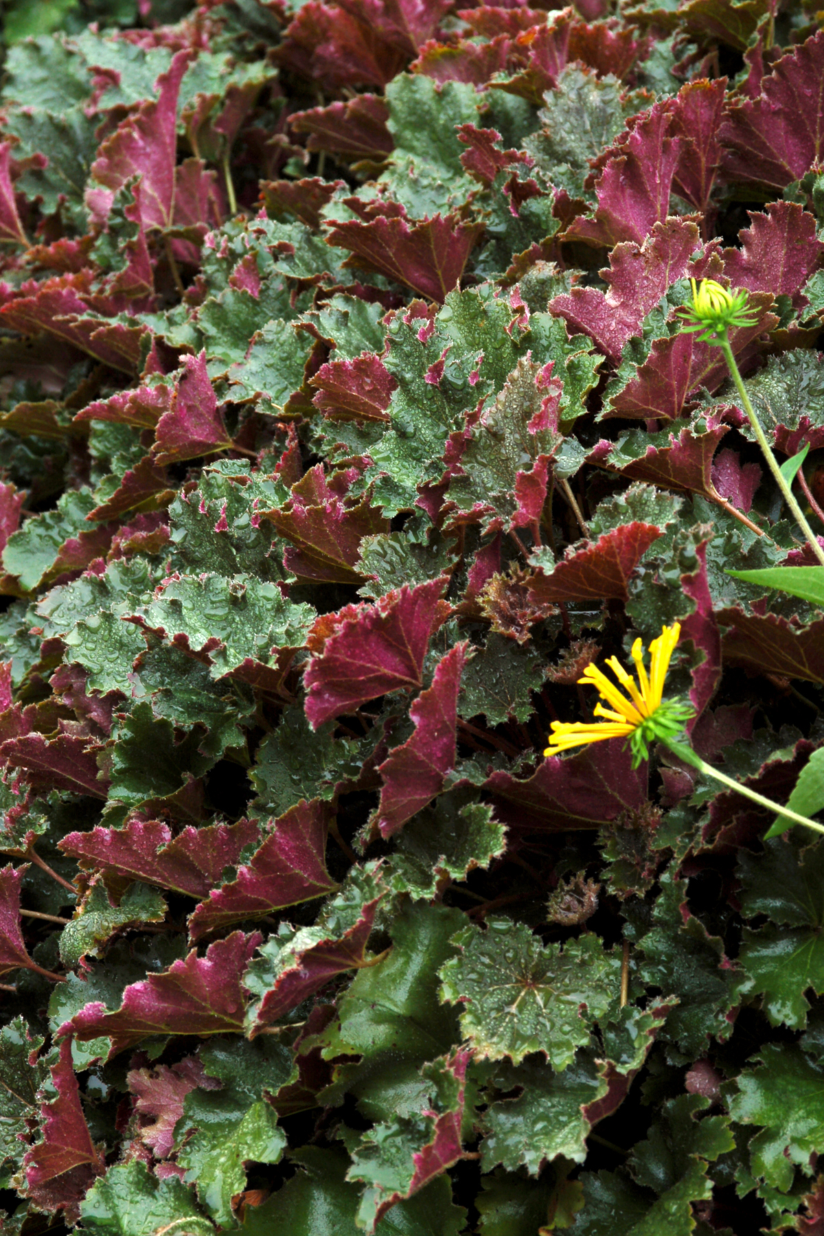 Any tips for cutting back coral bells?: Use sharp, clean shears to make any cuts, they heal faster that way. Disinfect the shears with rubbing alcohol between each plant. Prune, or pinch just before spring growth begins. Discolored foliage may just be the result of a cold snap, or conversely an overly warm stretch of weather. If foliage is affected by Heuchera rust, Pucinnia huecherae, remove the effected foliage and throw it into the garbage. Composting it at your own home isn’t removal, it’s incubation. Heuchera rust comes in on the wind and is spread by rain splashing on the foliage.