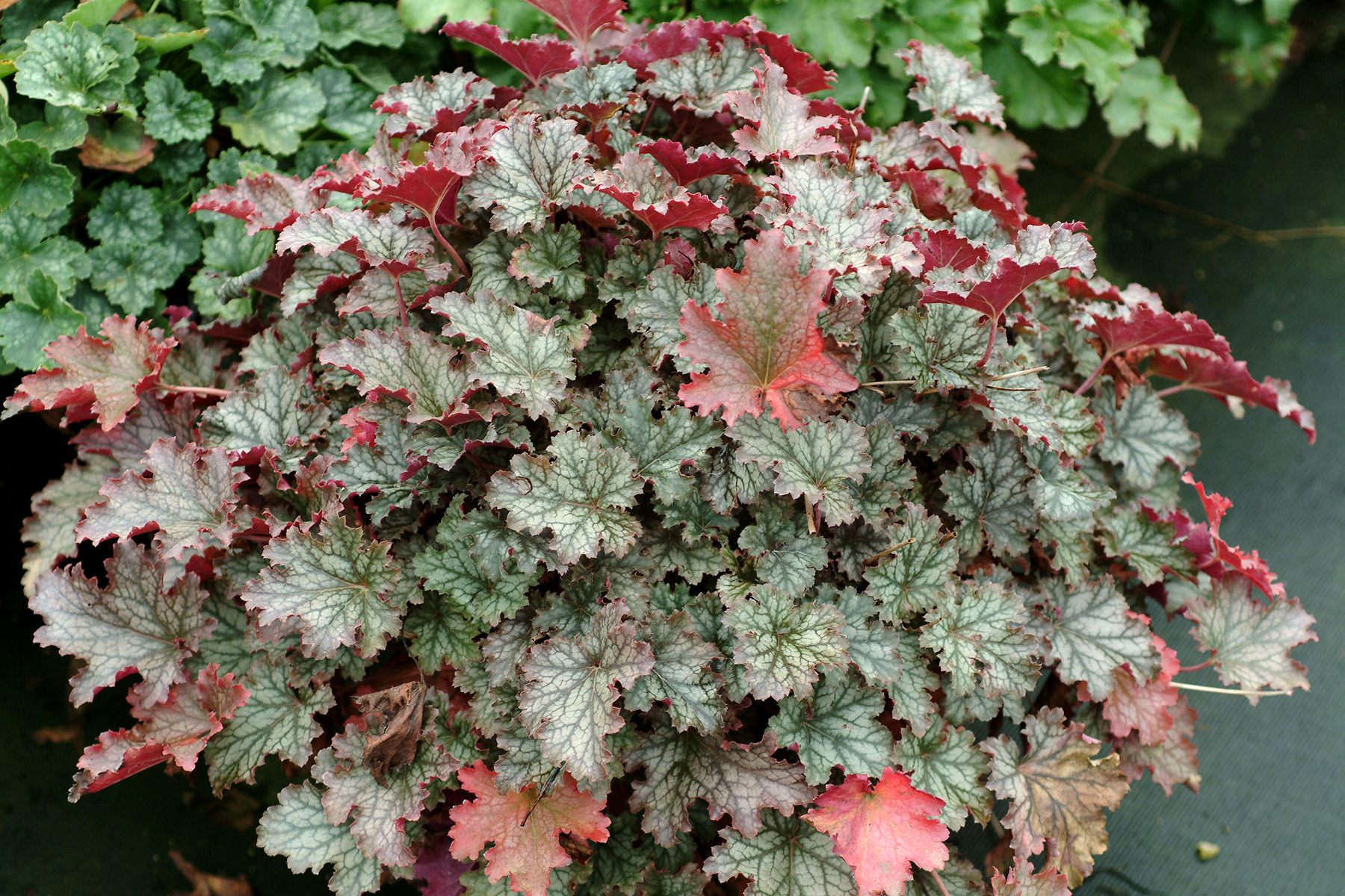 Some varieties of coral bells change colors throughout the year. Spring and fall weather tends to make the colors brighter while the summer’s heat may encourage a light silvering to develop on some varieties. This is perfectly normal and should not be a cause for concern.