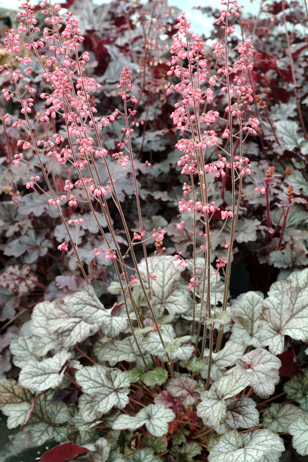 Some varieties of coral bells change colors throughout the year. Spring and fall weather tends to make the colors brighter while the summer’s heat may encourage a light silvering to develop on some varieties. This is perfectly normal and should not be a cause for concern.