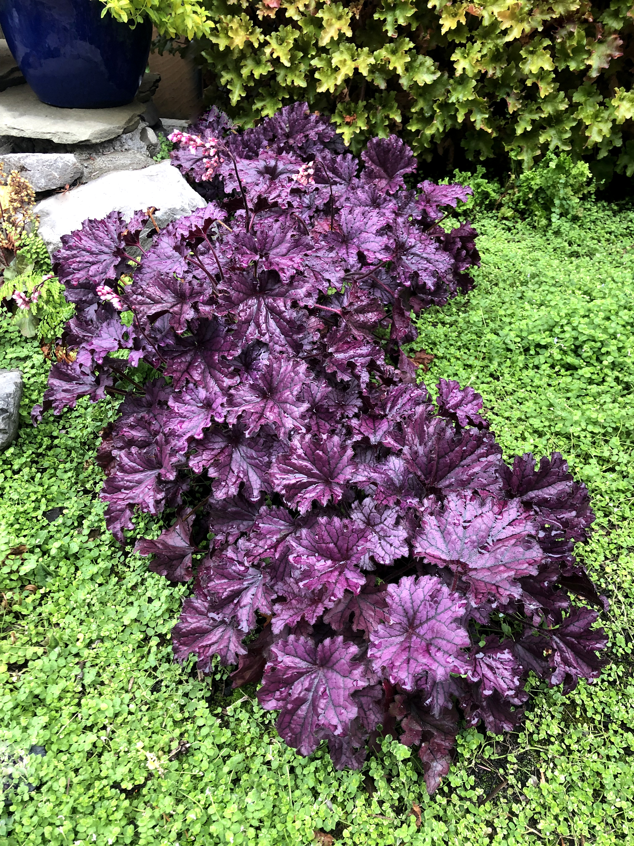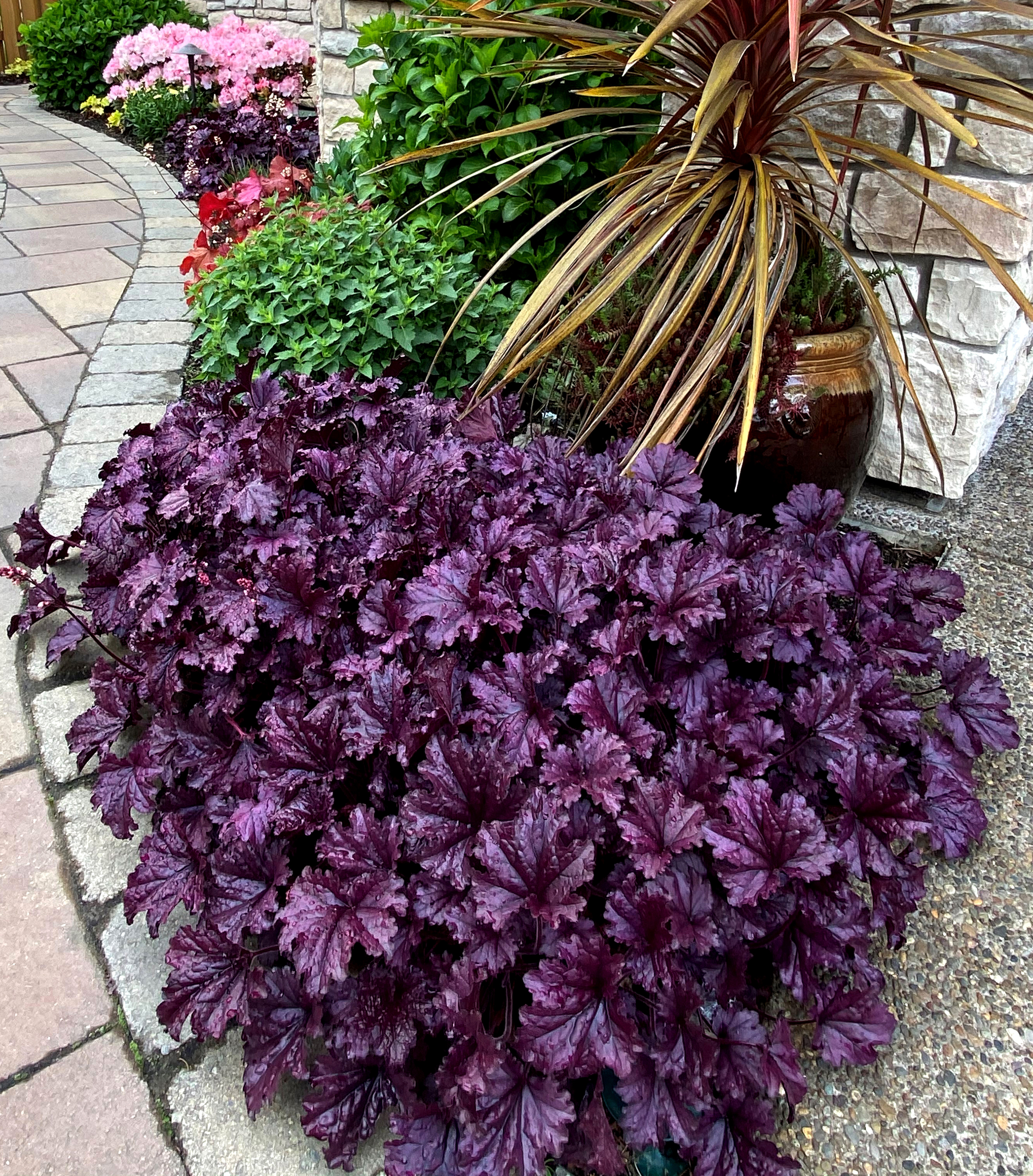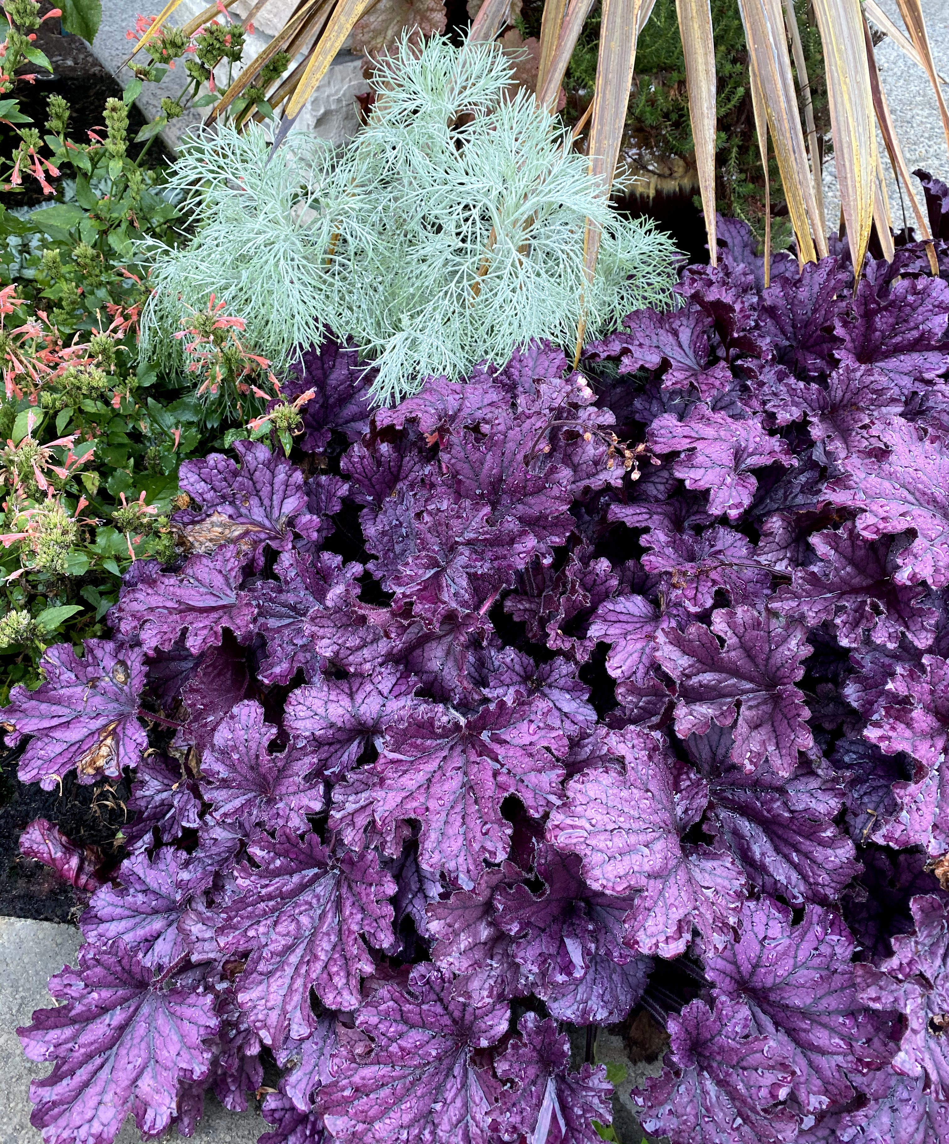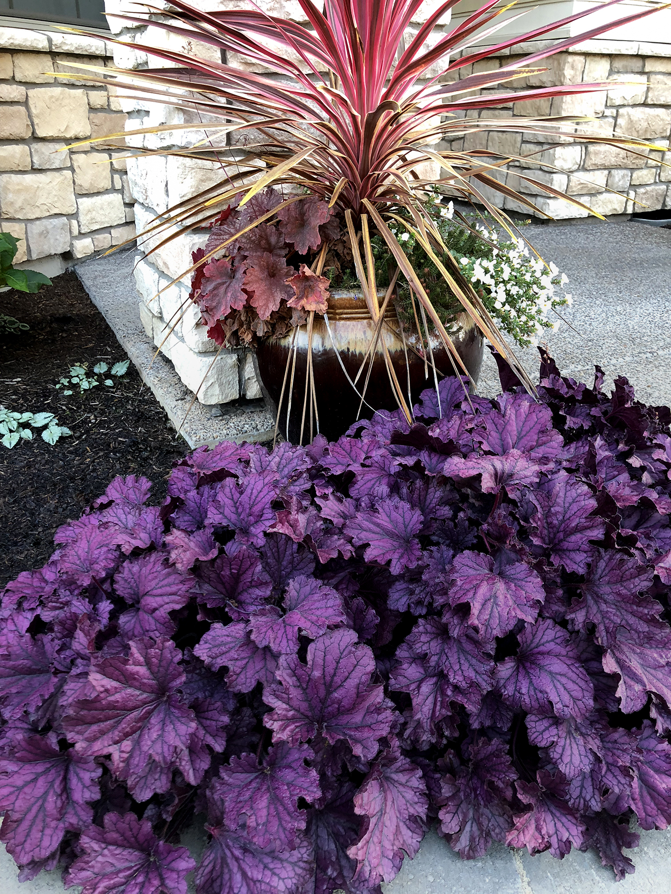 Pots: Coral bells grow beautifully in containers. Just make sure there is a hole in the bottom where the excess water can drain from. Transplant into the landscape in early fall if you’d like them to come back again next year. If you garden in zones 6b or warmer, they can be overwintered in containers.