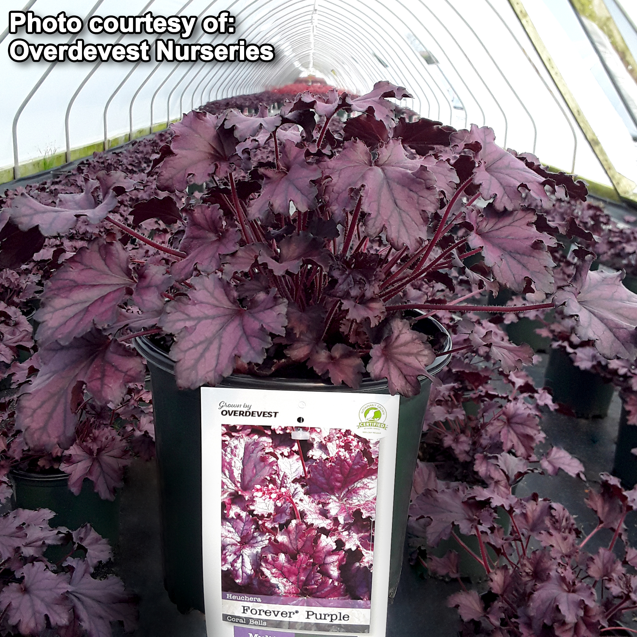 We tried so hard to name this something else, but we all came back to the name FOREVER® 'Purple' for a very simple reason. It is forever purple! FOREVER® 'Purple' is a knockout with ultra-purple glossy leaves with fluted edges and great vigor. Very short spikes of purple-pink flowers in summer and four seasons of purple. A real show stopper. Destined to become the new standard for purple foliage perennials.