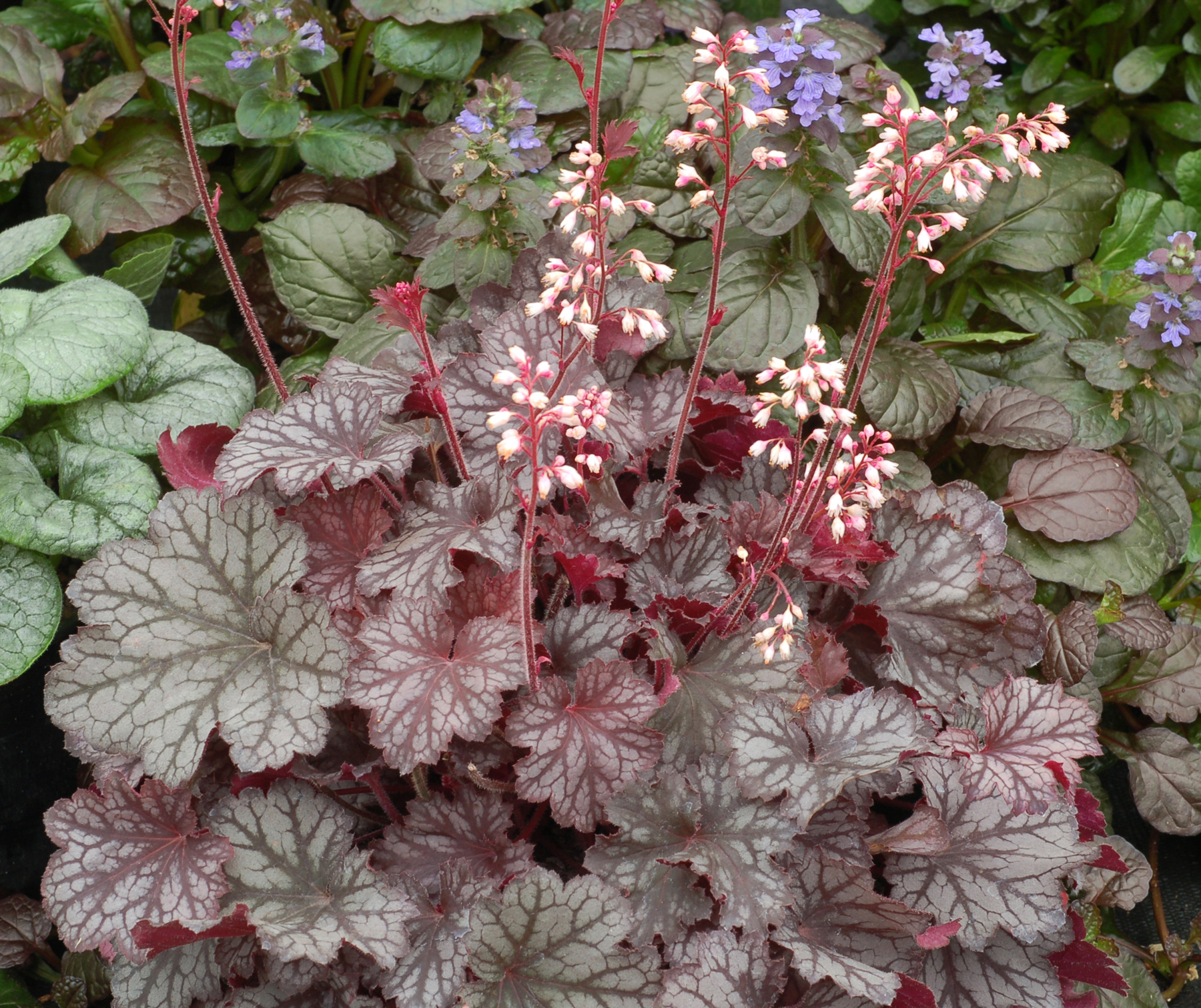 Some varieties of coral bells change colors throughout the year. Spring and fall weather tends to make the colors brighter while the summer’s heat may encourage a light silvering to develop on some varieties. This is perfectly normal and should not be a cause for concern.