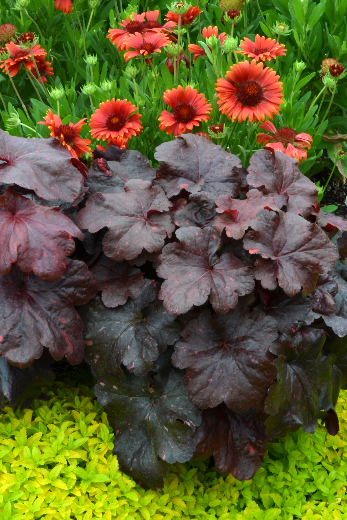 Heuchera goes well with many other perennials, trees and shrubs.