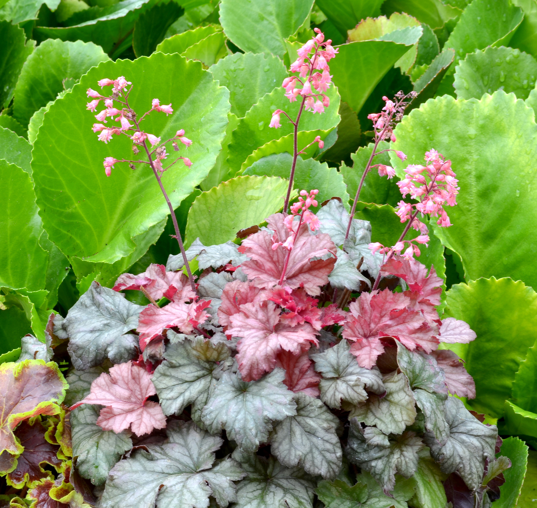 Coral bells with especially fuzzy leaves tend to prefer less water and be more heat tolerant than those with shiny leaves. Those are good choices to plant in warmer climates and in places where the soil tends to be a bit drier.