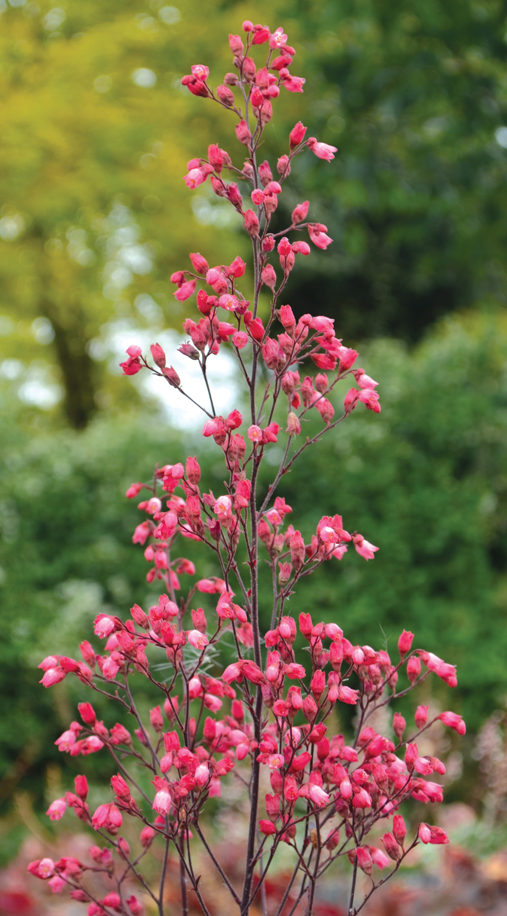 Bees, butterflies and hummingbirds are attracted to coral bells with vibrant red or pink flowers.