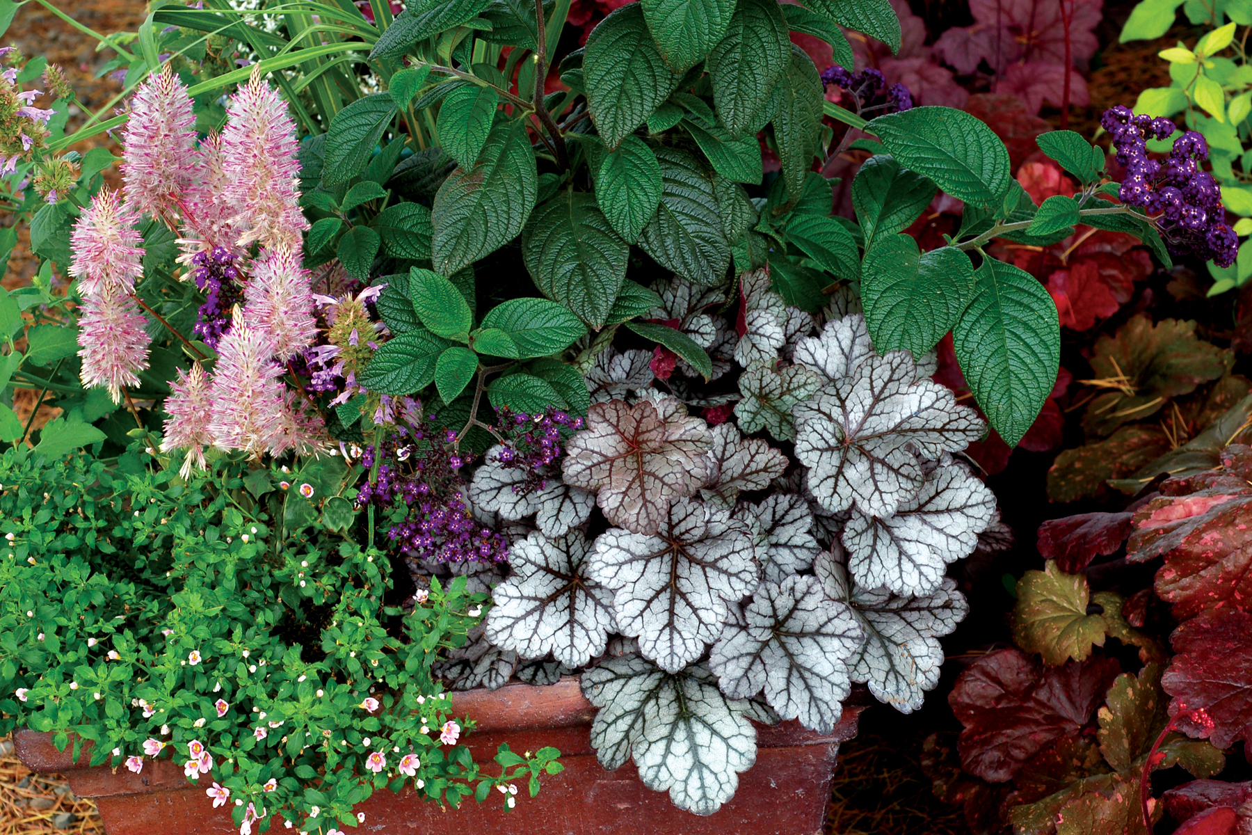 Pots: Coral bells grow beautifully in containers. Just make sure there is a hole in the bottom where the excess water can drain from. Transplant into the landscape in early fall if you’d like them to come back again next year. If you garden in zones 6b or warmer, they can be overwintered in containers.