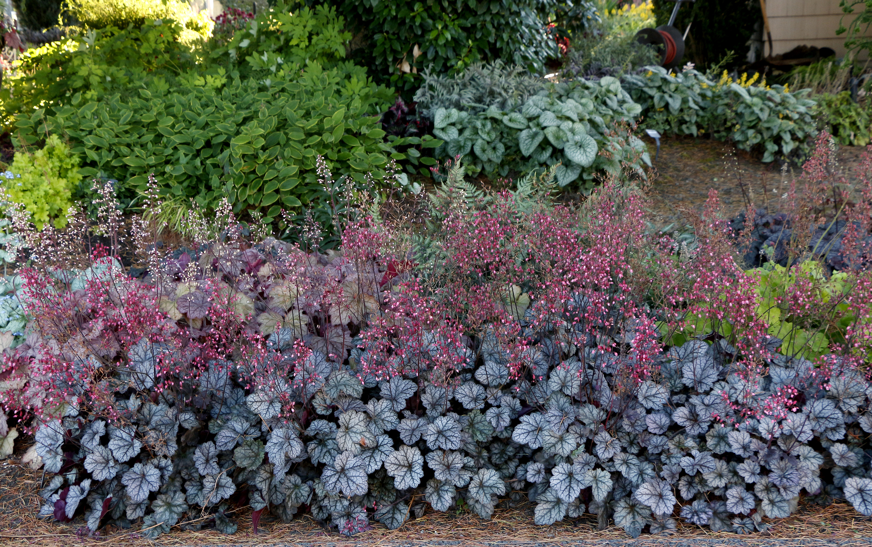 Some varieties of coral bells change colors throughout the year. Spring and fall weather tends to make the colors brighter while the summer’s heat may encourage a light silvering to develop on some varieties. This is perfectly normal and should not be a cause for concern.