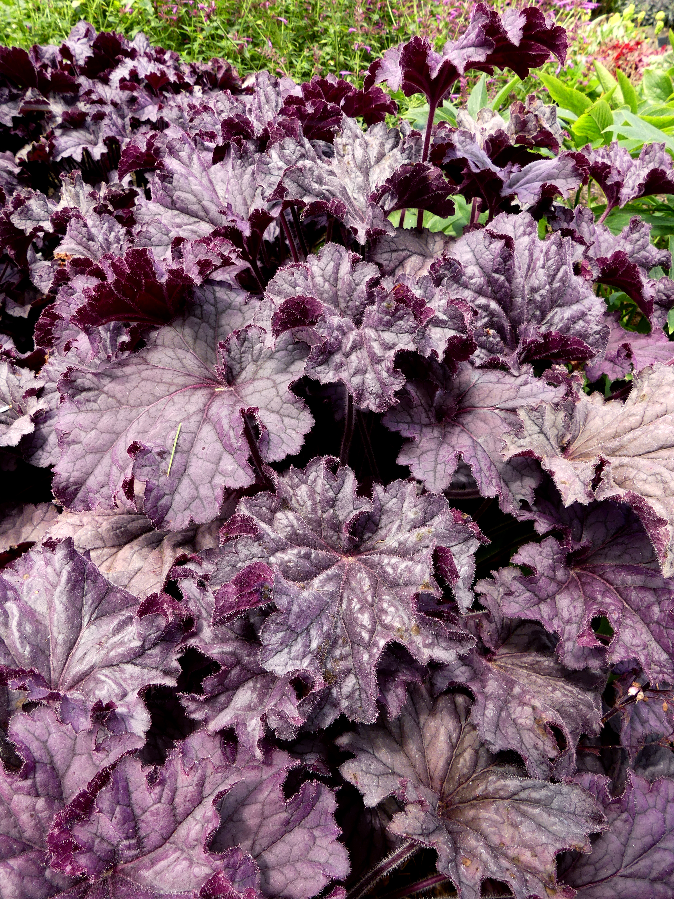 Bred to fill landscapes! This large leaf H. villosa hybrid has a big mounding habit with purple, wavy leaves. Flowers on medium height stalks that are not messy making it a lovely landscape or container plant. It performs extremely well in Oregon and should perform great in the midwest, east and south.