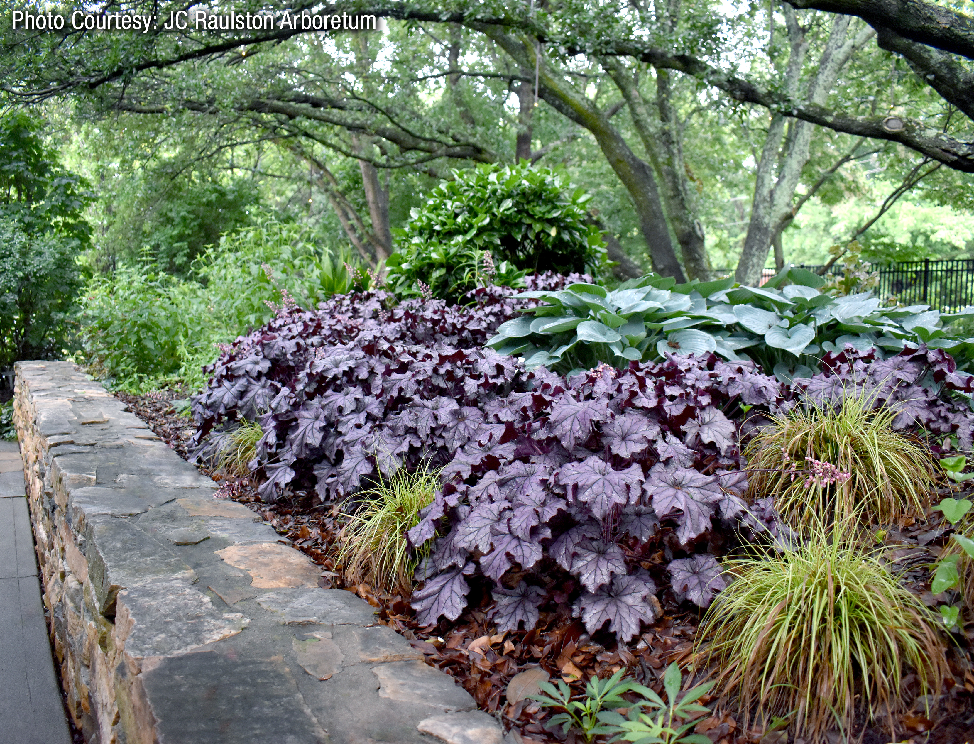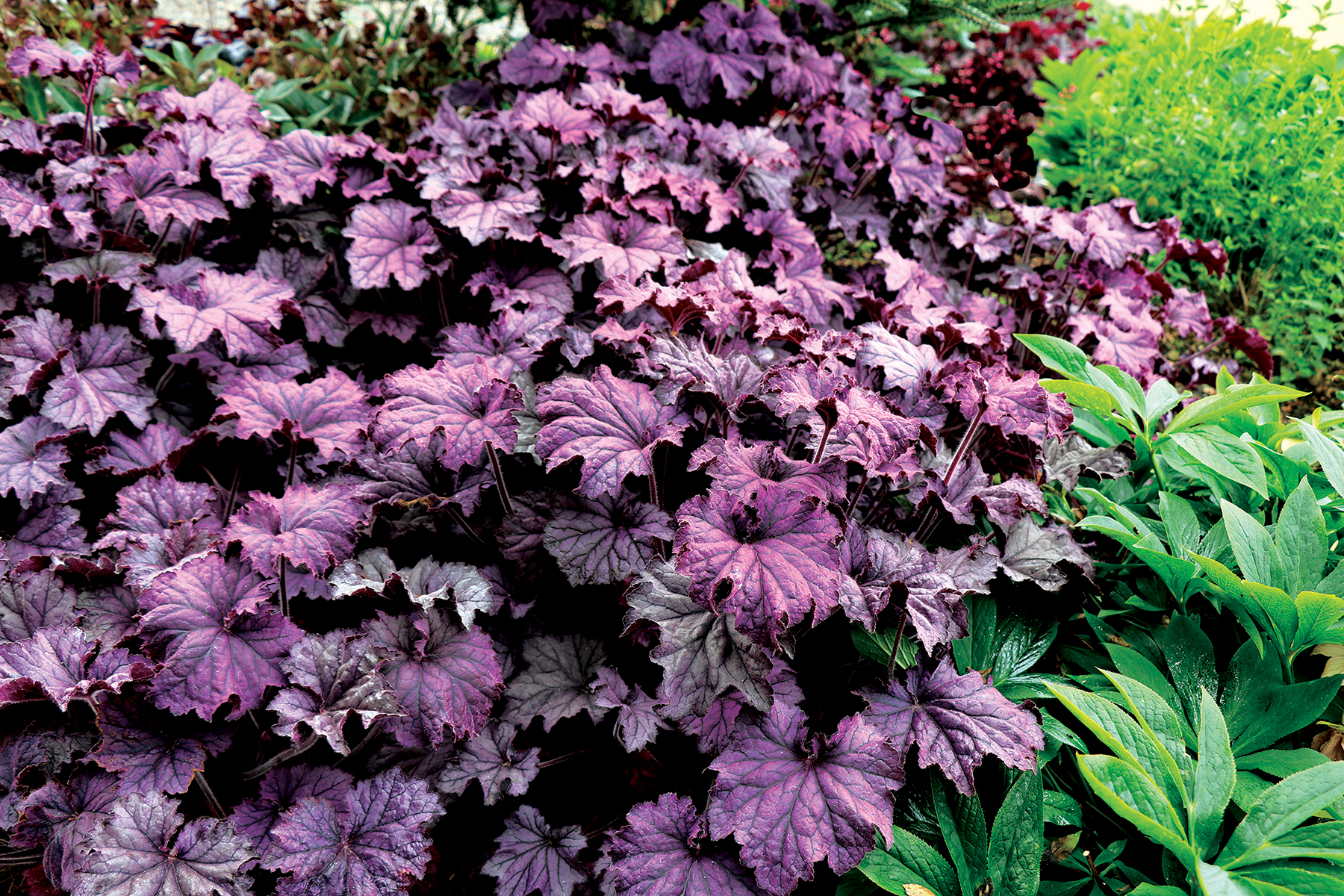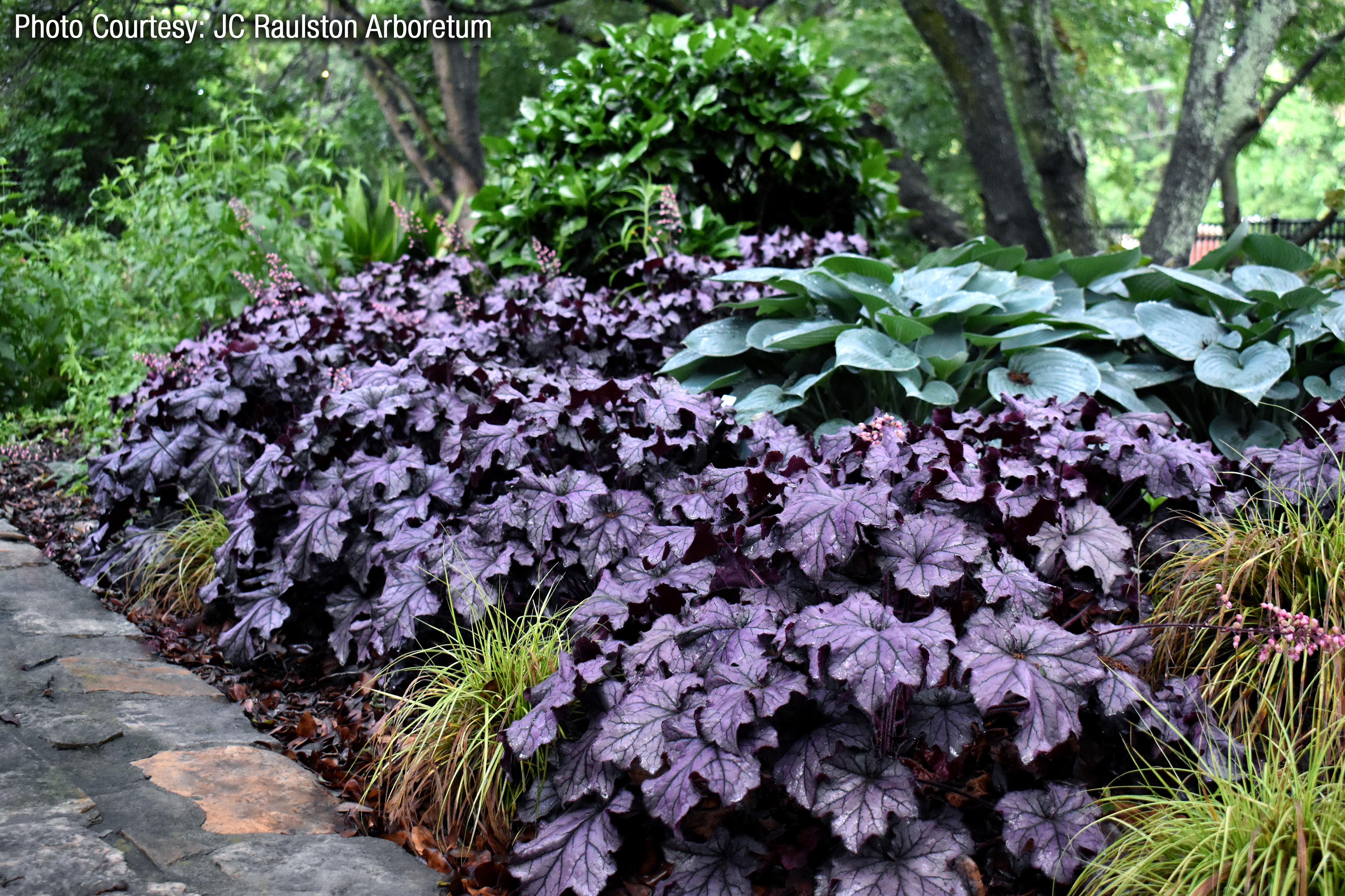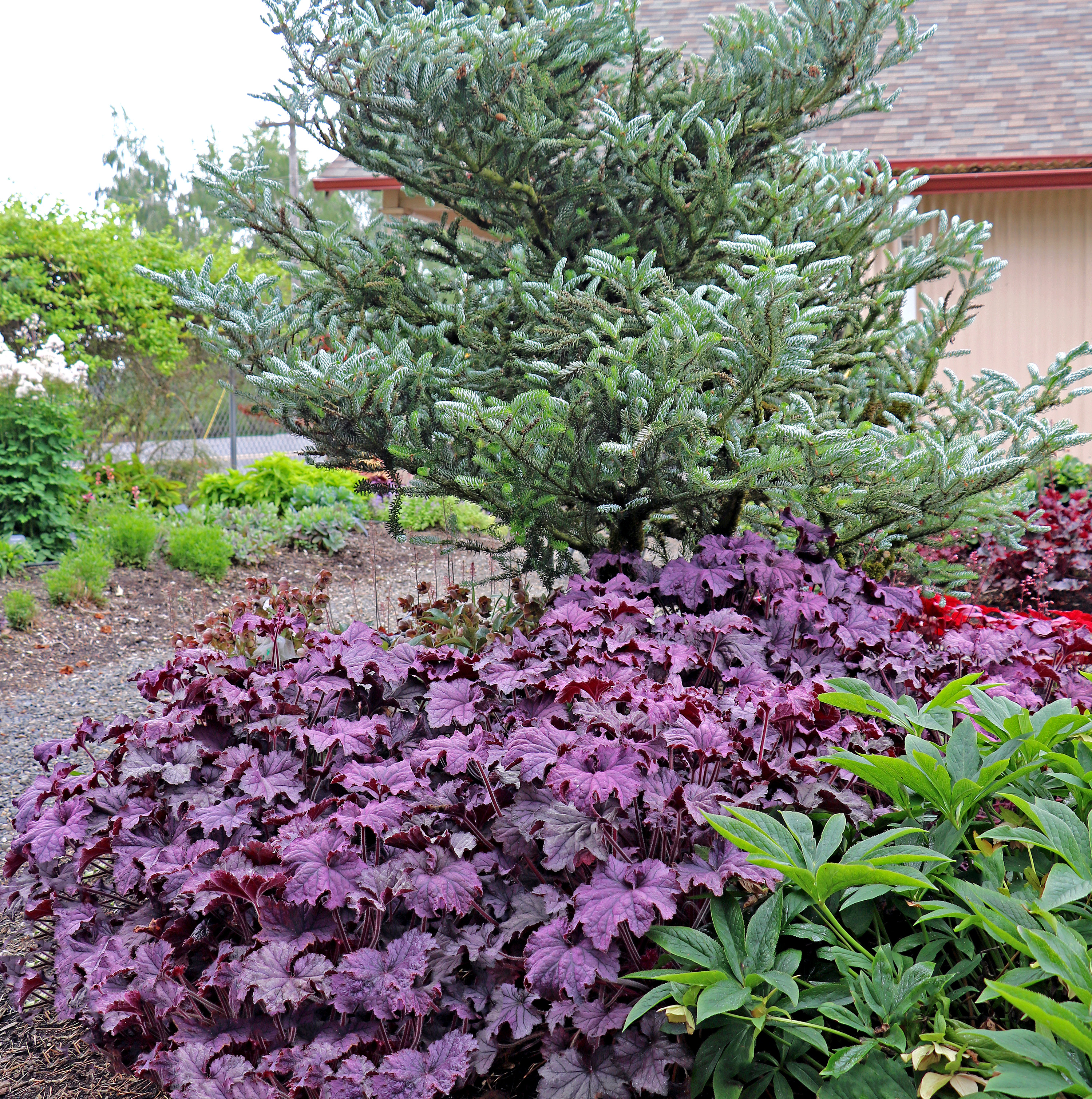 Heuchera goes well with many other perennials, trees and shrubs.