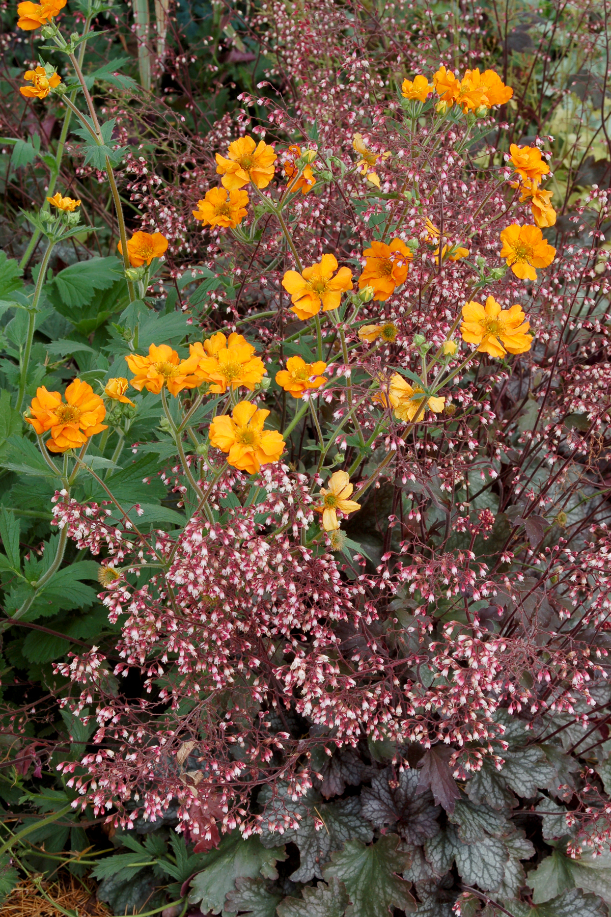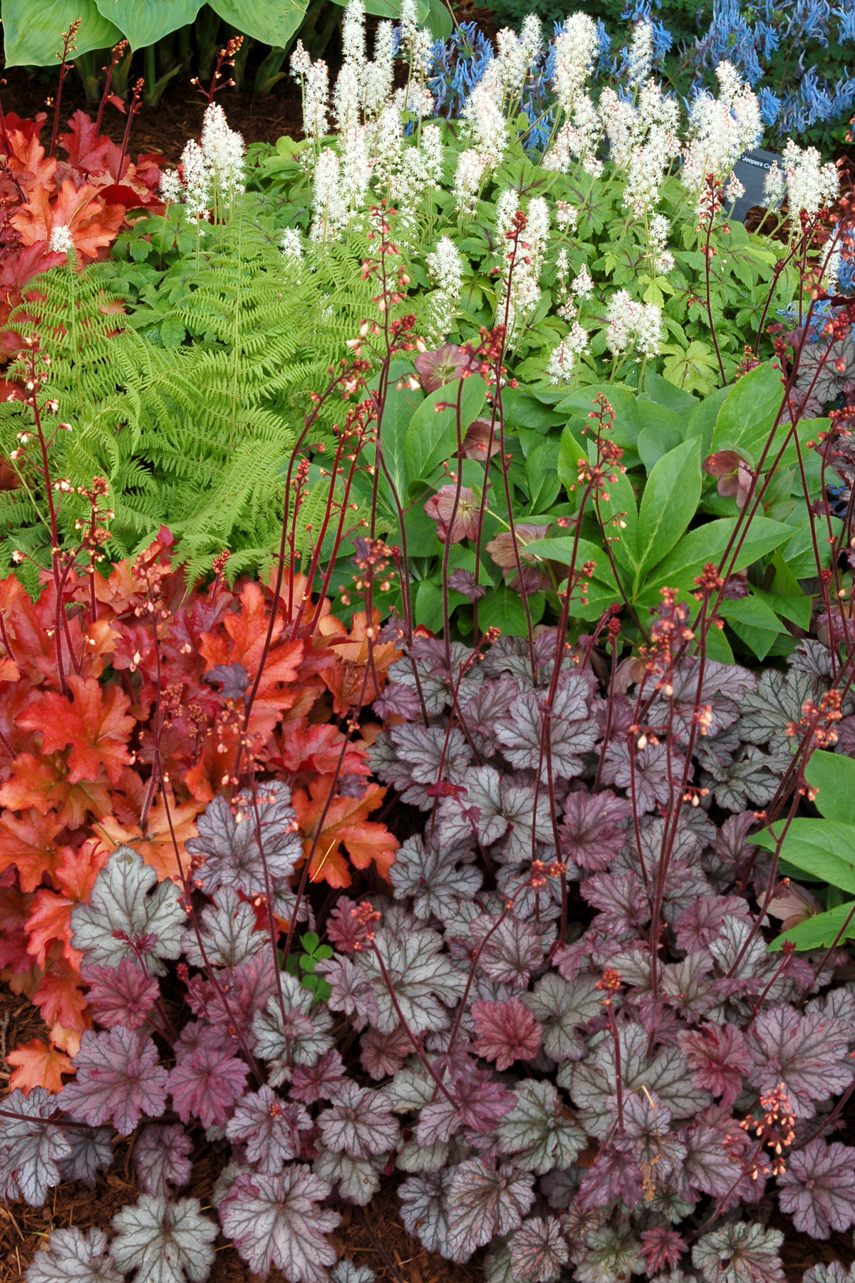Heuchera goes well with many other perennials, trees and shrubs.