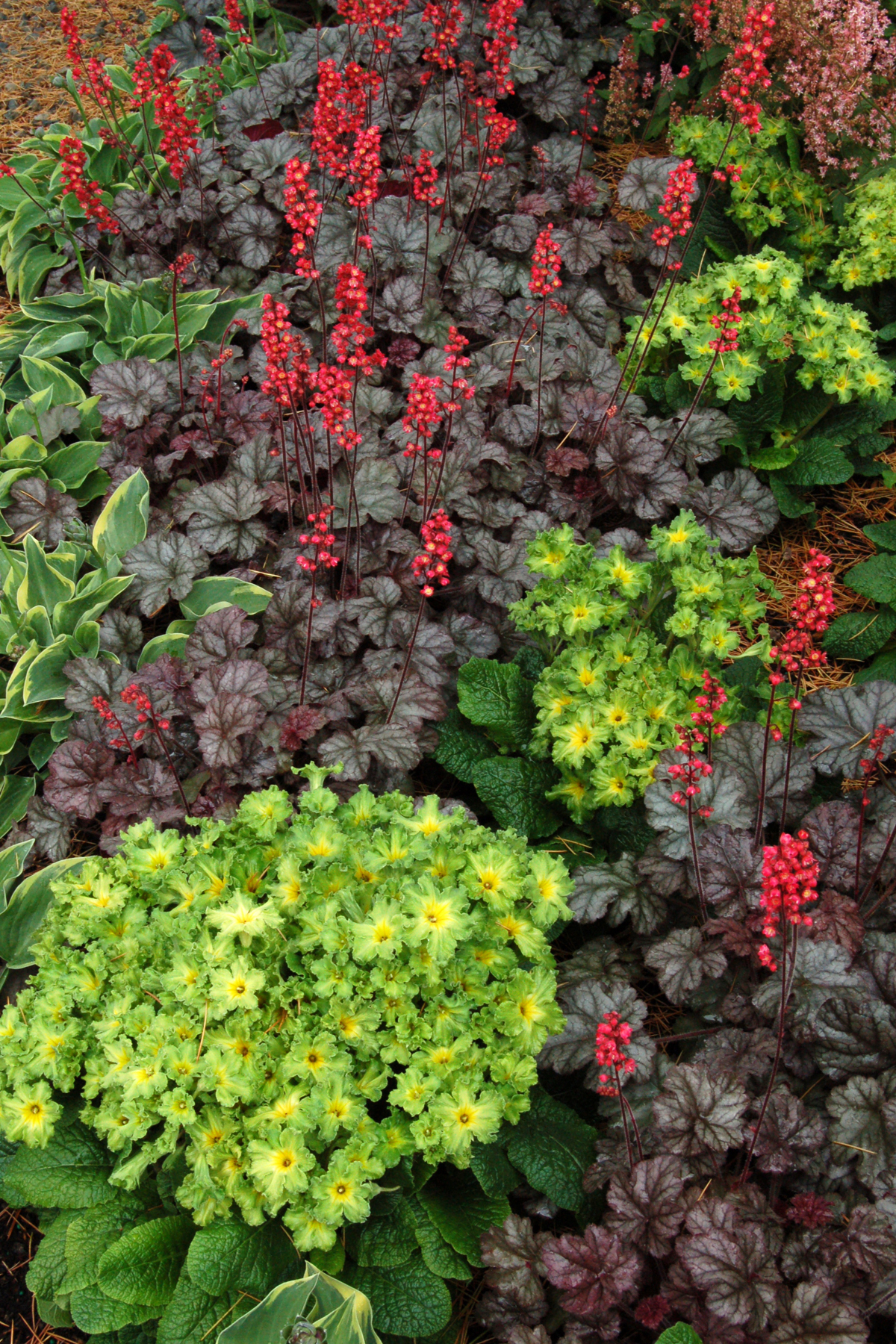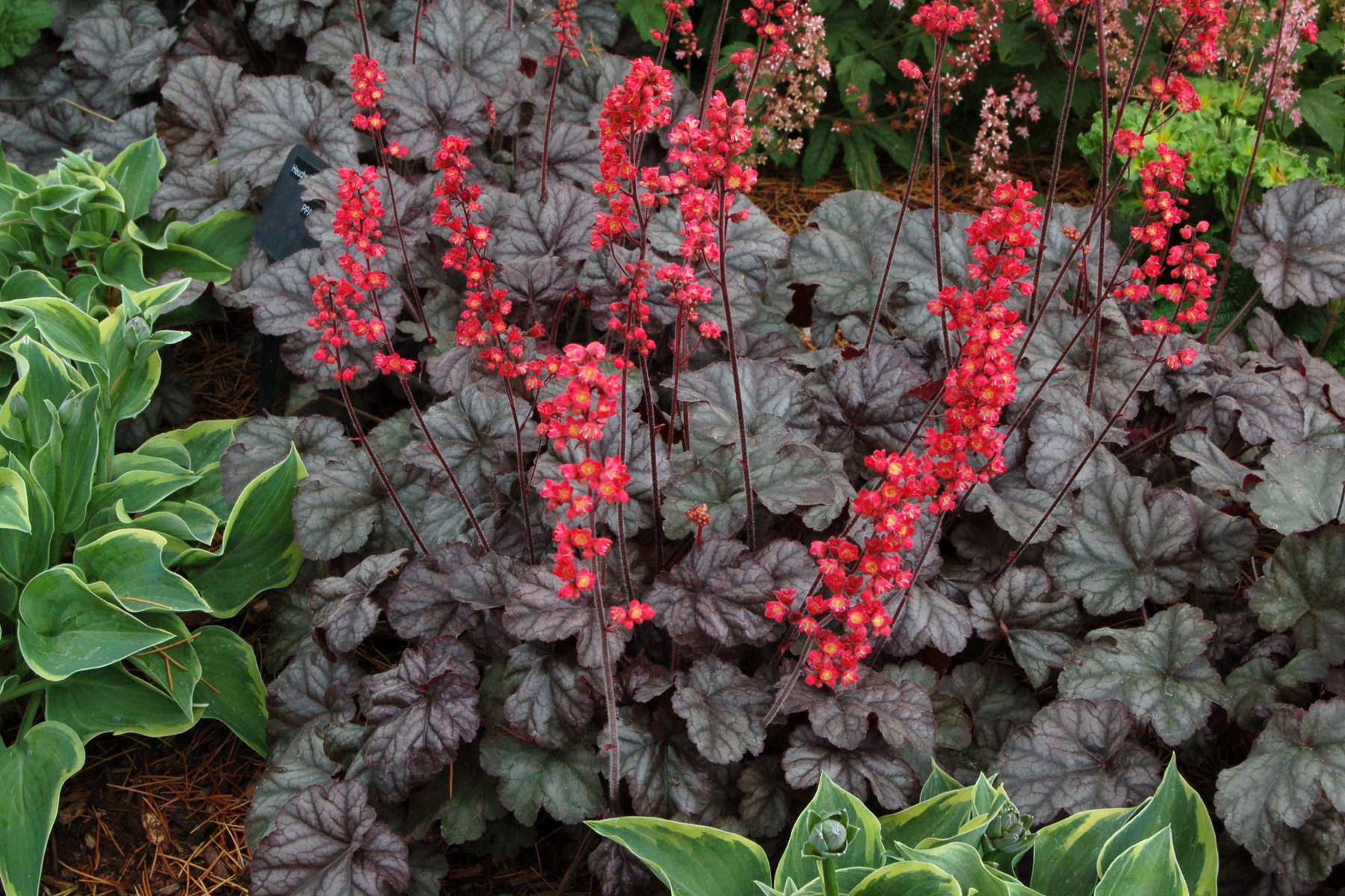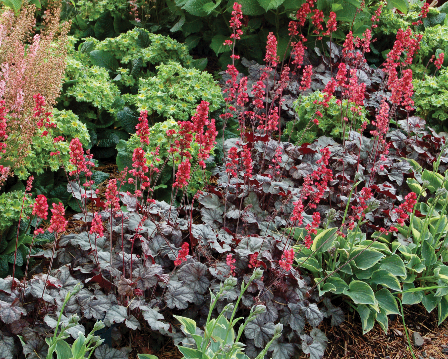 Heuchera goes well with many other perennials, trees and shrubs.