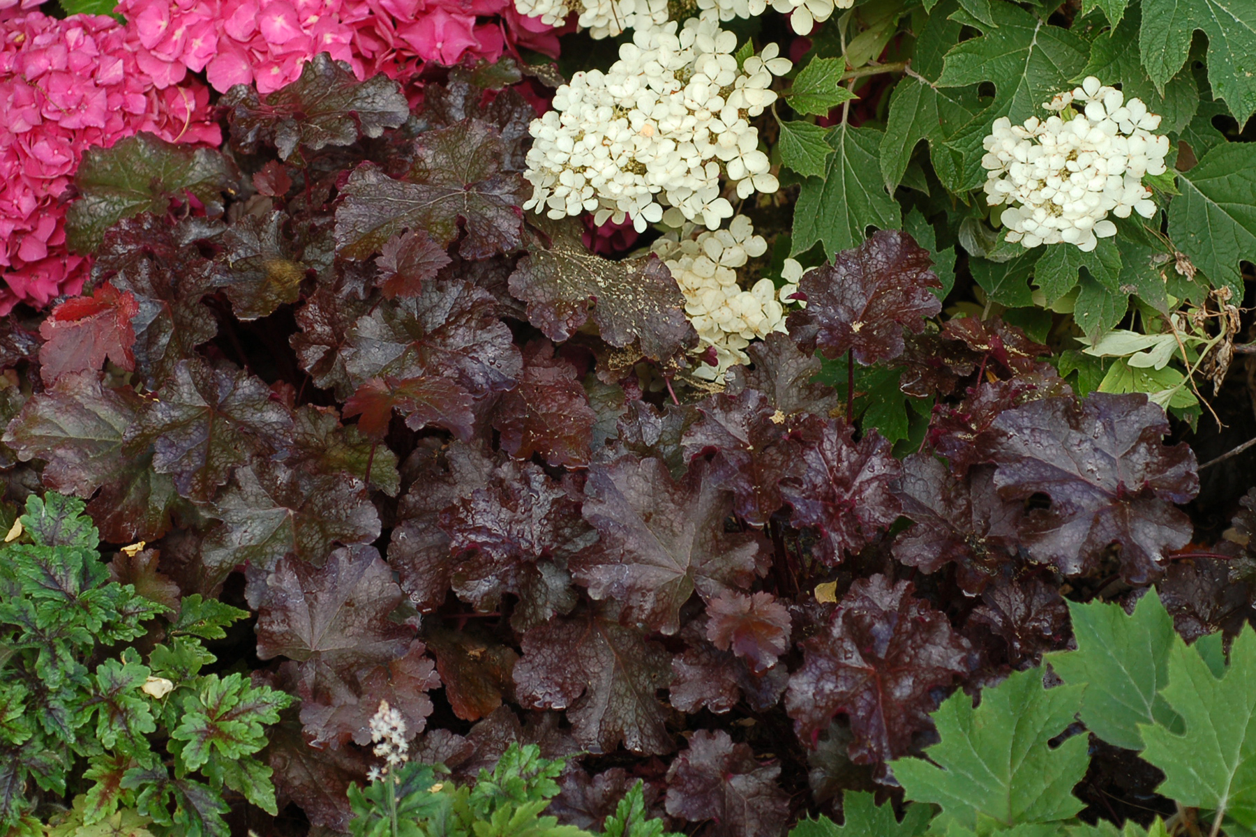 Heuchera goes well with many other perennials, trees and shrubs.
