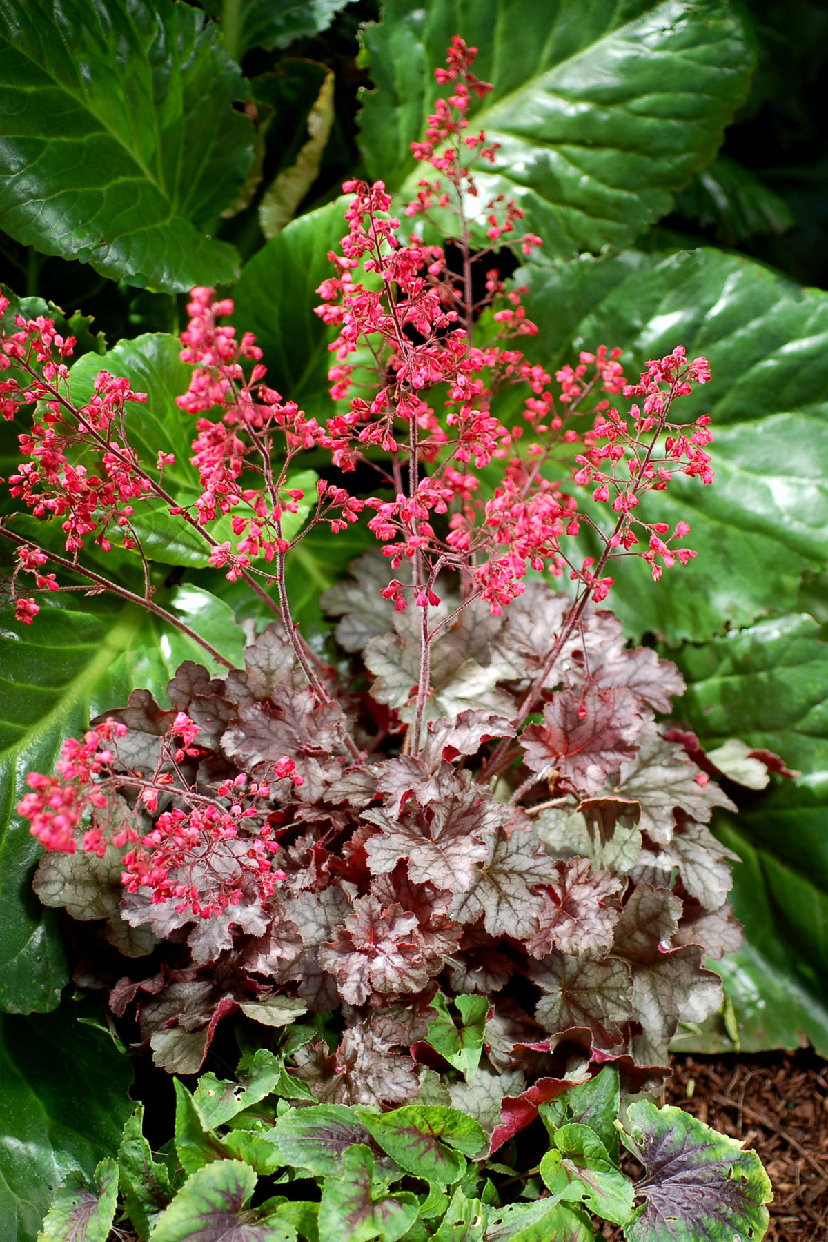 Heuchera goes well with many other perennials, trees and shrubs.