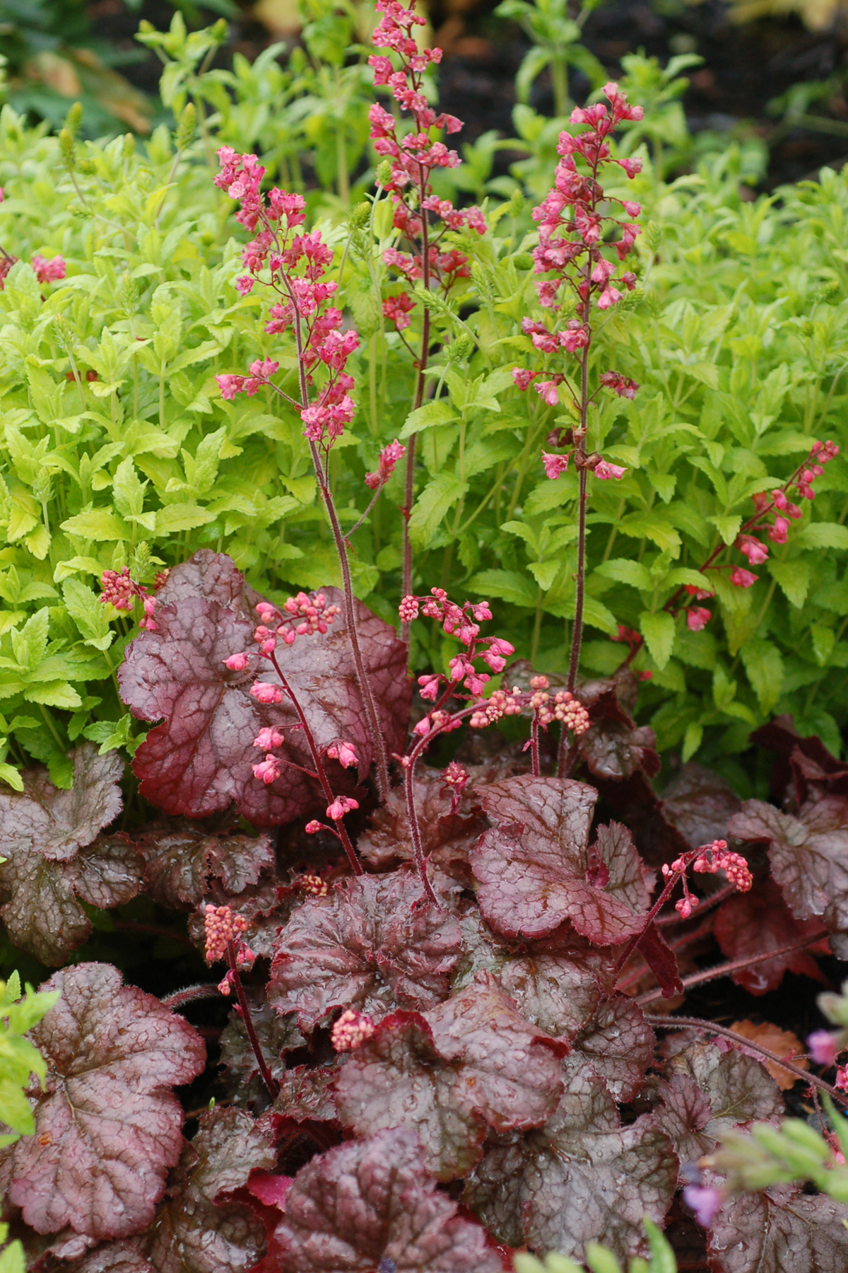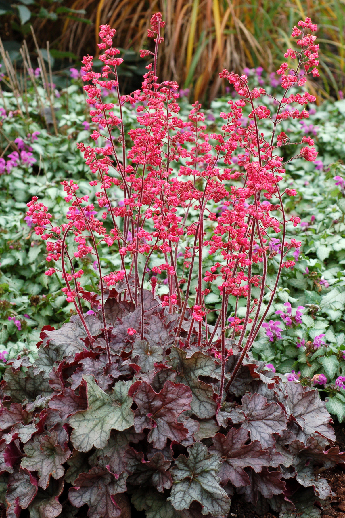 Heuchera goes well with many other perennials, trees and shrubs.