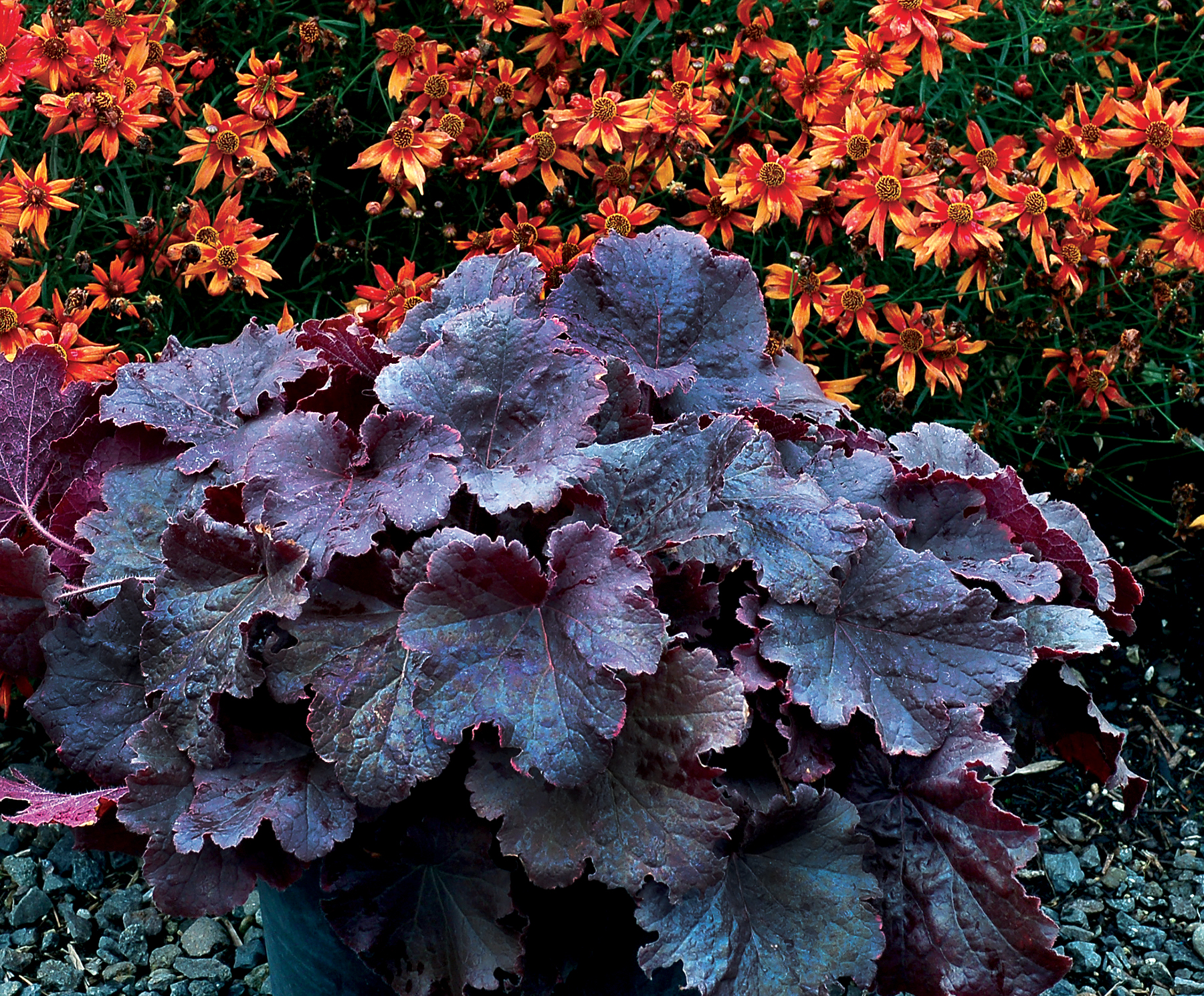 Heuchera goes well with many other perennials, trees and shrubs.
