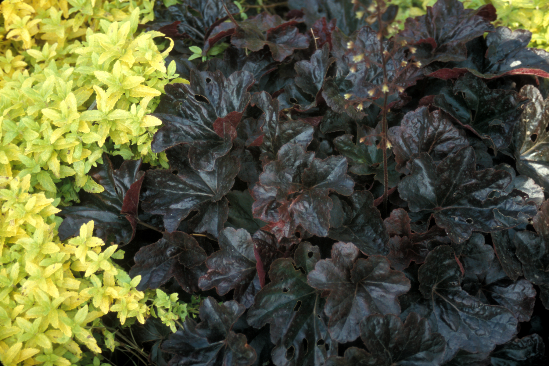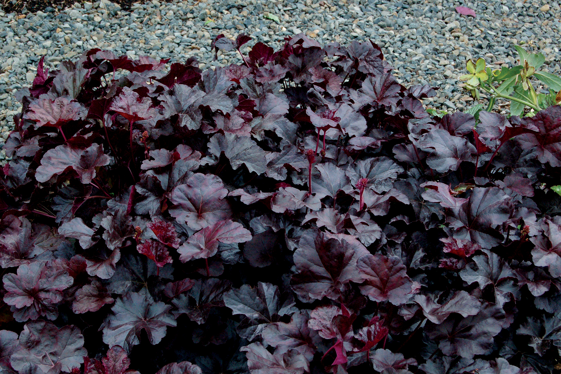 The “Black Standard” which does NOT fade, even in full sun. Shiny, broad, rounded leaves are like black satin! Its richly colored foliage showcases all other colors in the garden. Vigor and consistent performance under a variety of garden conditions make this a fool-proof choice. Compare our plant to other “blacks” on the market, especially in winter and you will see who shines.