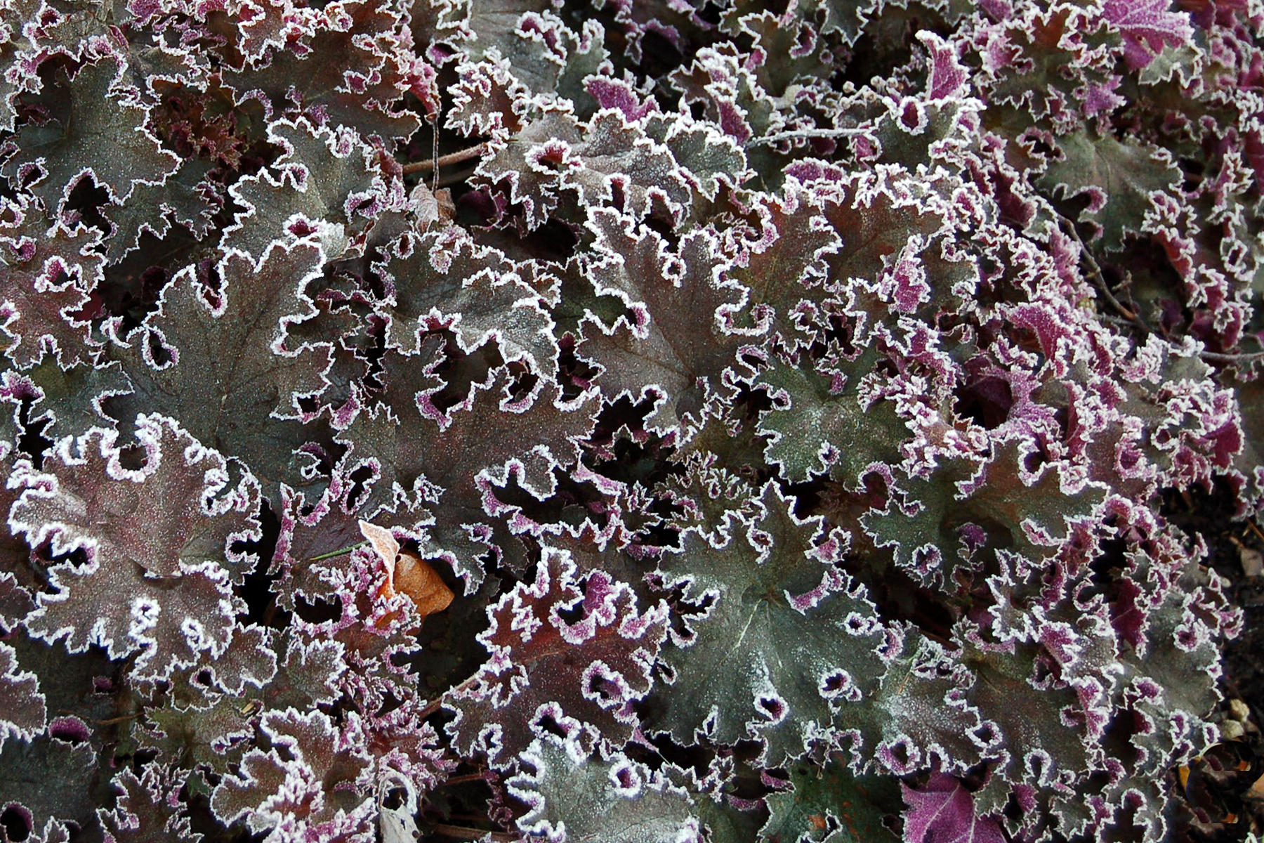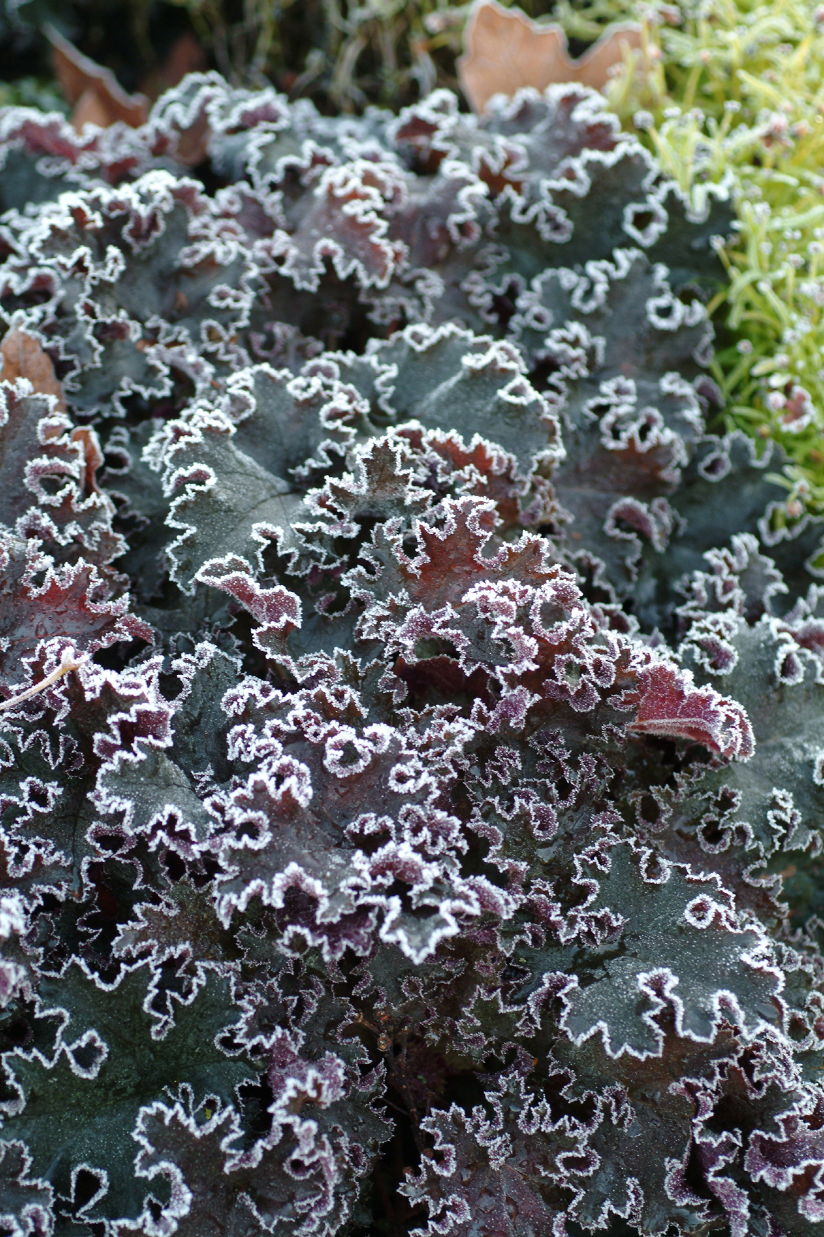 Dark purple frilly foliage, the texture of petticoats, adorns this tough beauty. Placed first for winter foliage at one of the top horticultural shows during one of Holland's toughest winters.