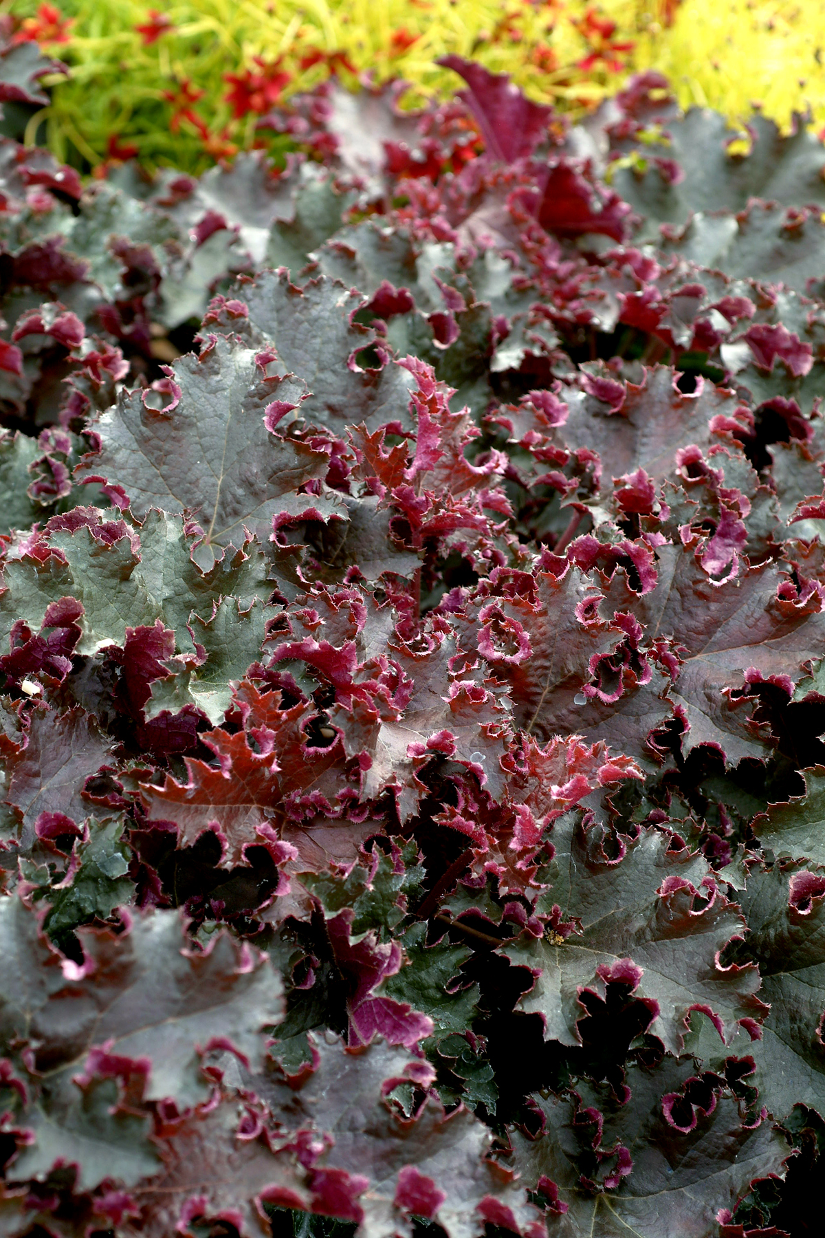Varieties with lighter colored leaves, like yellow or soft peach, need more shade to protect them from sun scorch. Plant them in morning sun or full shade.