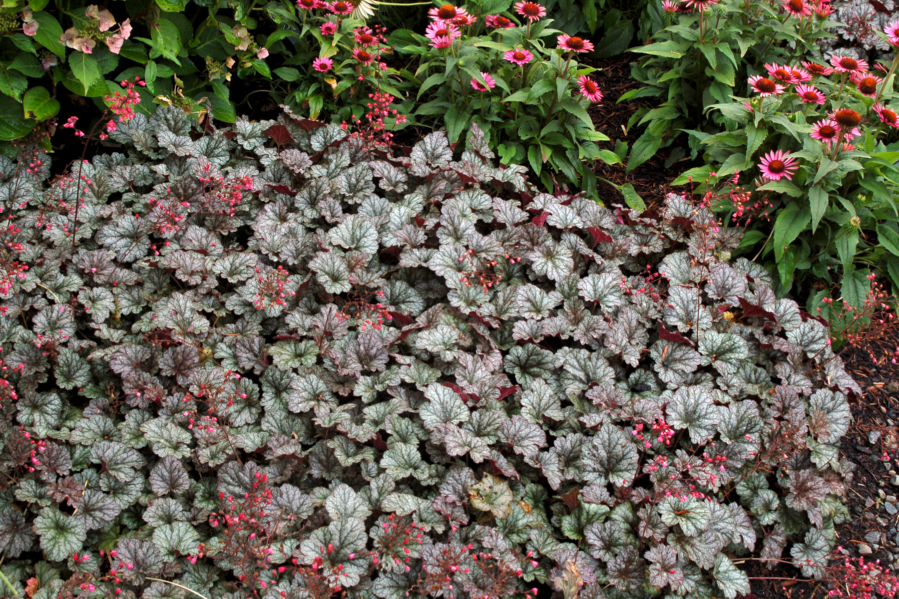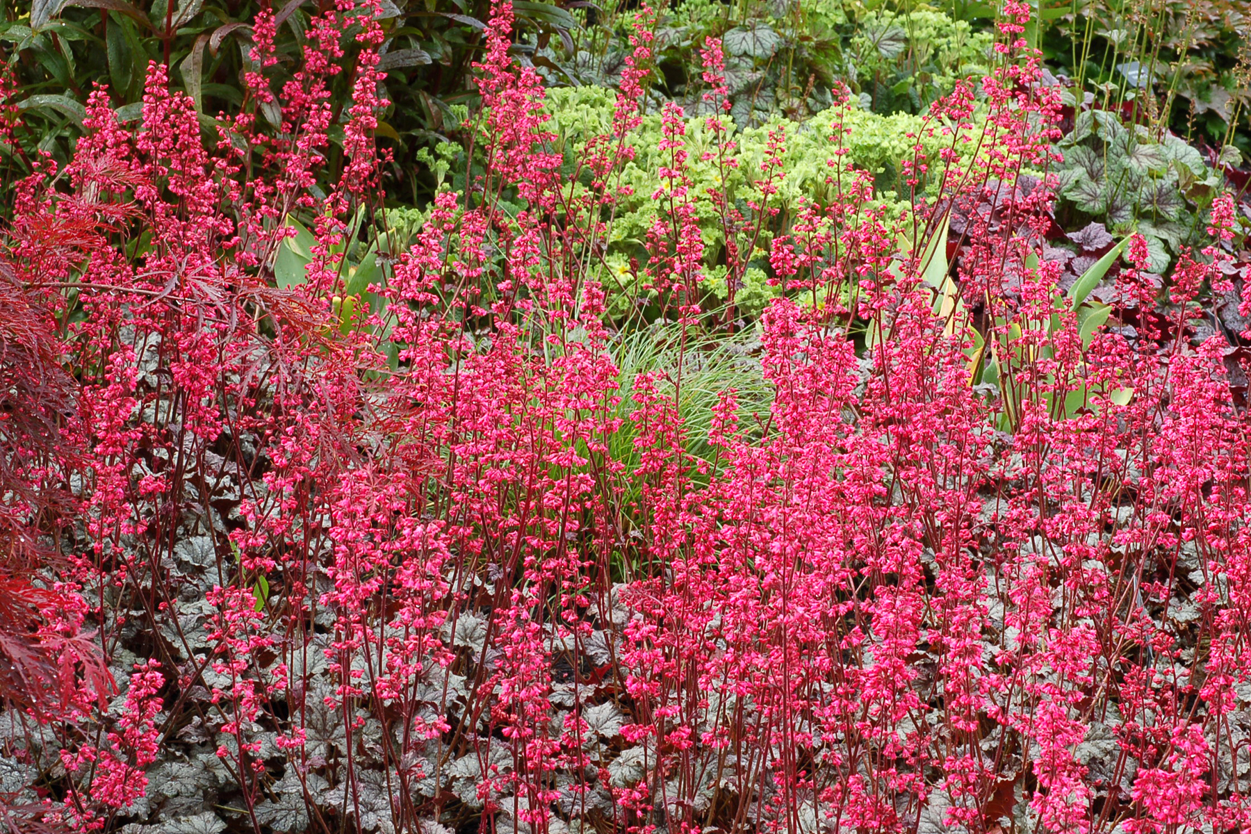 Heuchera goes well with many other perennials, trees and shrubs.