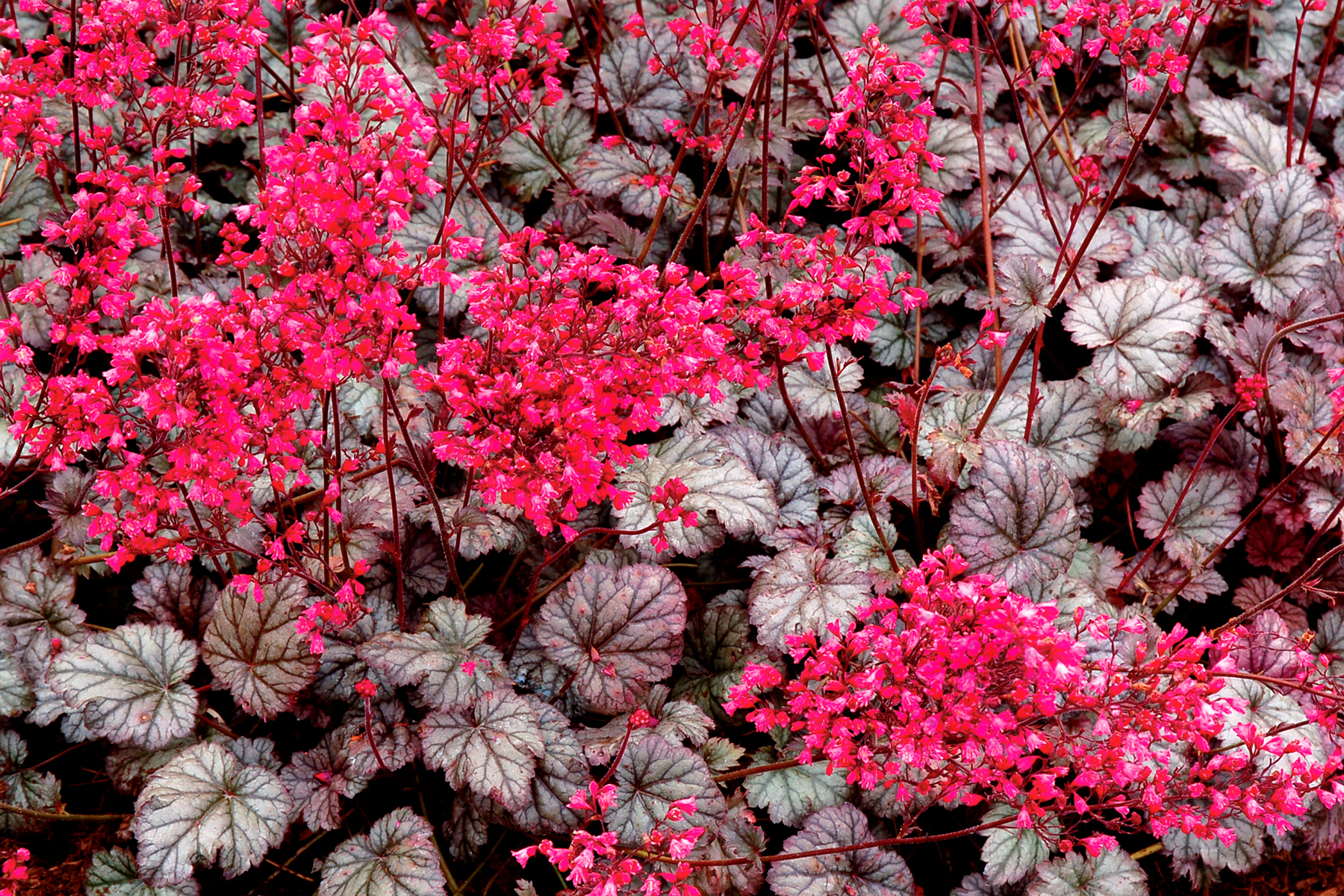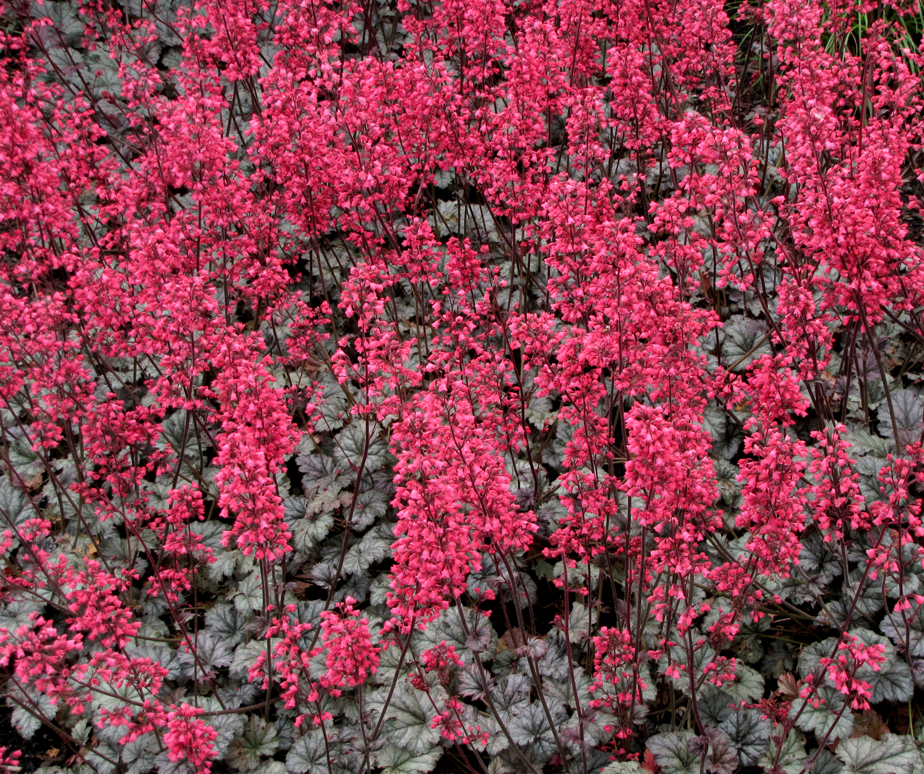 One of our heaviest spring bloomers produces masses of pink flowers above highly silvered foliage. Excellent in containers, en masse, or as a splendid specimen. A level of Heuchera breeding with more flowers than any other in our spring trials. Popular!