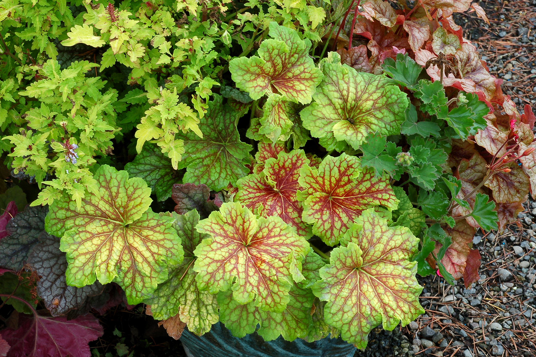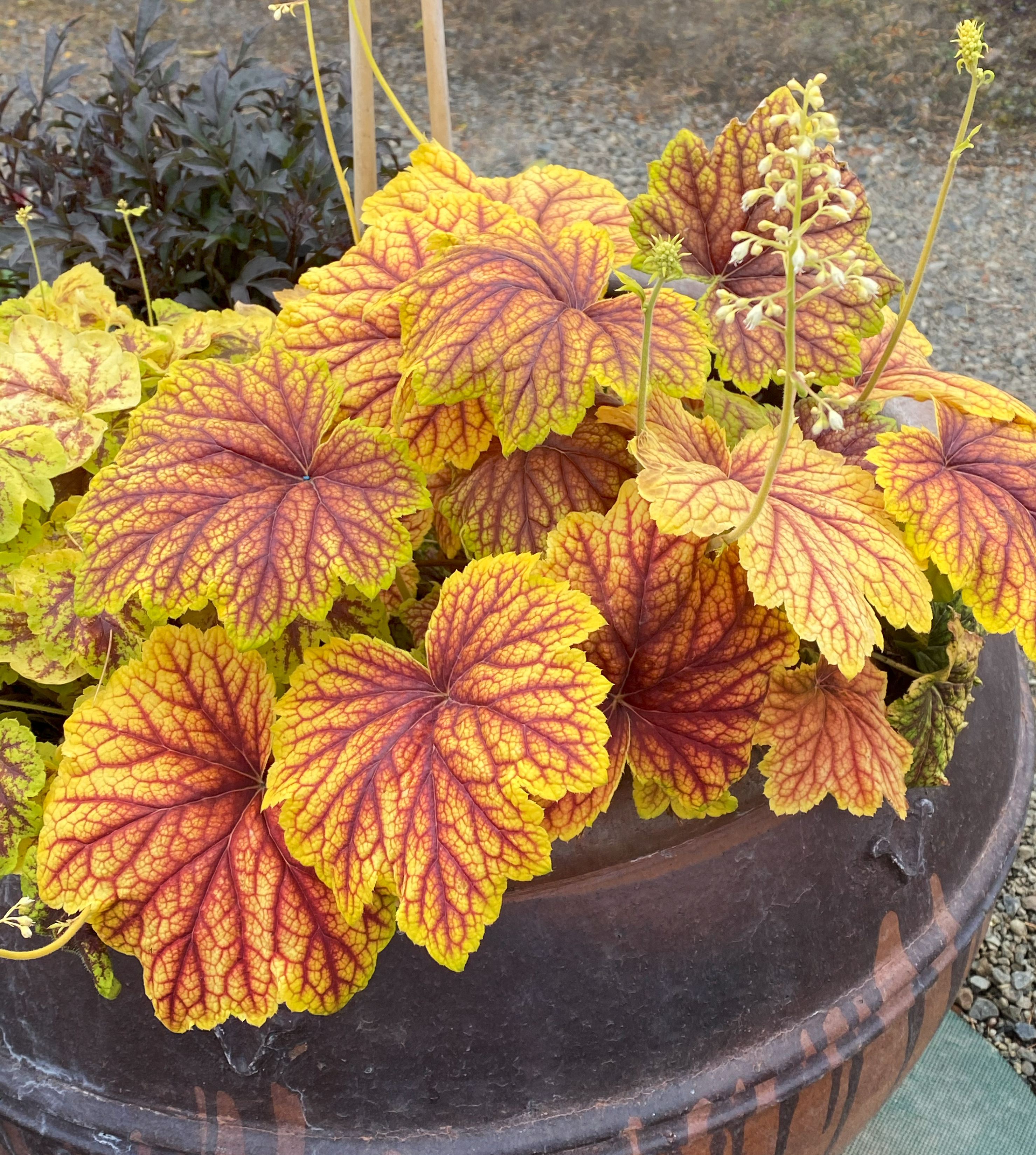 Pots: Coral bells grow beautifully in containers. Just make sure there is a hole in the bottom where the excess water can drain from. Transplant into the landscape in early fall if you’d like them to come back again next year. If you garden in zones 6b or warmer, they can be overwintered in containers.