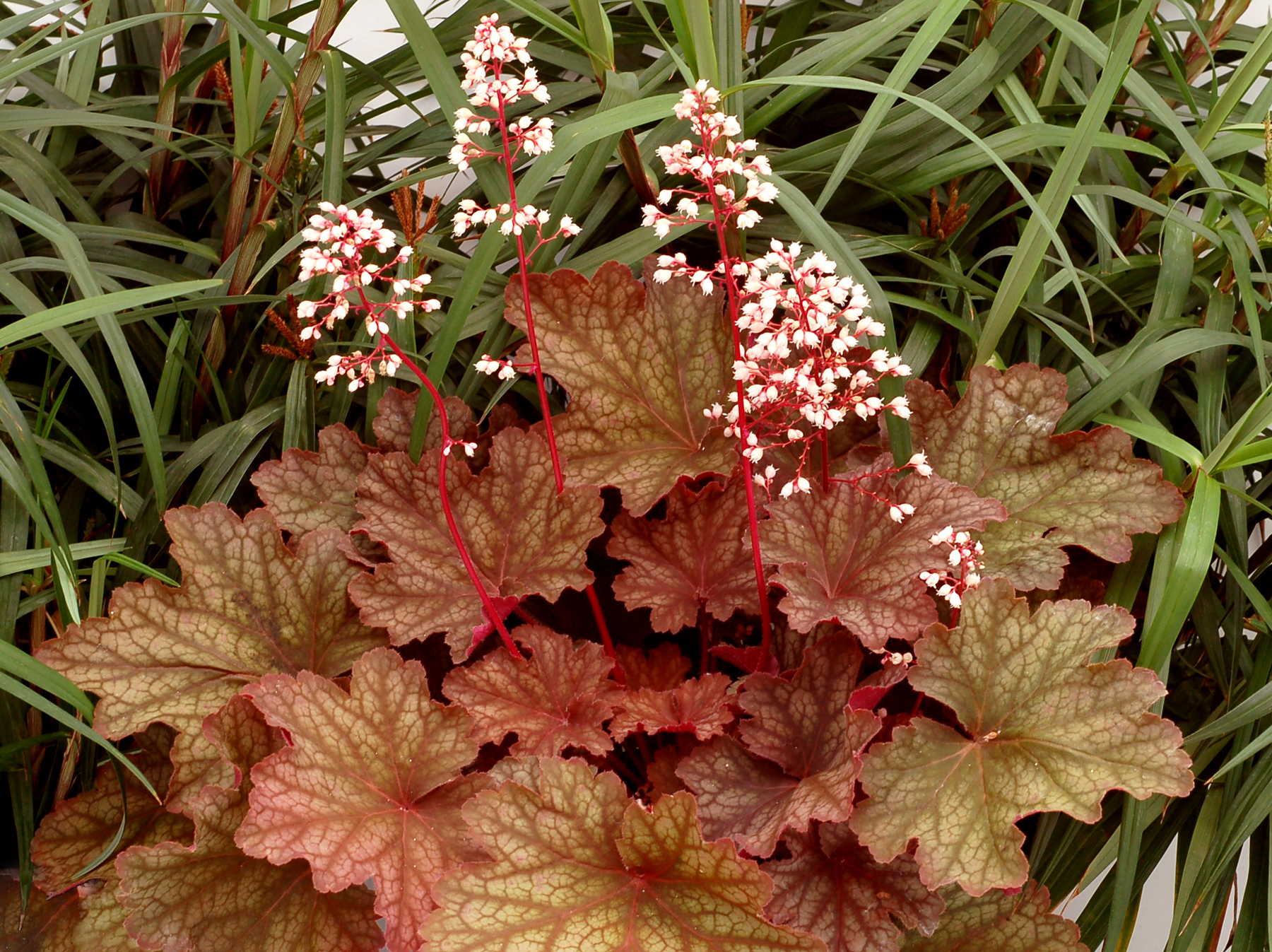Some varieties of coral bells change colors throughout the year. Spring and fall weather tends to make the colors brighter while the summer’s heat may encourage a light silvering to develop on some varieties. This is perfectly normal and should not be a cause for concern.