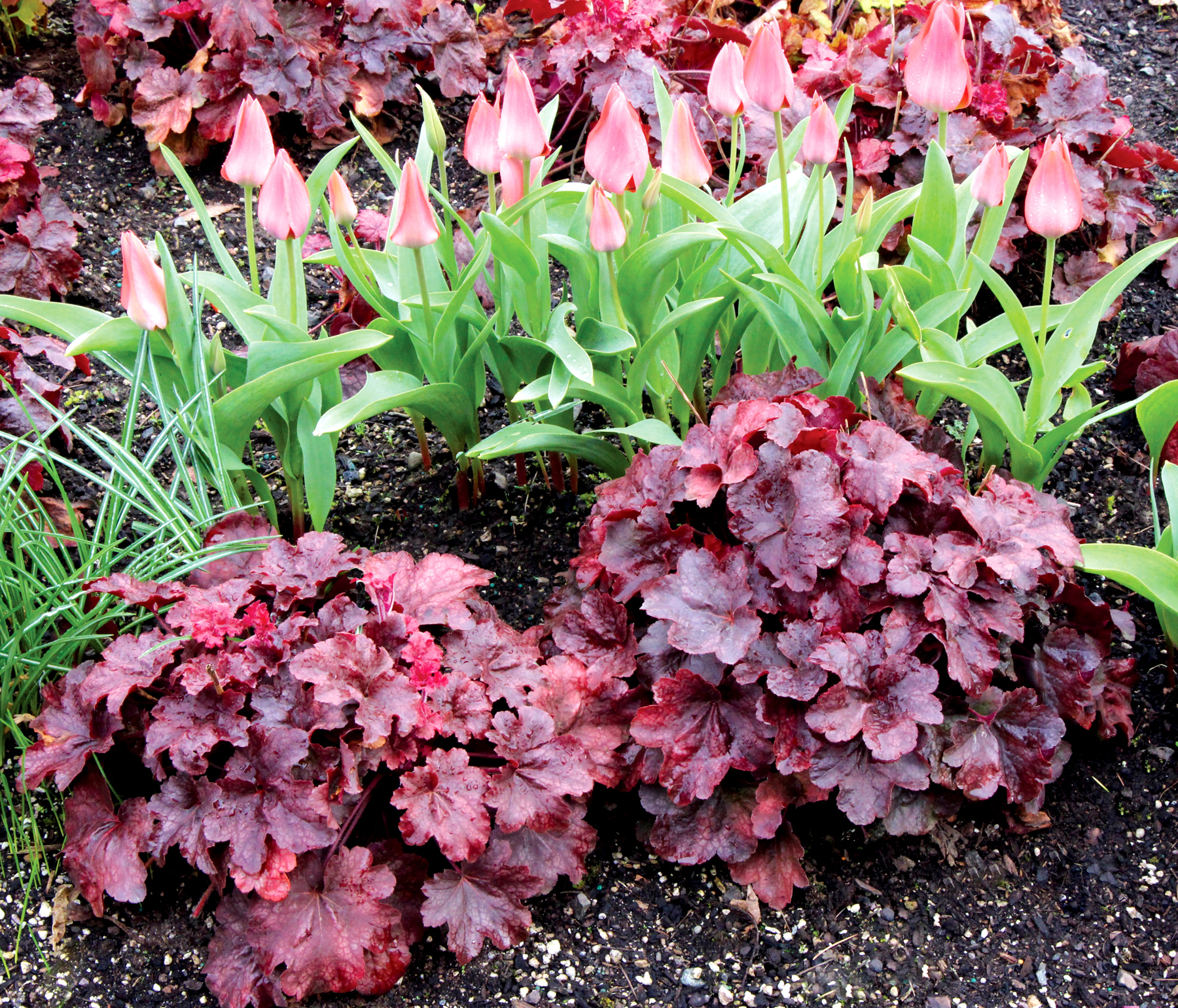 Heuchera goes well with many other perennials, trees and shrubs.