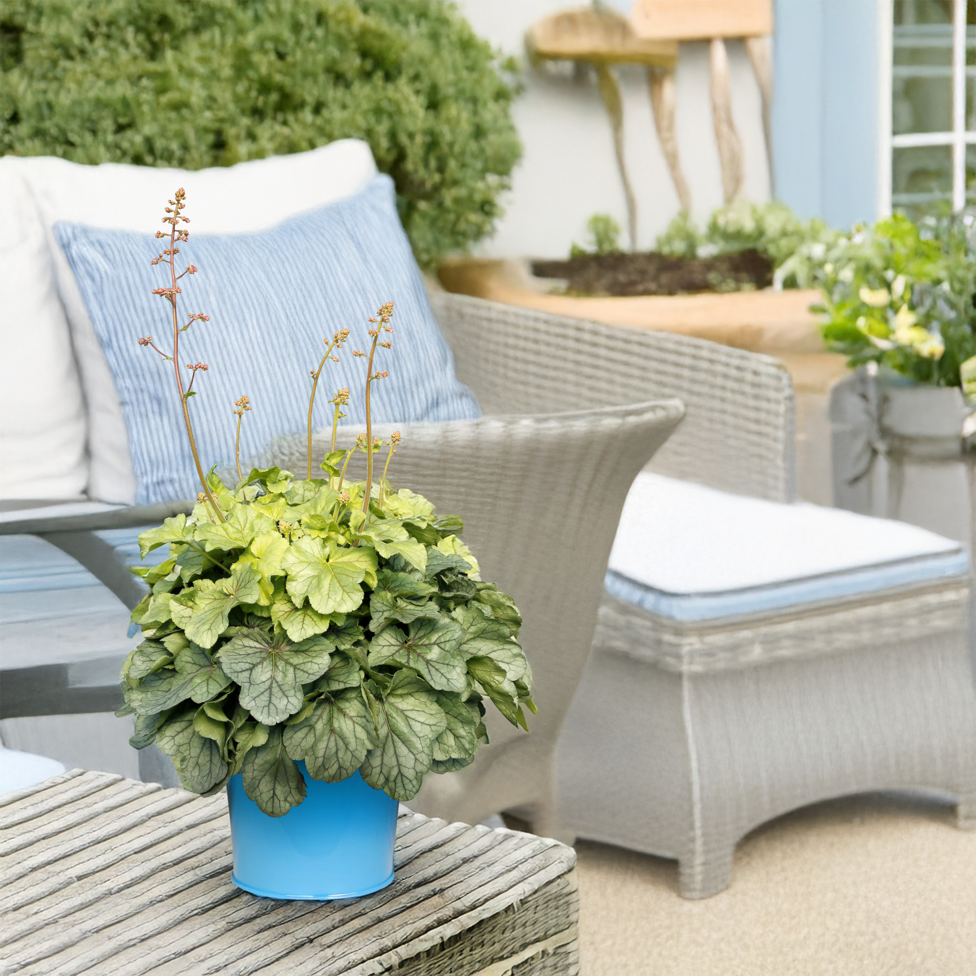 Brings a breath of coastal calm to the garden with its minty-lime foliage that glows like sunlit sea glass. The rounded, scalloped leaves form a tidy mound, offering a crisp contrast to darker companions. In summer, slender stems rise with delicate white blooms, adding a soft shimmer to the scene.