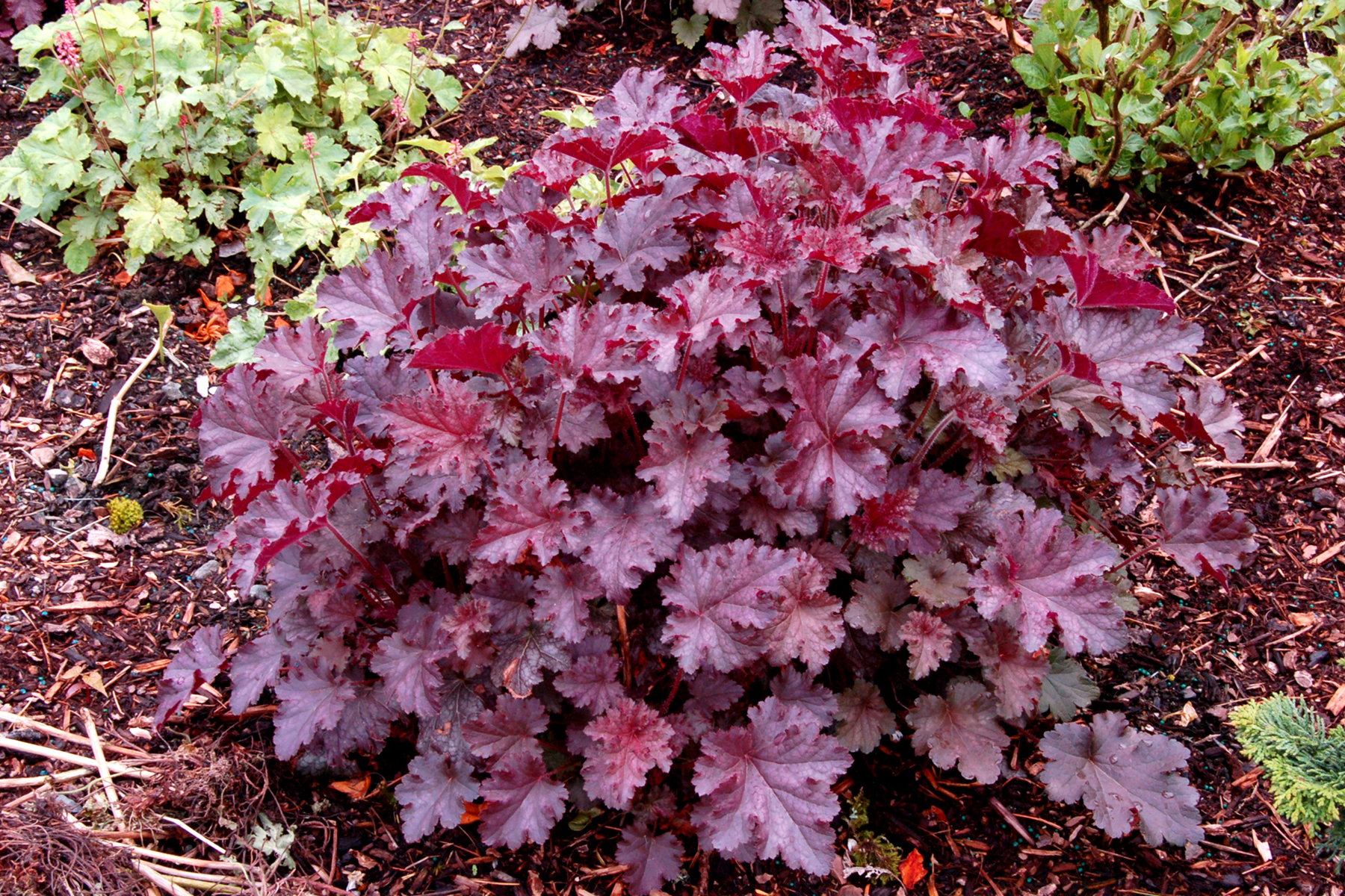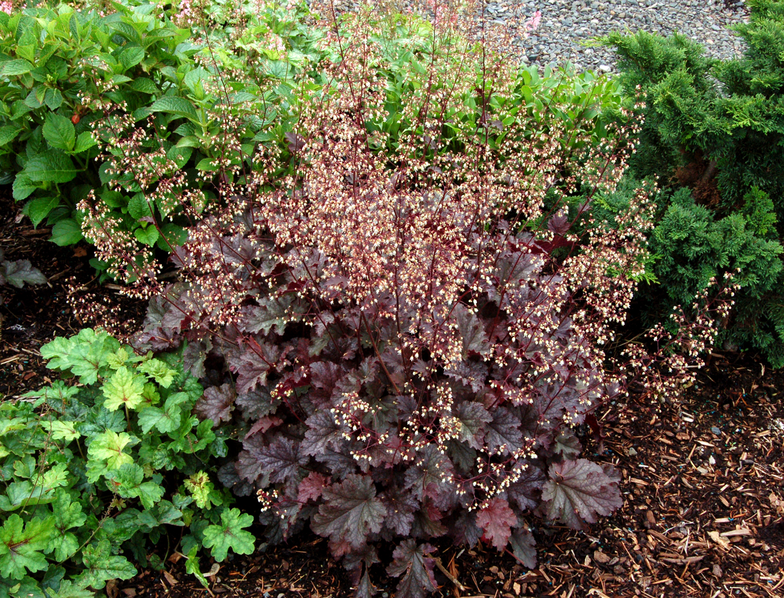 Heuchera goes well with many other perennials, trees and shrubs.