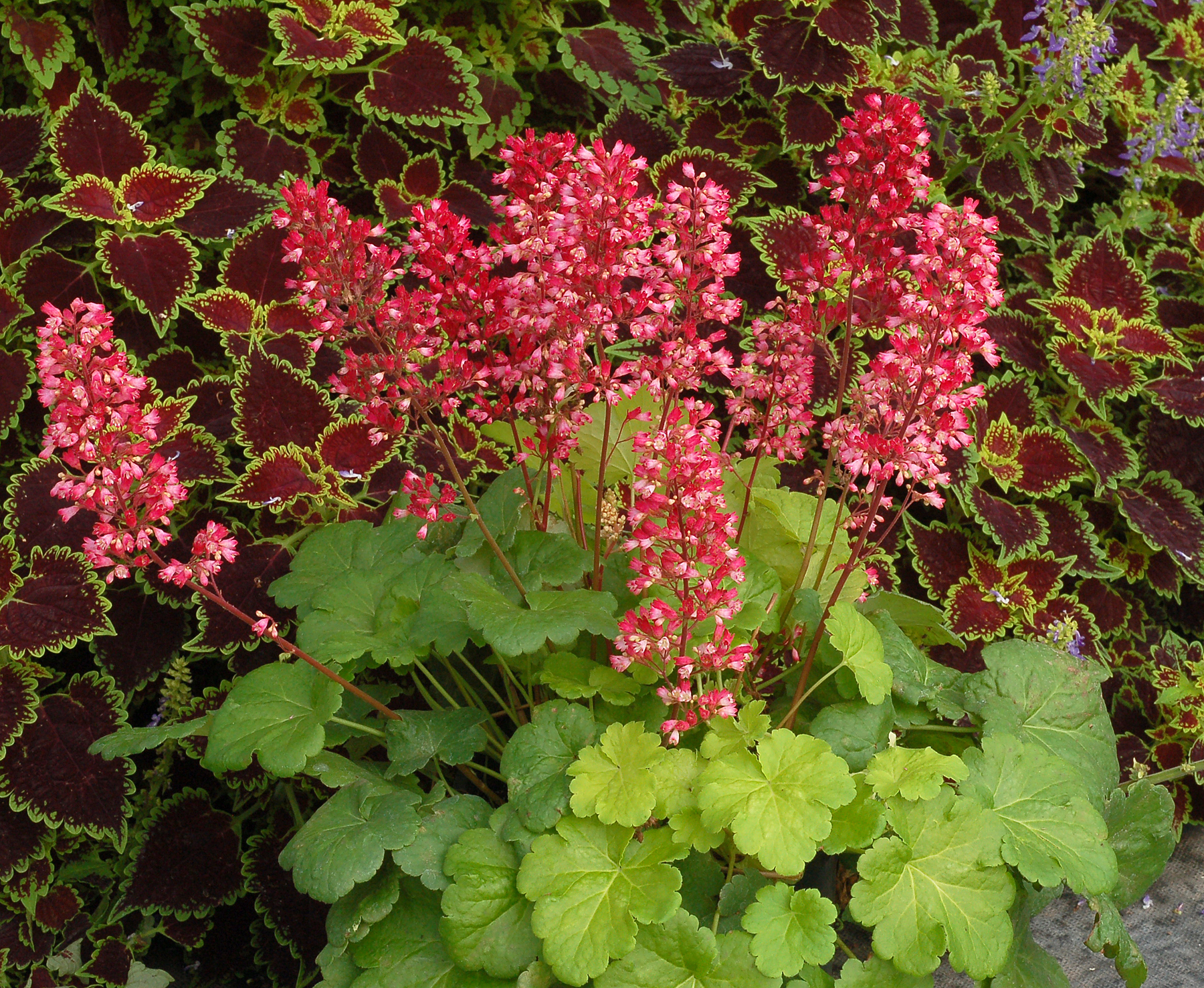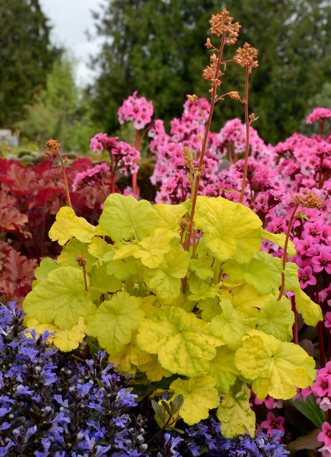 Heuchera goes well with many other perennials, trees and shrubs.