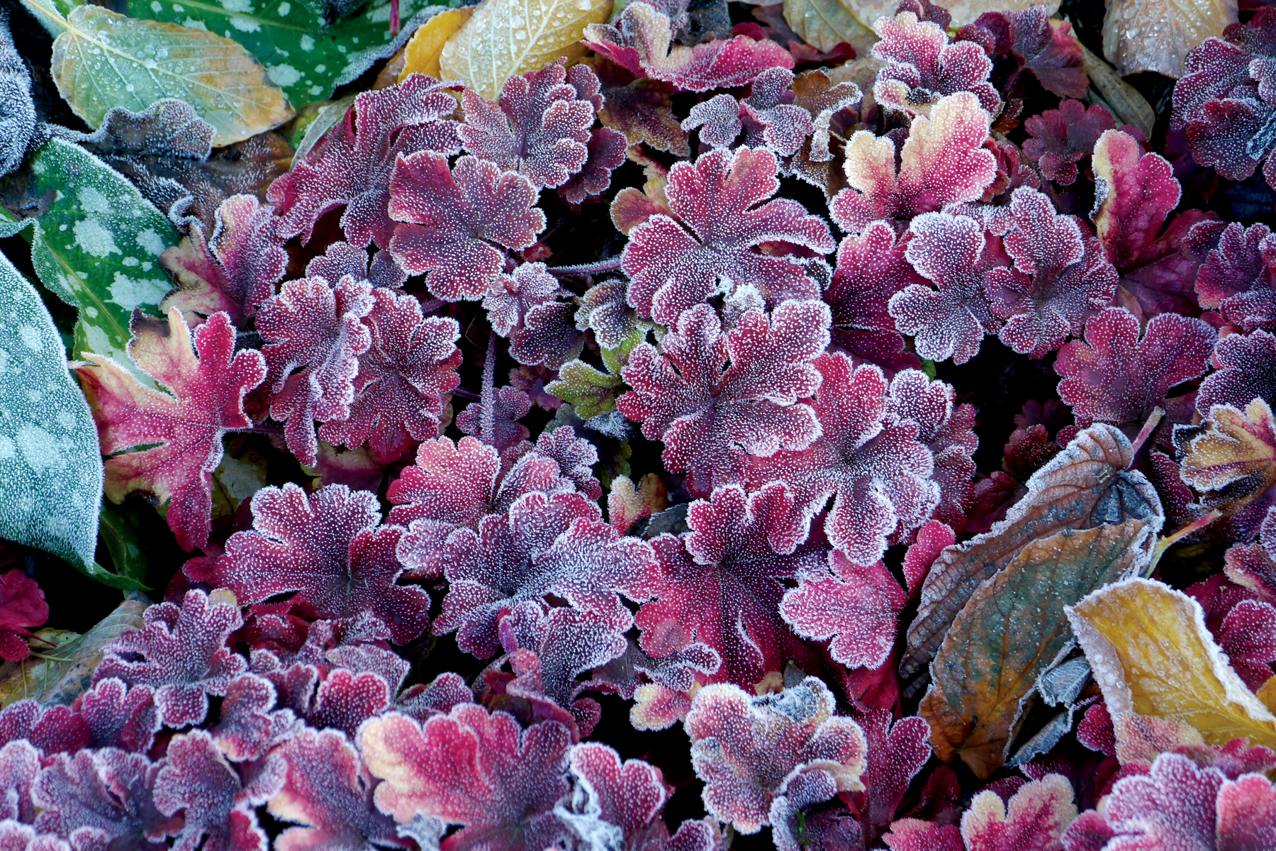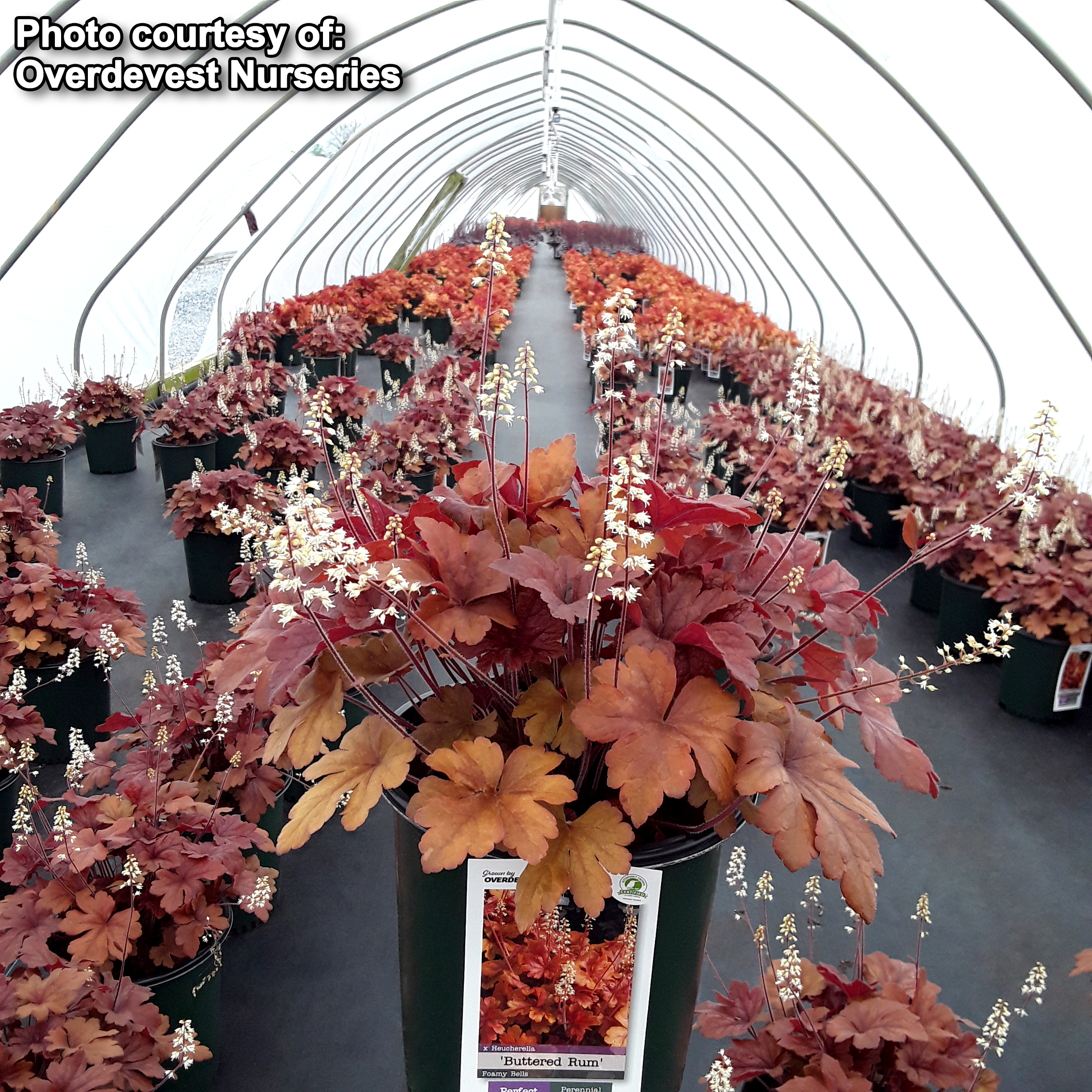 Caramel-dipped, deeply-cut maple leaves adorn this aptly named plant from spring to summer. In fall, the cool weather burnishes the leaves to a lovely rose red – a perfect complement to fall-planted containers. Grows into a medium size mound that's perfect in the landscape. Try it in a vertical planting with contrasting purple leaved varieties of Heuchera. These won't stay on the racks!