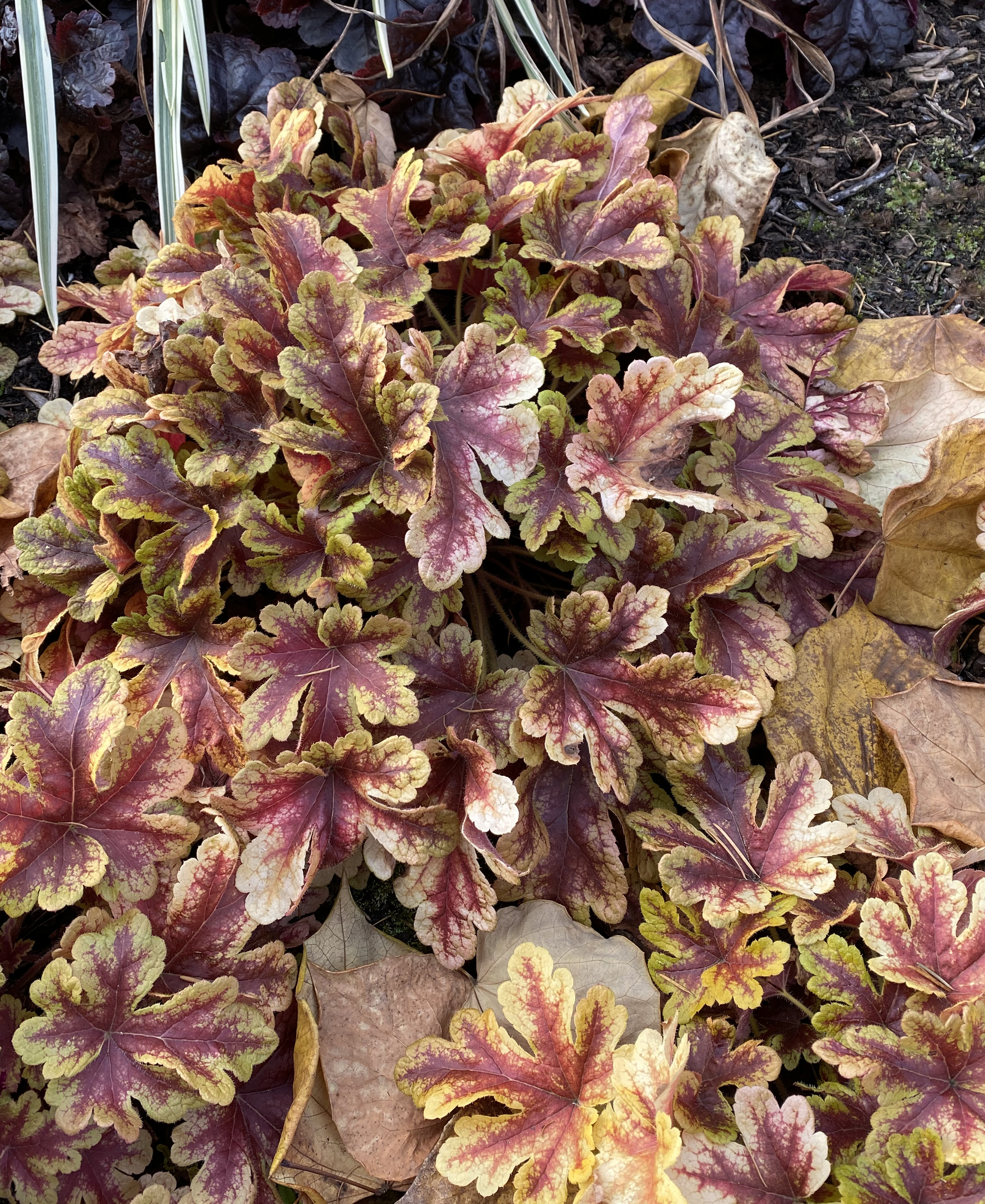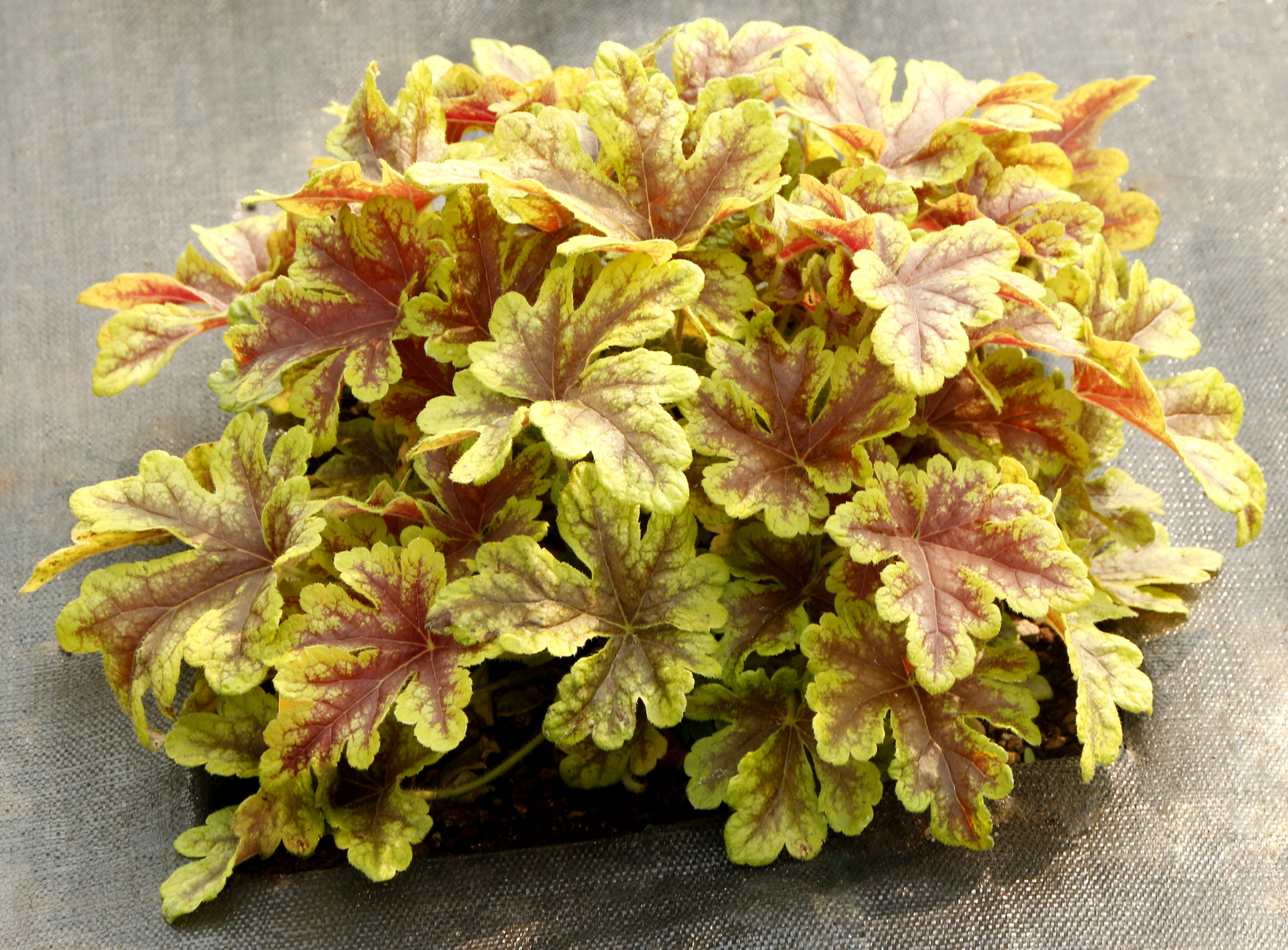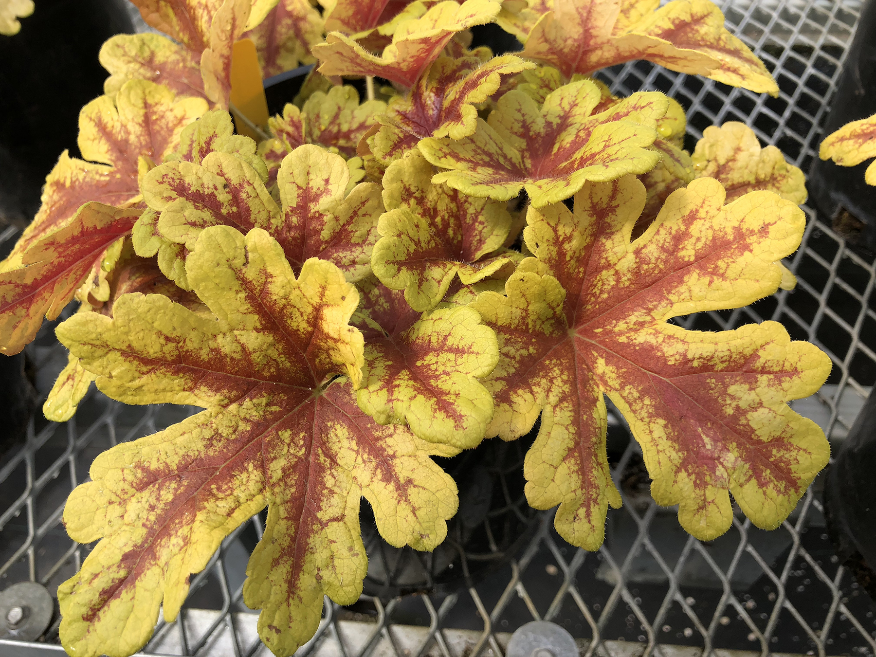 Nice cut, golden foliage boldly marked with dark red splashes. This plant performs beautifully in the sun, unlike others on the market. It's always neat with few or no flower spikes for easy maintenance making this a standout foliage component in mixed containers or “Front and Center” of the border. This plant grows with a dense, compact habit.