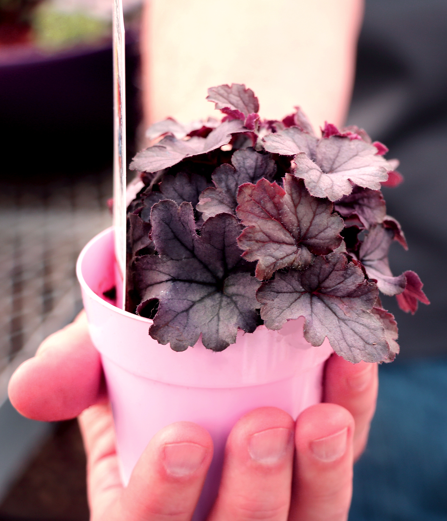 | How Different? | Small, purple leaf with silver veiled Heuchera, perfect for fairy gardens. |