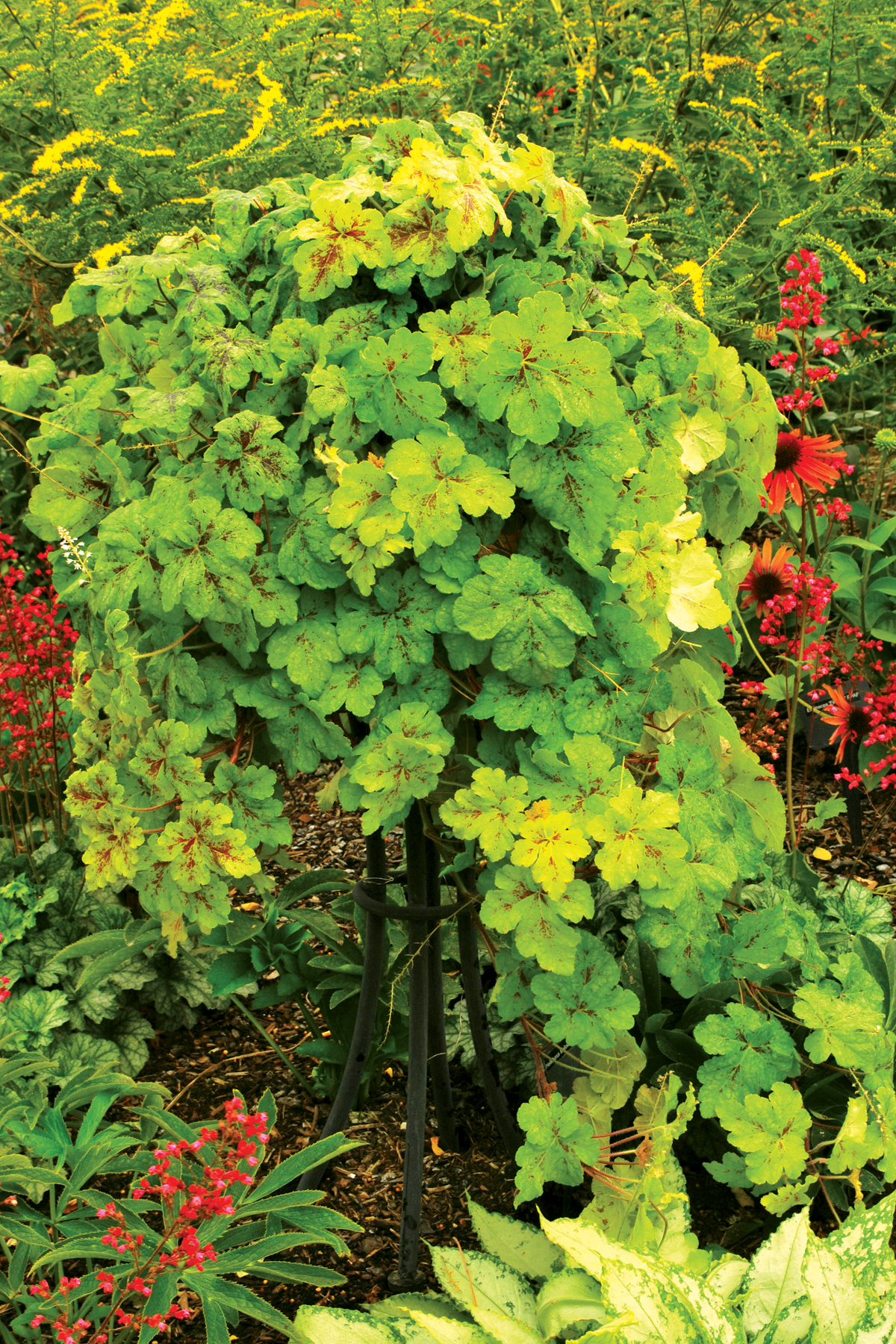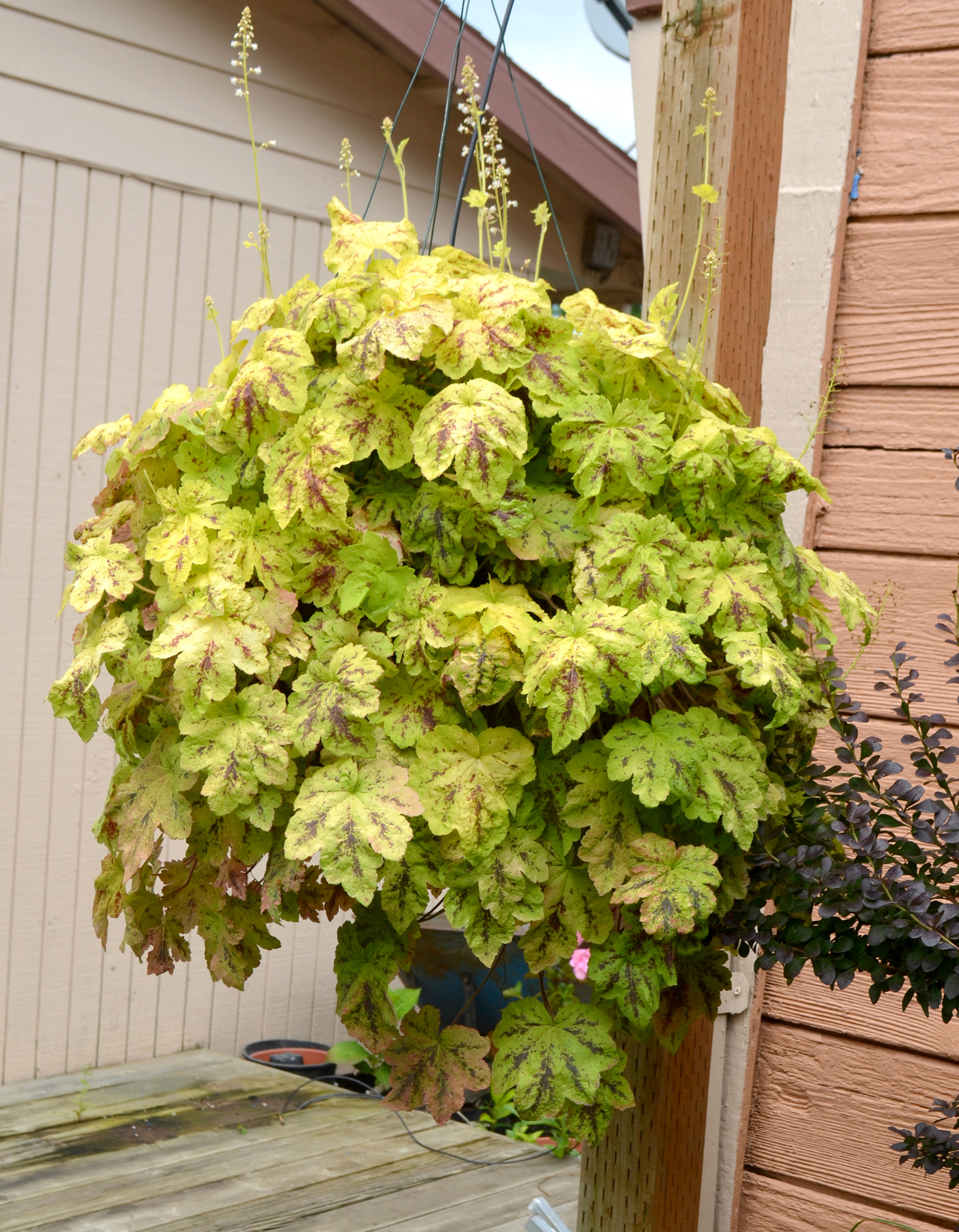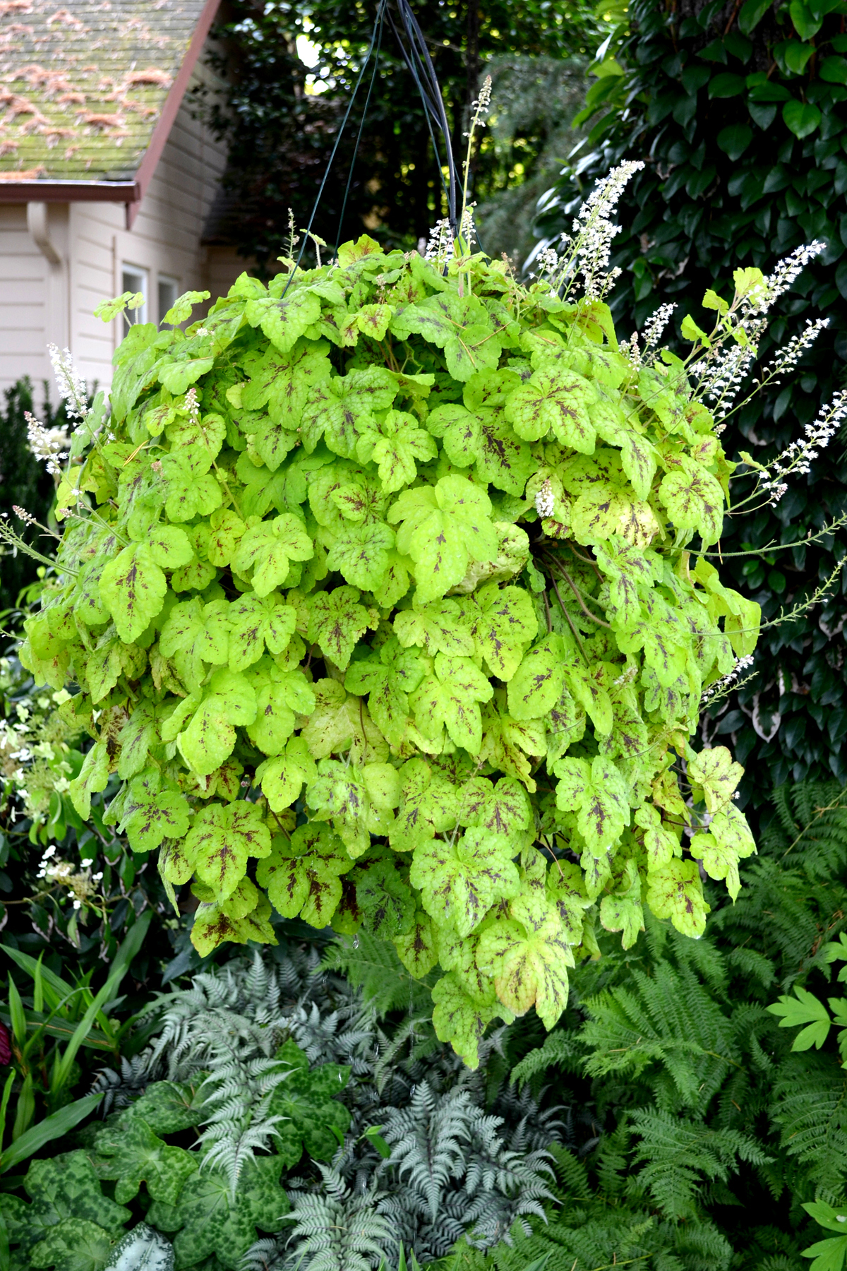 | How Different? | A trailing Heucherella! This has chartreuse to lime leaves that are marked with deep crimson. |
