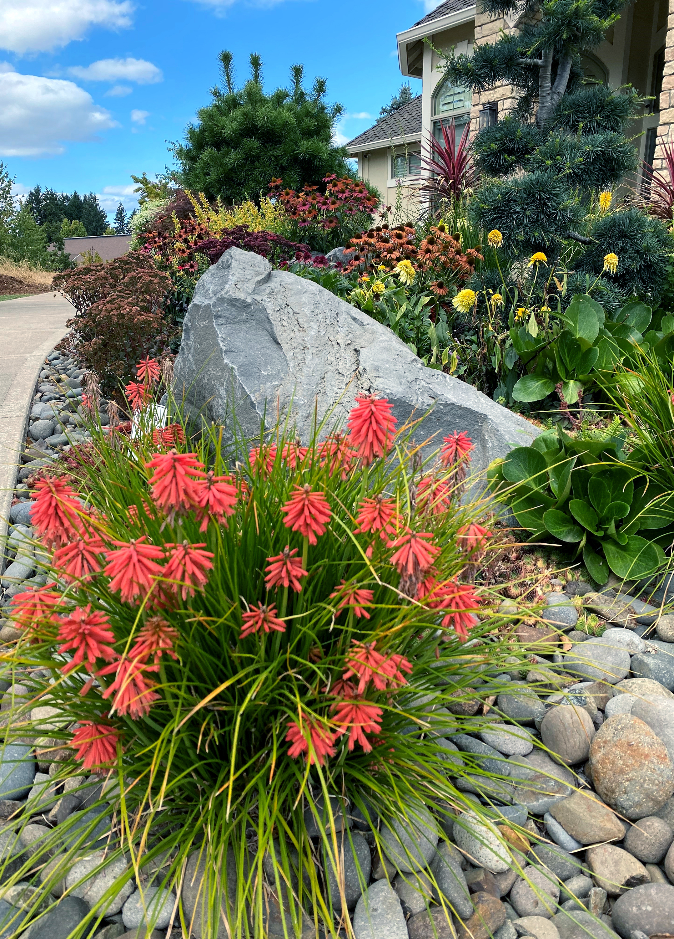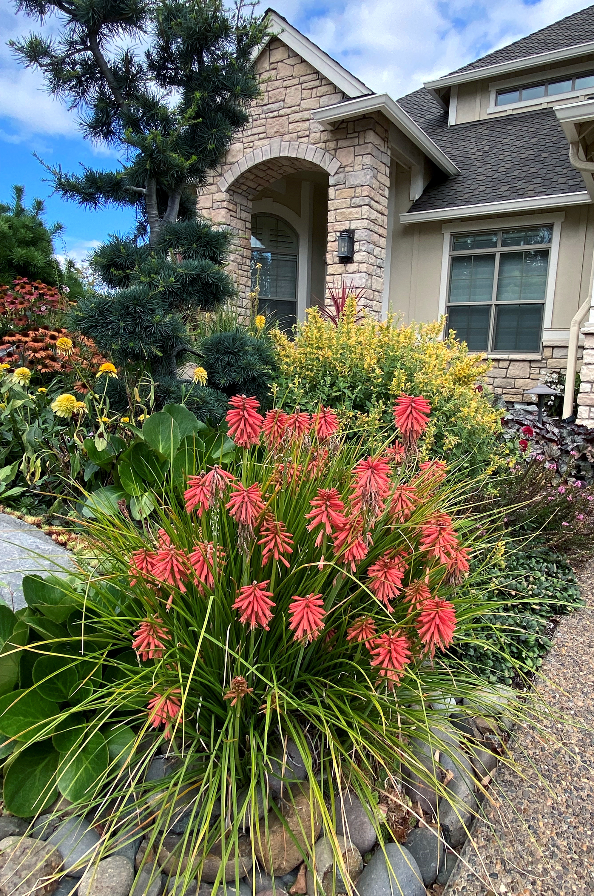 If you’re looking to add something exotic to your landscape, then look no further than Kniphofia! Also known as Torch Lilies or Red-Hot Pokers, these plants form substantial, grassy clumps with towering flower spikes that are irresistible to hummingbirds and butterflies. Beyond being super easy to grow, these beauties can also manage drought, although they tend to bloom more profusely with supplemental water.