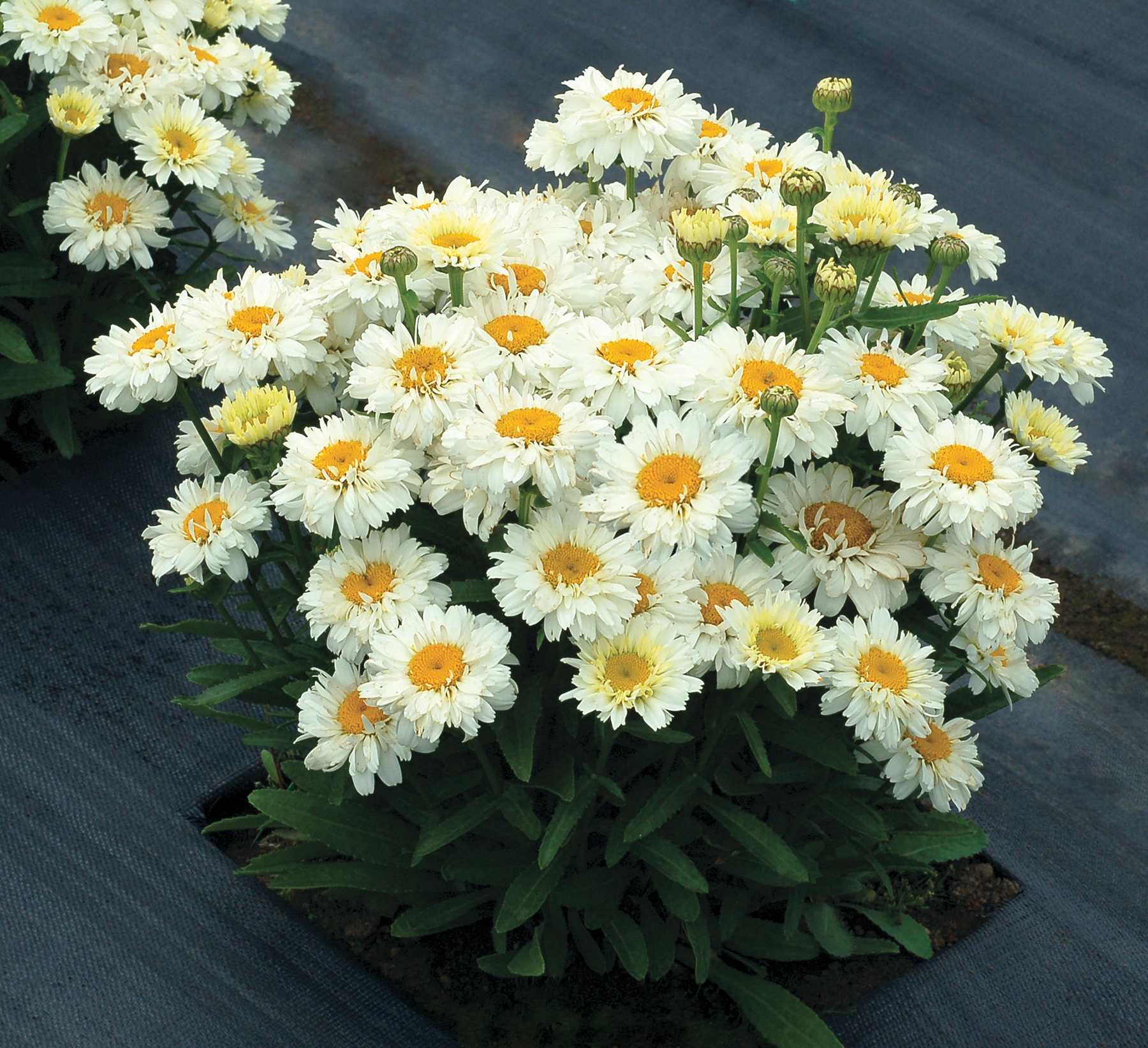 So cute and vigorous! Leucanthemum 'Adorable' is just that, adorable. Small compact habit with massive quantities of large, semi-double, white Shasta daisies. Use for borders or edging. Easy to grow.