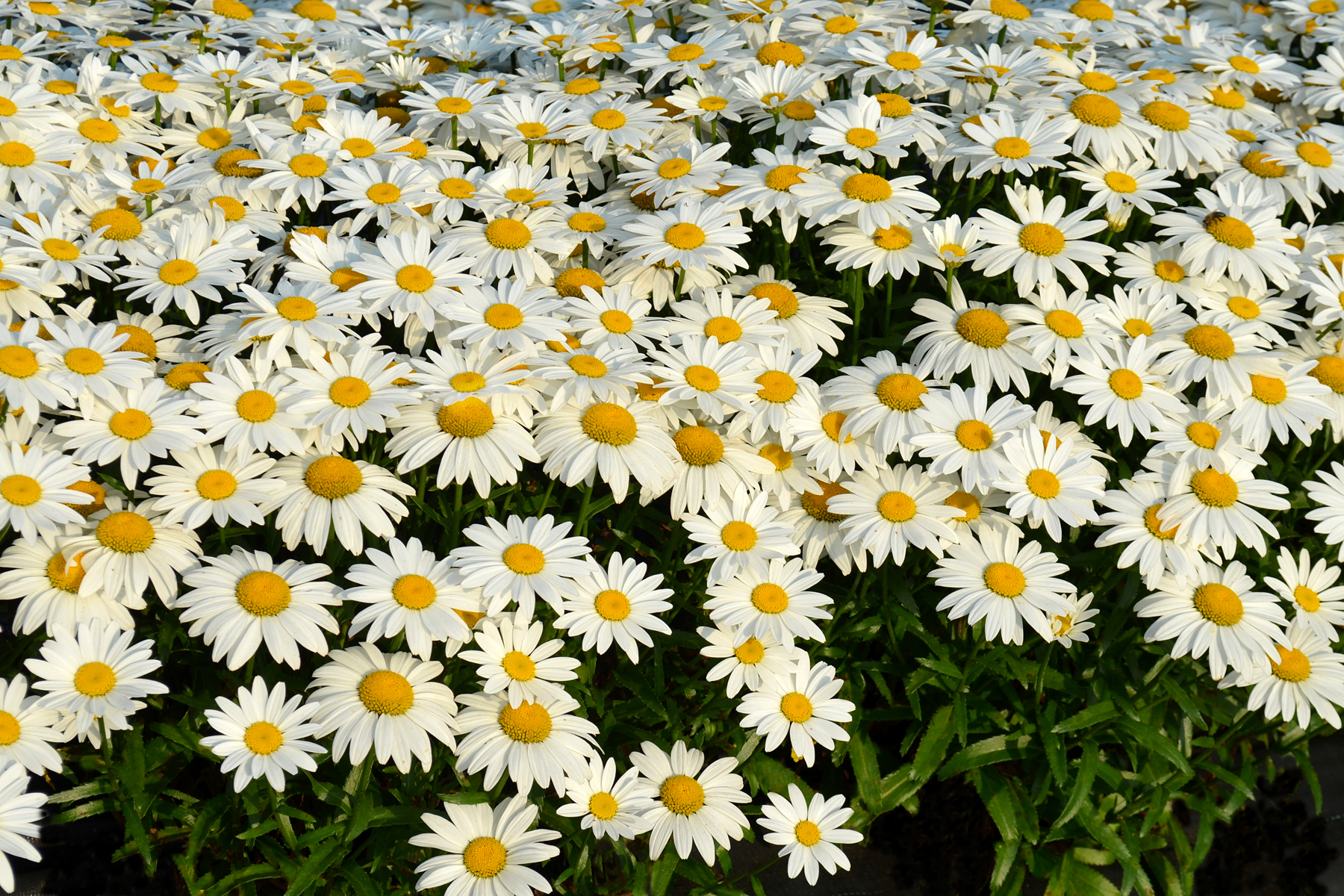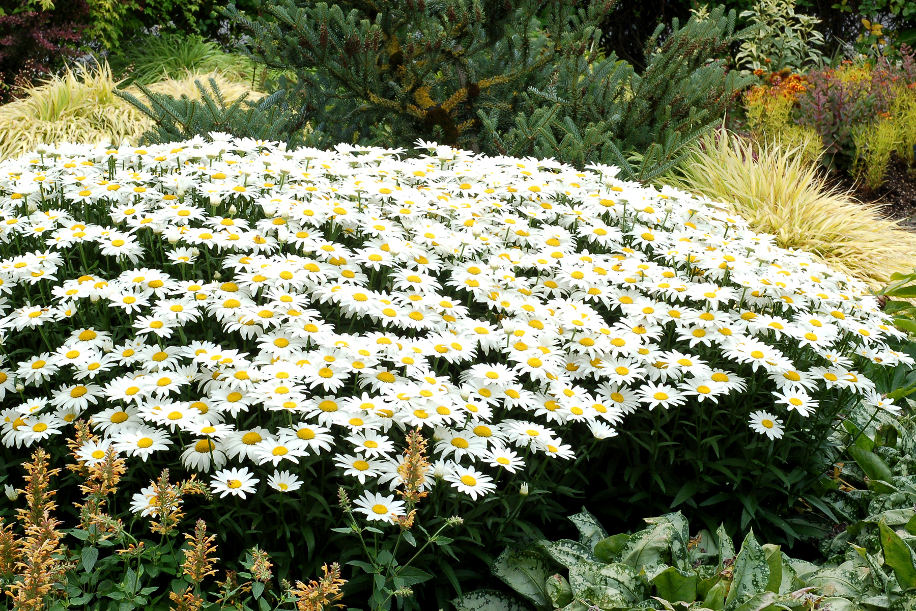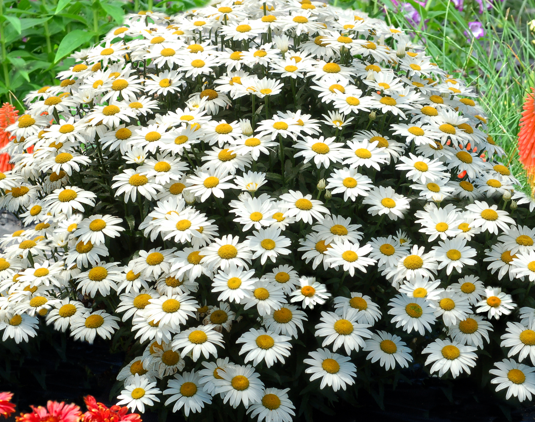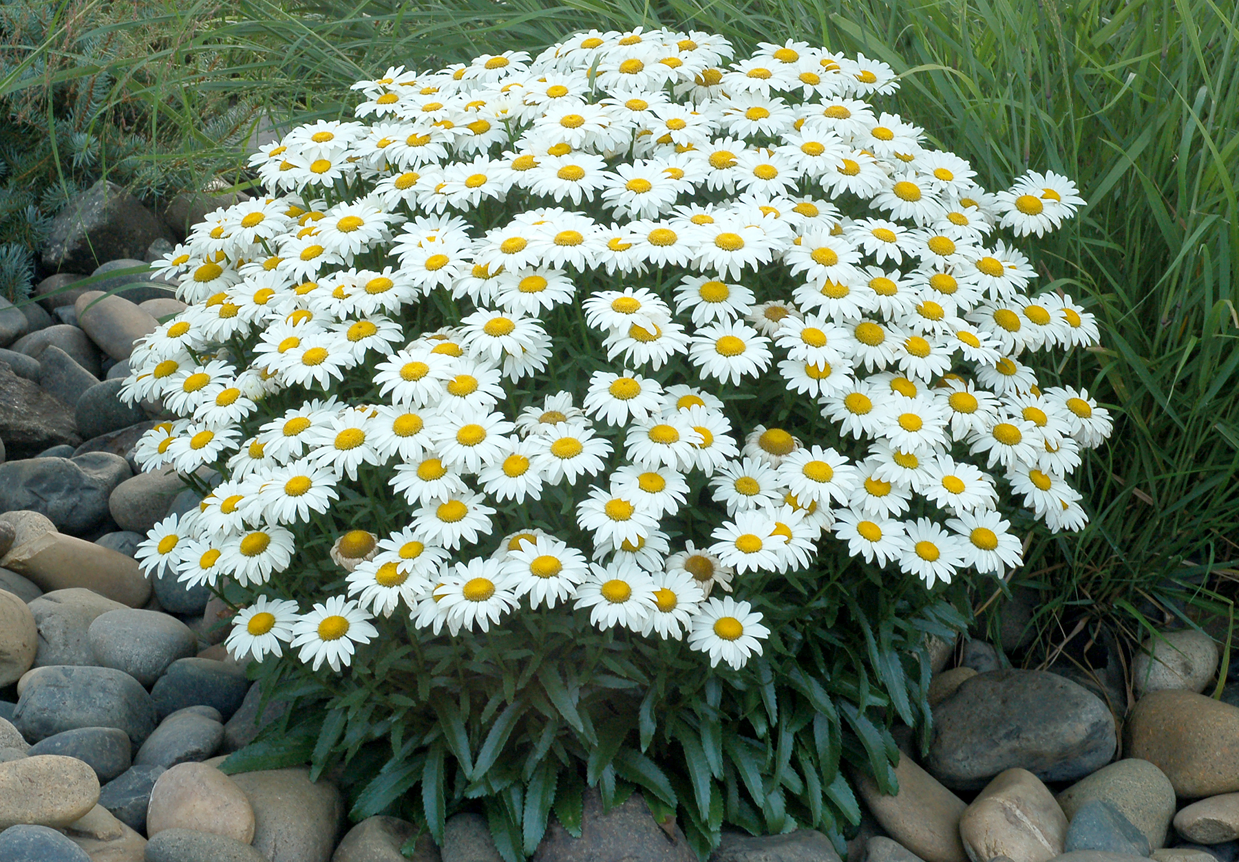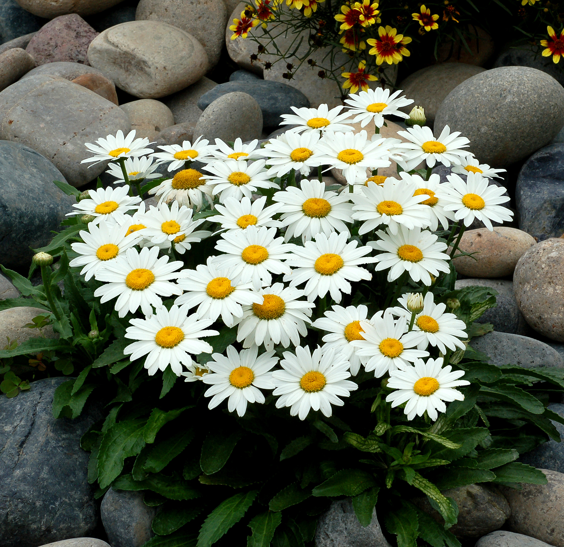 You asked for low, here it is! This cutie is short and neat with masses of single white daisies. Vigorous for the container or garden bed. Blooms late spring to mid-summer. A charmer!