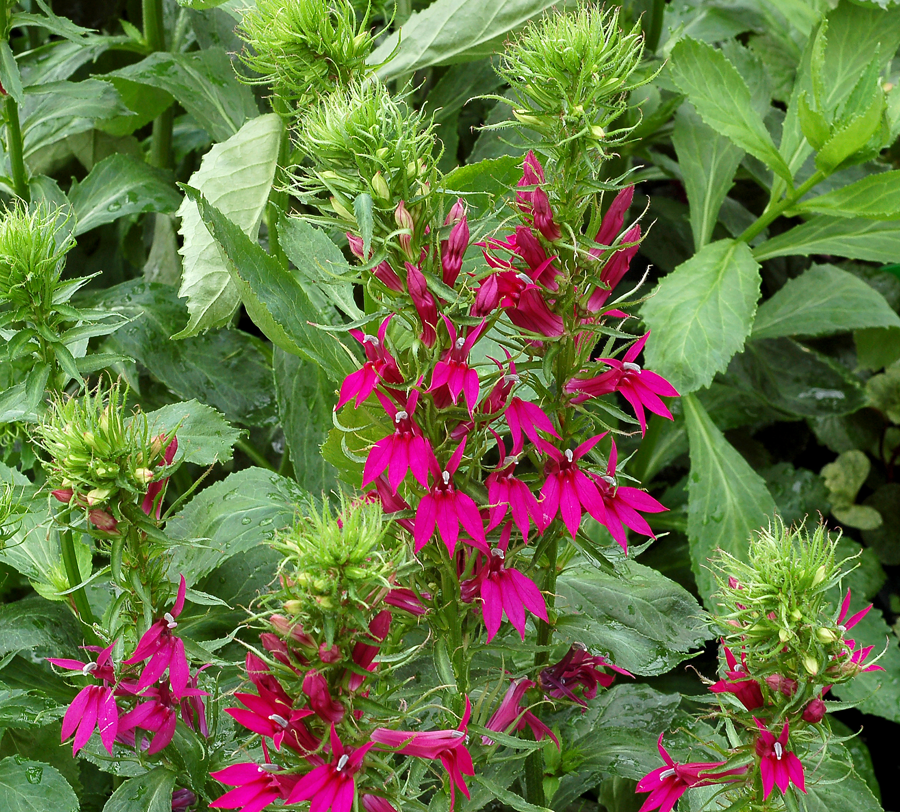 Tight inflorescences nearly bristle with flowers of cranberry-crimson. Flowers are large and showy. Rich color for the front of the border.