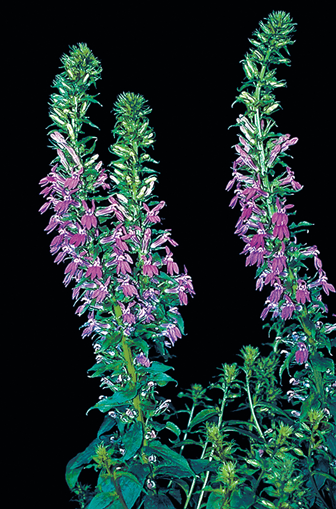 Lavender purple flowered Lobelia. Use in moist areas of the garden. Goes well with hot colors like Crocosmia.