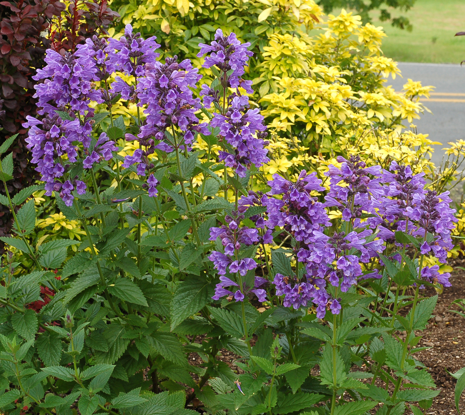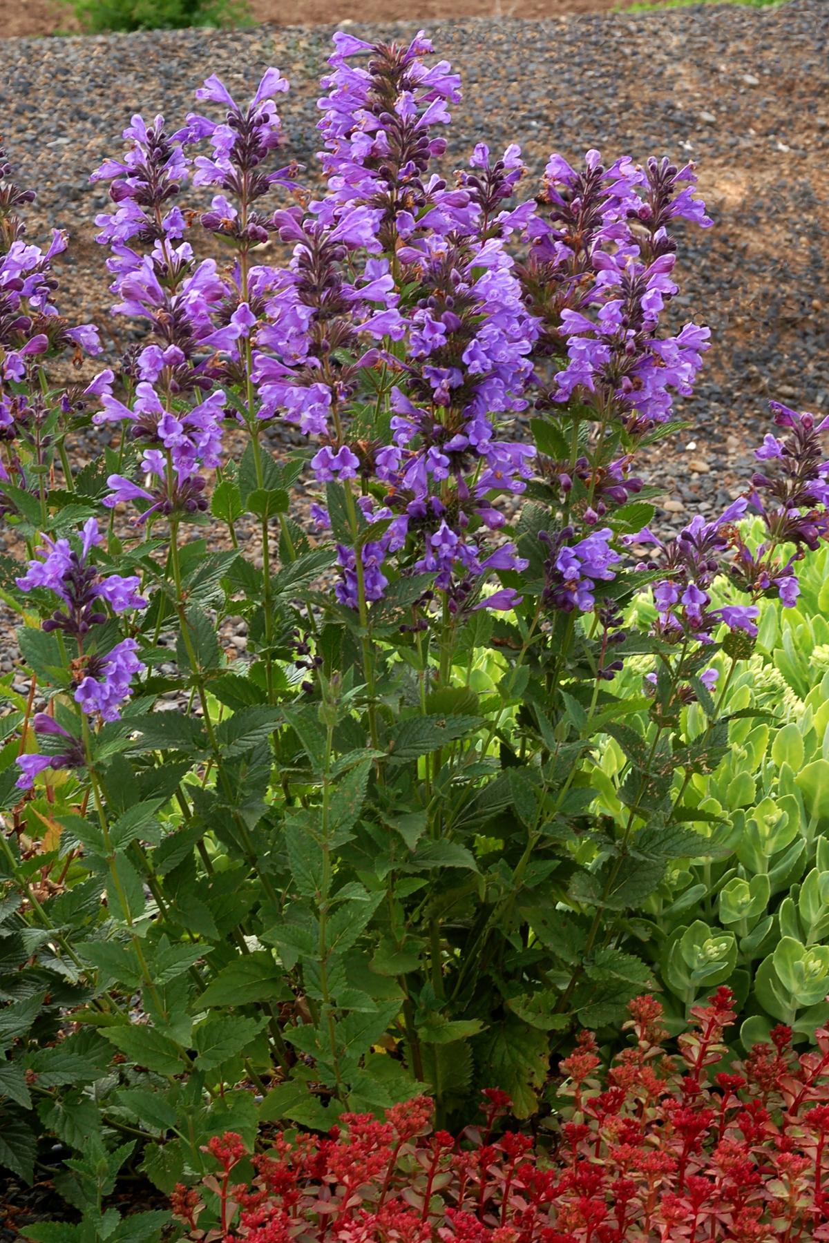 Our selection of this catmint has huge blue flowers, which upon close inspection, do look like blue dragon heads! Compared to the species, 'Blue Dragon' is upright and compact (rather than floppy) with larger, showier flowers. Excellent in a sunny border or large container.