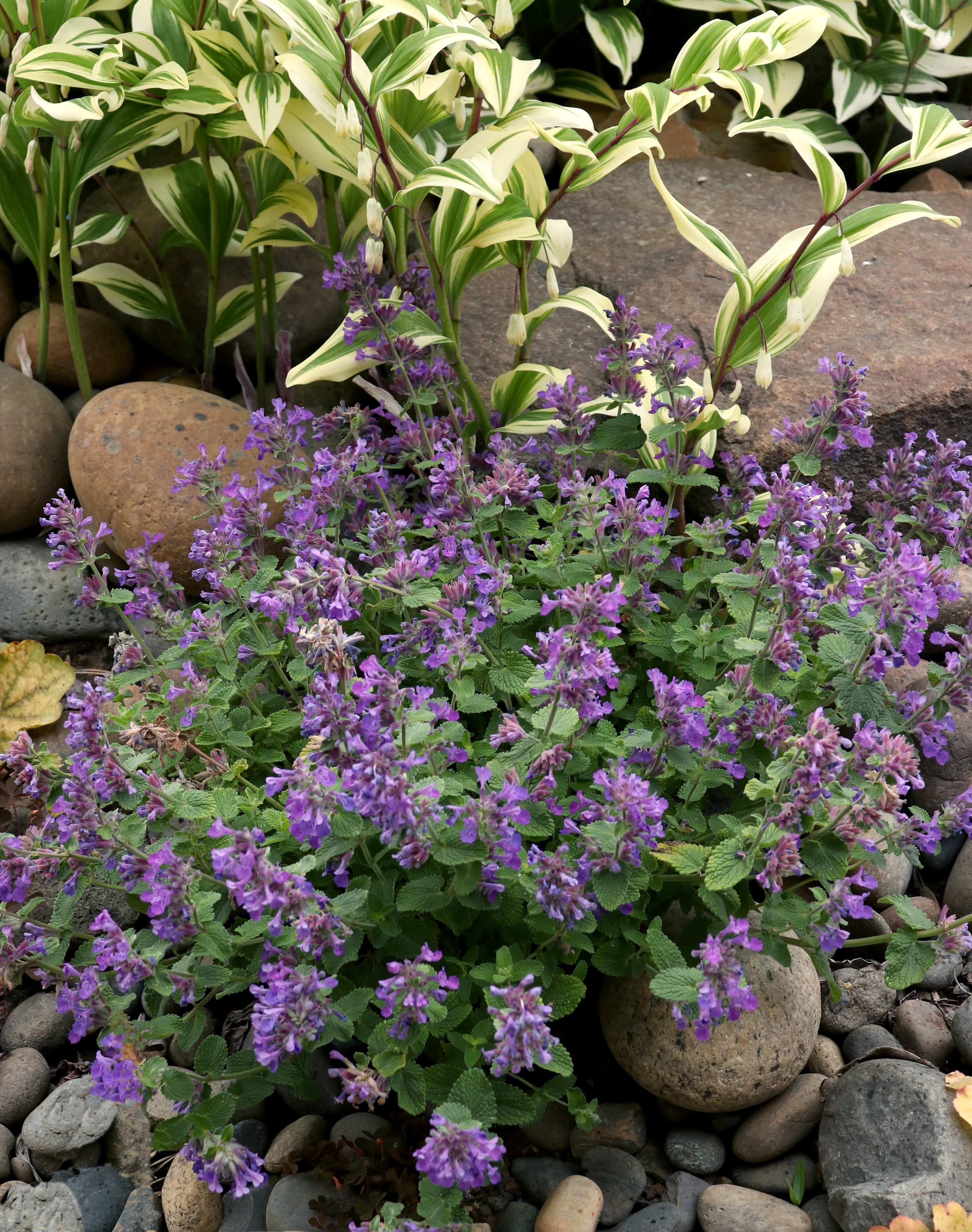An incredibly clean and crisp new catmint that blooms early while continuing to look tidy long into the season. Bright lavender purple blooms make this a fantastic pollinator attractor, a top favorite of bees and butterflies. Distinctive small foliage has a sweet scent and looks great when used as a groundcover, on edges or in containers. Works well in a hanging basket!