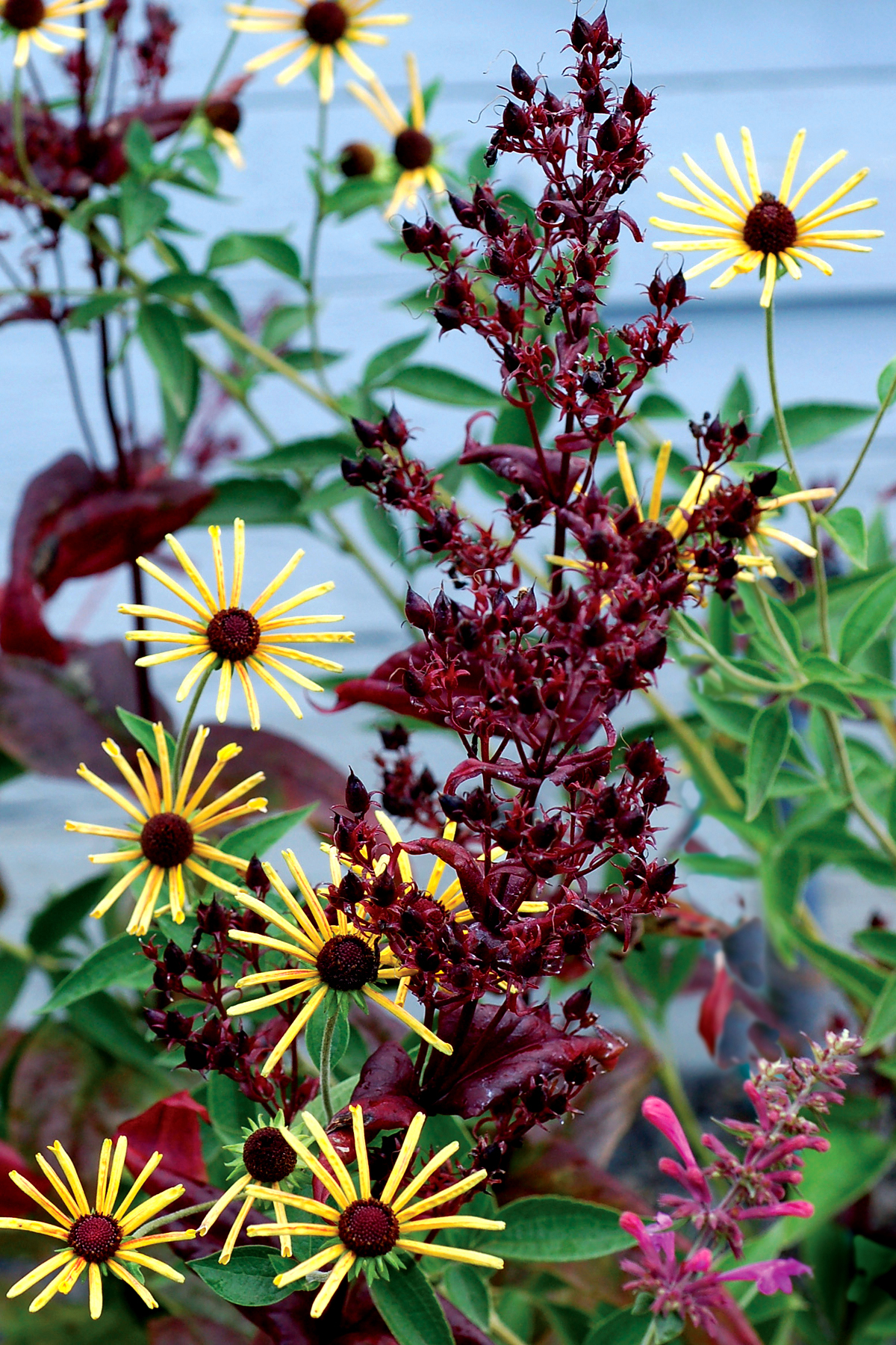 Glossy bronze-red foliage is topped with masses of pink flowers in July and August. Compared to 'Husker's Red', this beauty has much darker foliage which stays darker. Dale Lindgren of University of Nebraska created this dark leaf ultra-hardy, pink flowering form. A tough, carefree plant which tolerates high heat and humidity. A perfect dark background plant for the border.