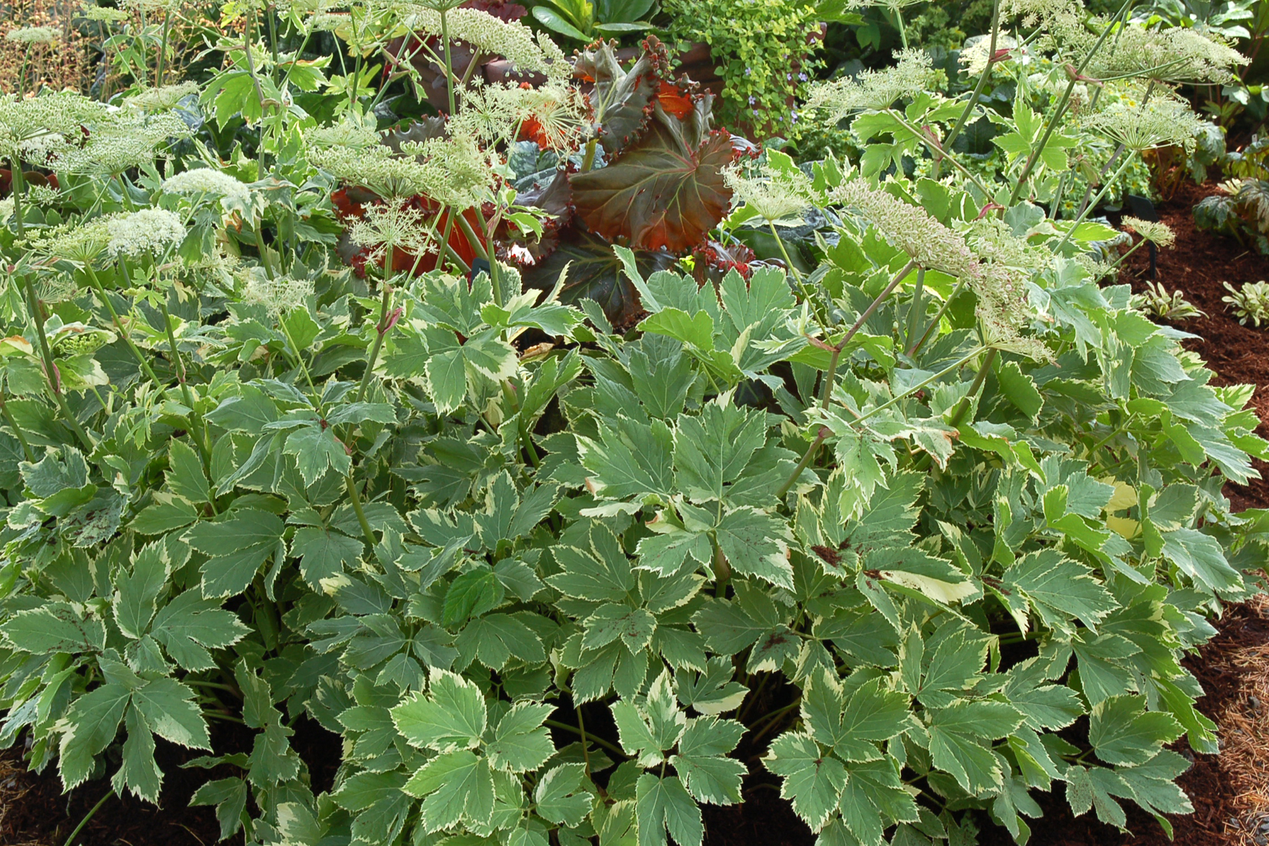 | How Different? | It is similar looking to Aegopodium (Bishop's weed) but bigger and not invasive. A slow spreader. |