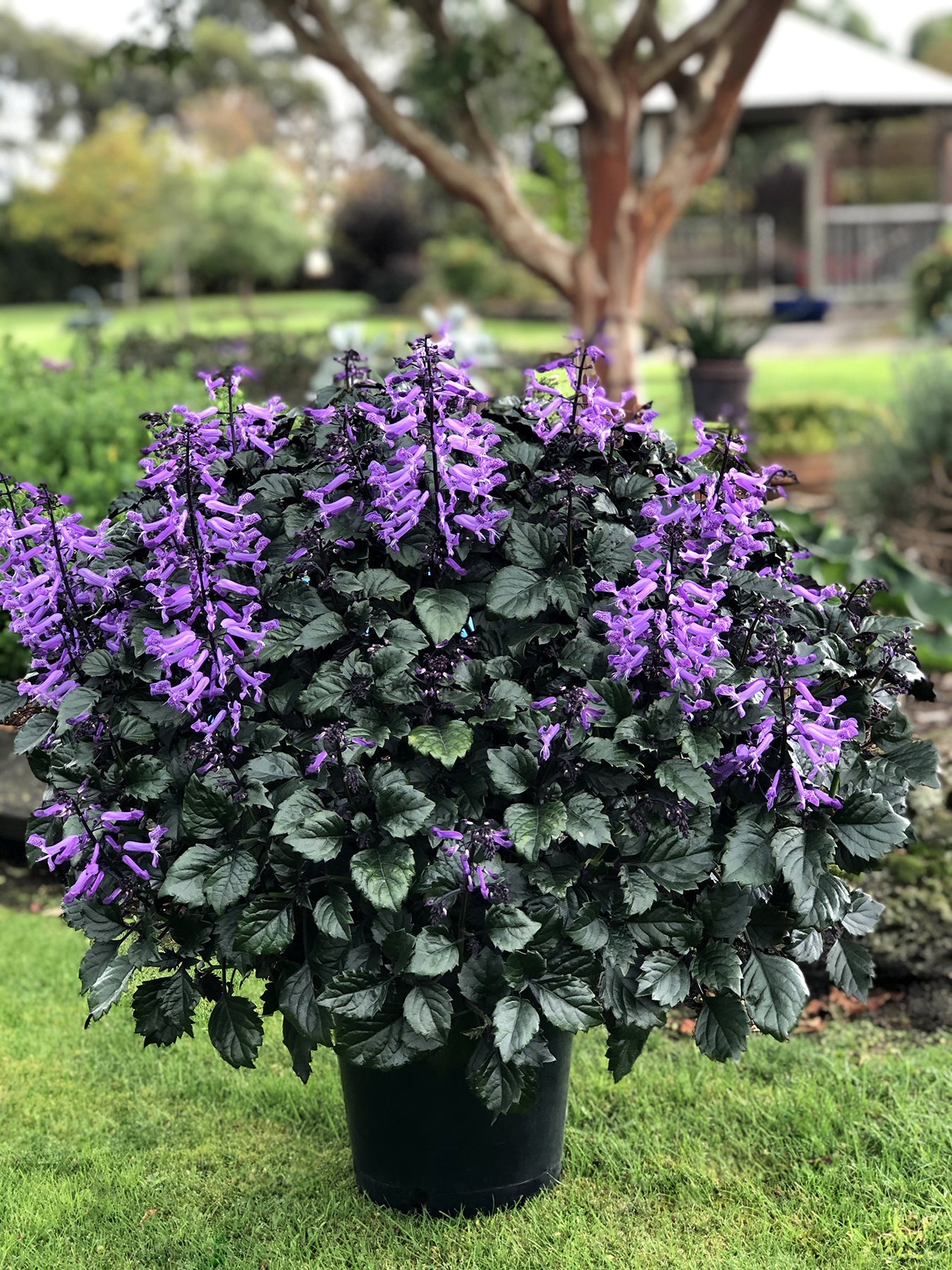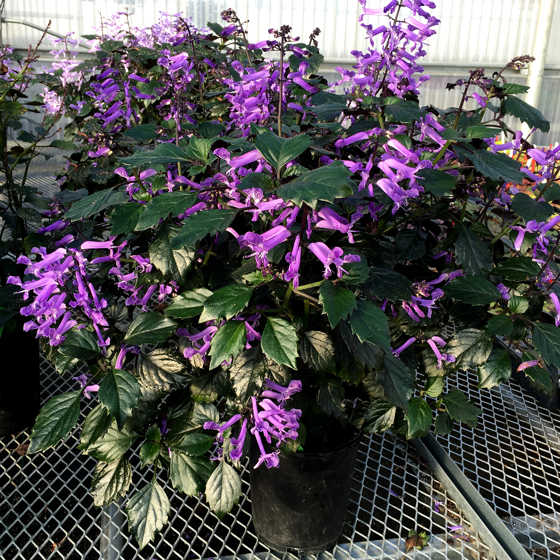 Dark leaves with purple undertones contrast nicely with tubular, 2-lipped purple flowers. These plants are self-branching, naturally compact, and extended bloom time. Enjoy in the garden, large mixed containers and summer borders.