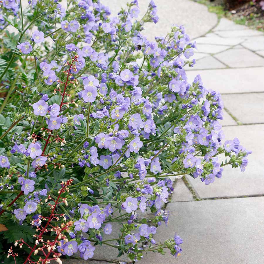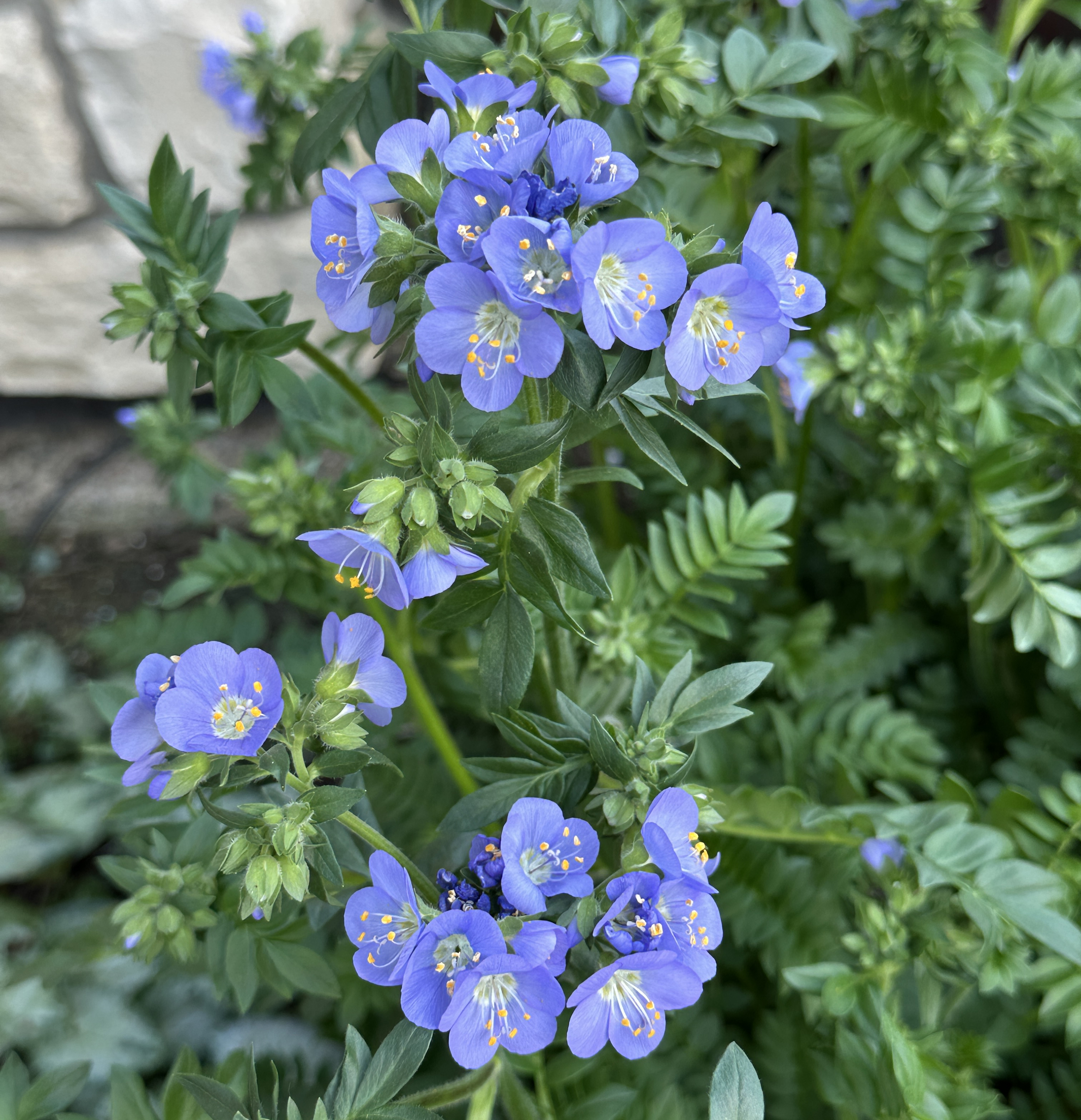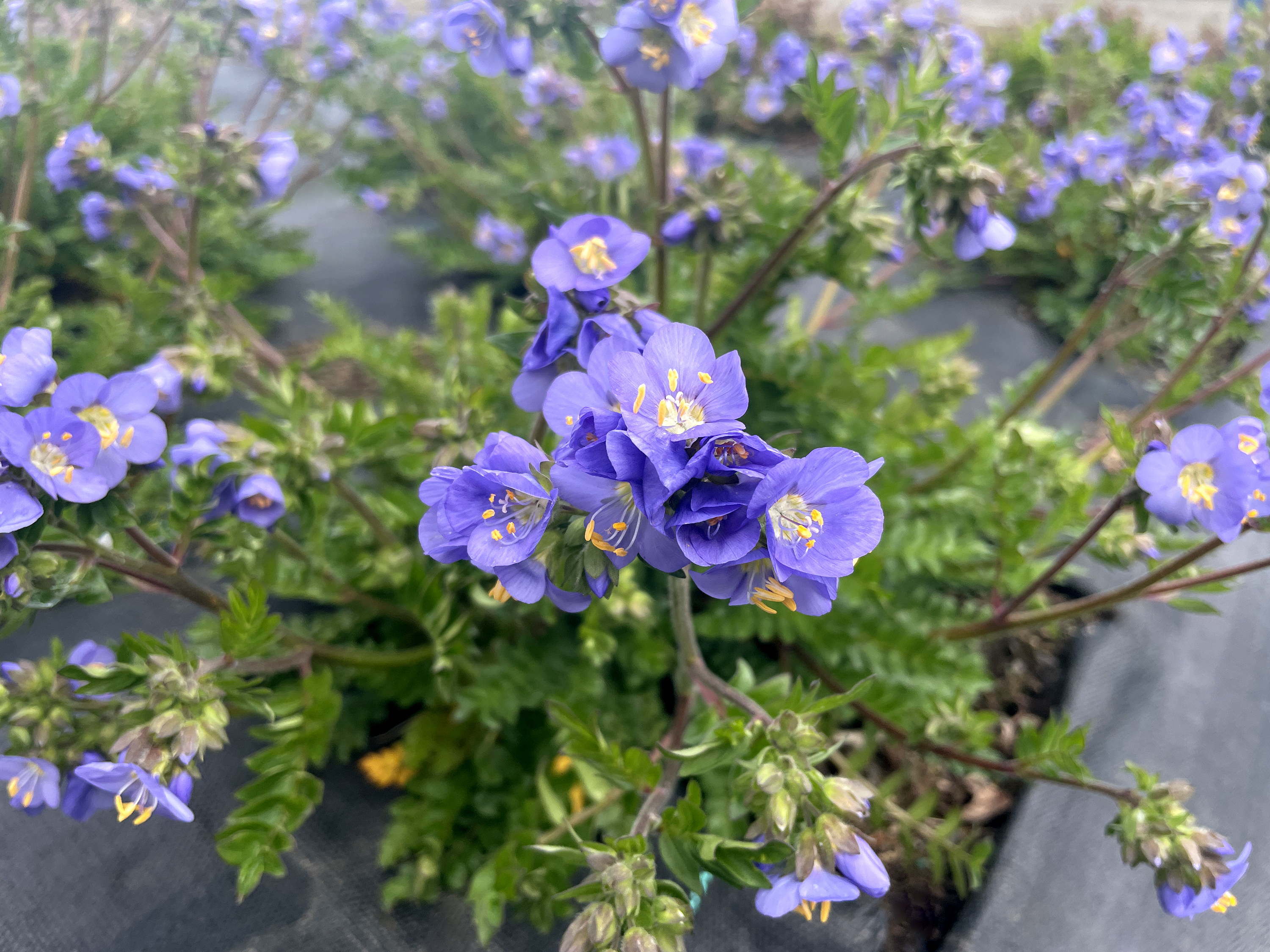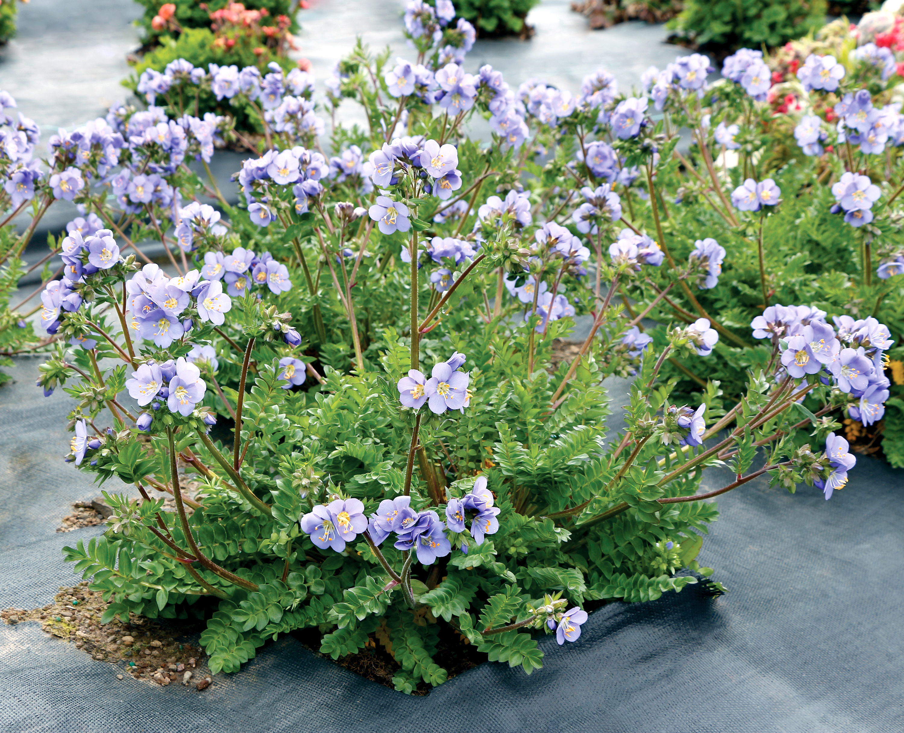 Foliage favorite for the garden with many improvements. Named for one of the truest bluest views of the Olympic mountains in Washington State, where this nativar originates. It is a tough, hardy perennial that tolerates both sun and shade well. Repeating curved frond-like foliage has an attractive geometric element that is pleasing to the eye throughout its growth. Light lilac-blue toned flowers grace the top of the crisp green leafed cyclone mid-summer. Great for containers, added foliage texture and mixed sun/shade locations.