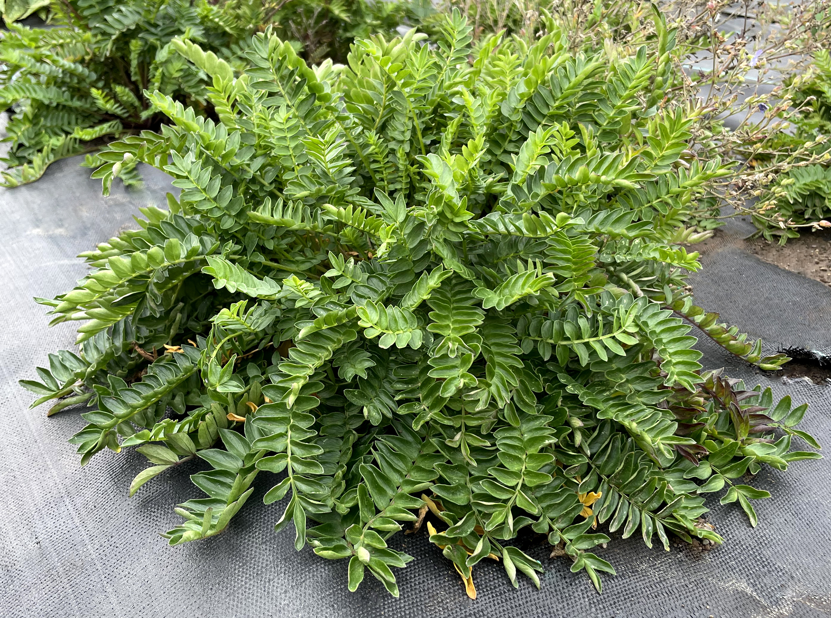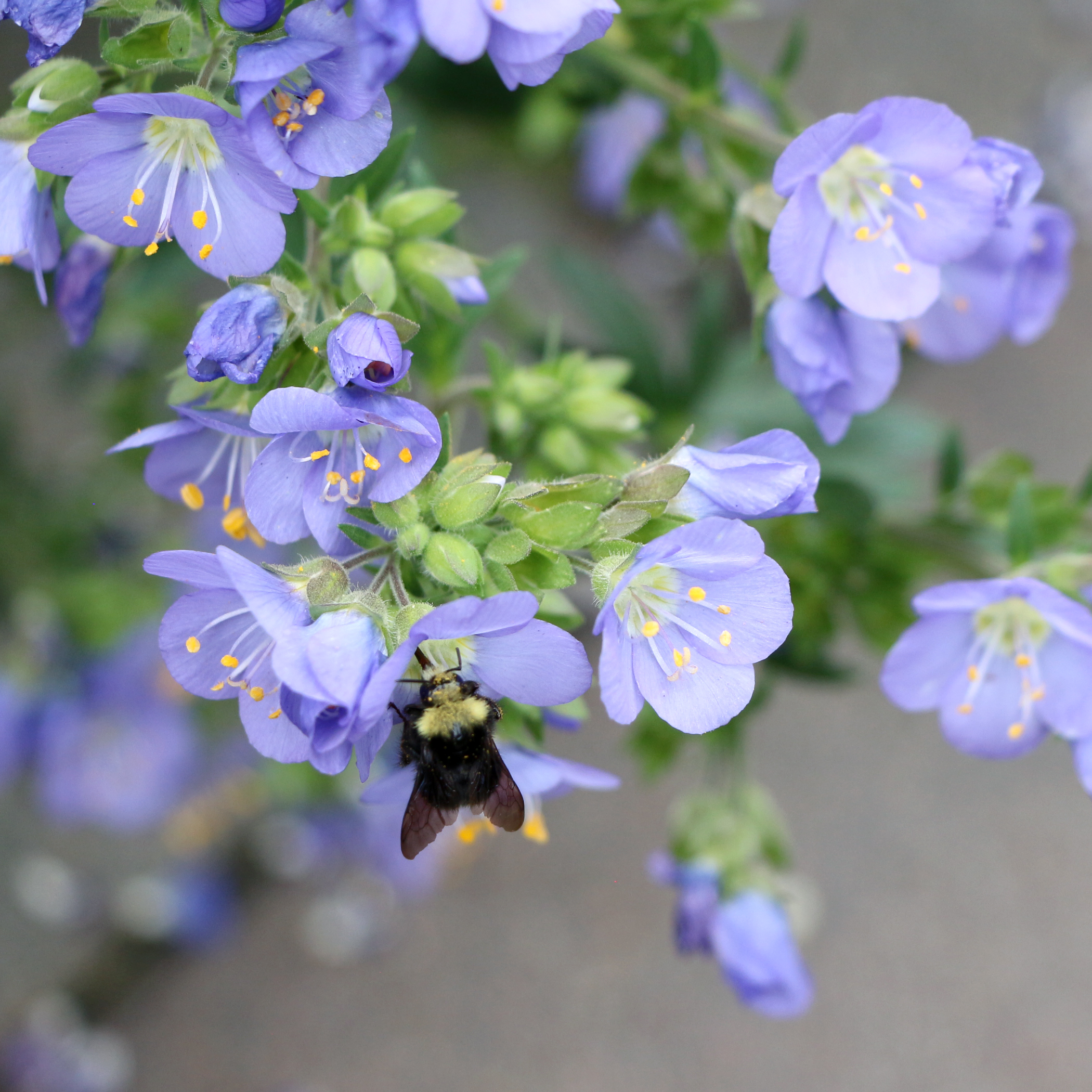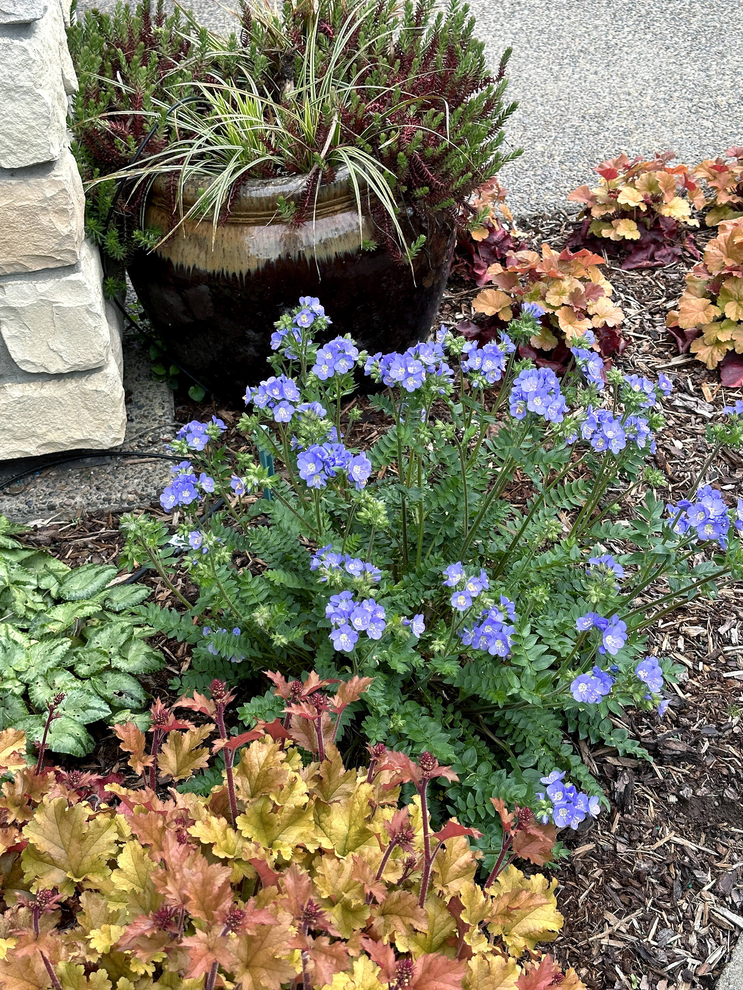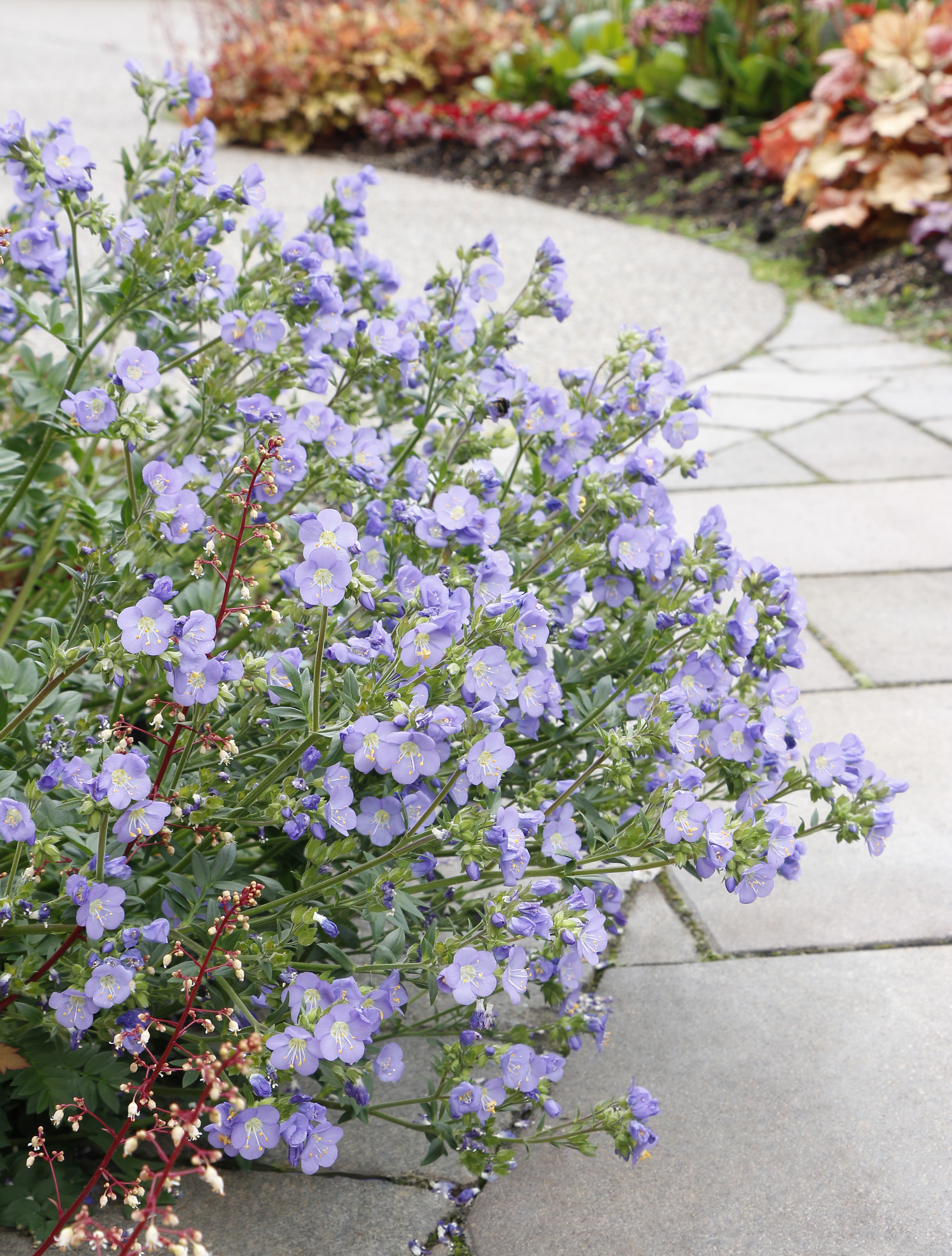 Foliage favorite for the garden with many improvements. Named for one of the truest bluest views of the Olympic mountains in Washington State, where this nativar originates. It is a tough, hardy perennial that tolerates both sun and shade well. Repeating curved frond-like foliage has an attractive geometric element that is pleasing to the eye throughout its growth. Light lilac-blue toned flowers grace the top of the crisp green leafed cyclone mid-summer. Great for containers, added foliage texture and mixed sun/shade locations.