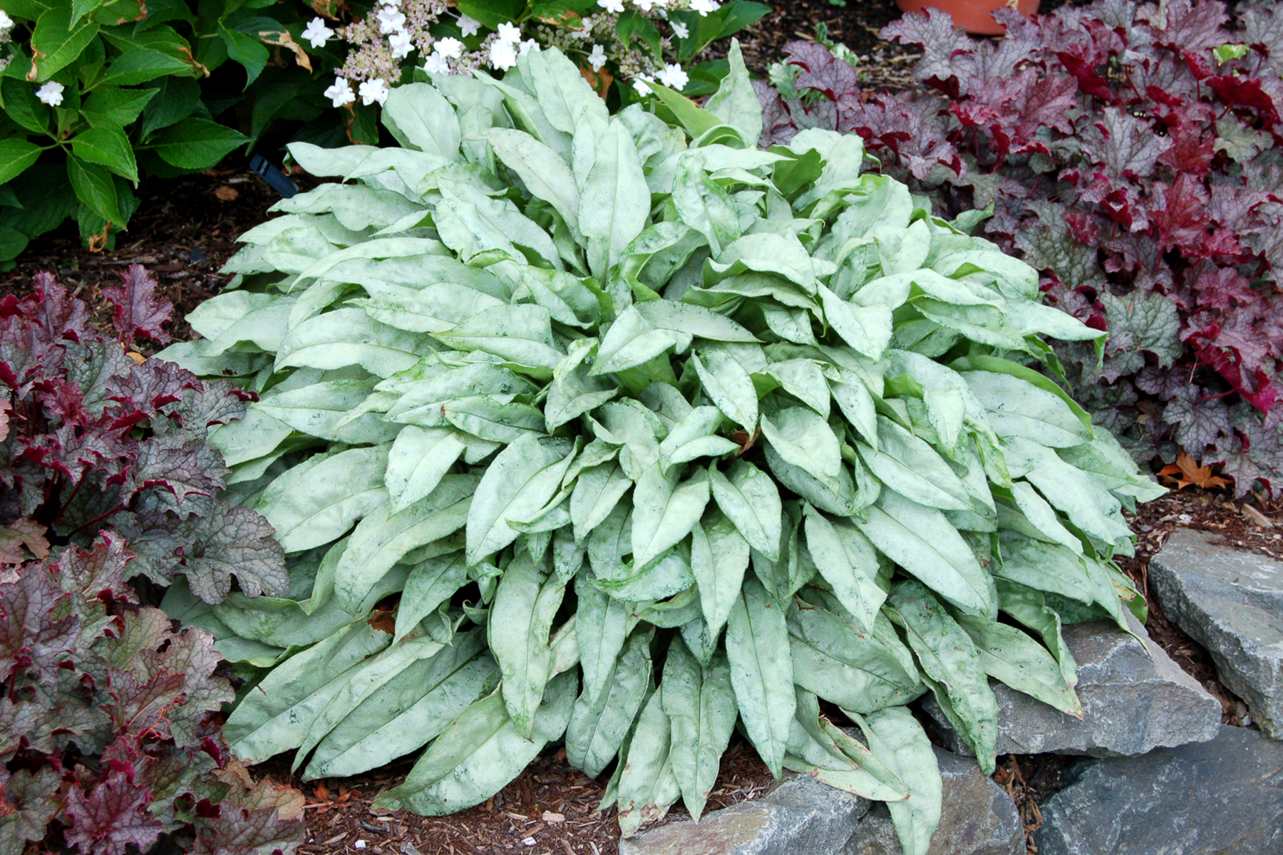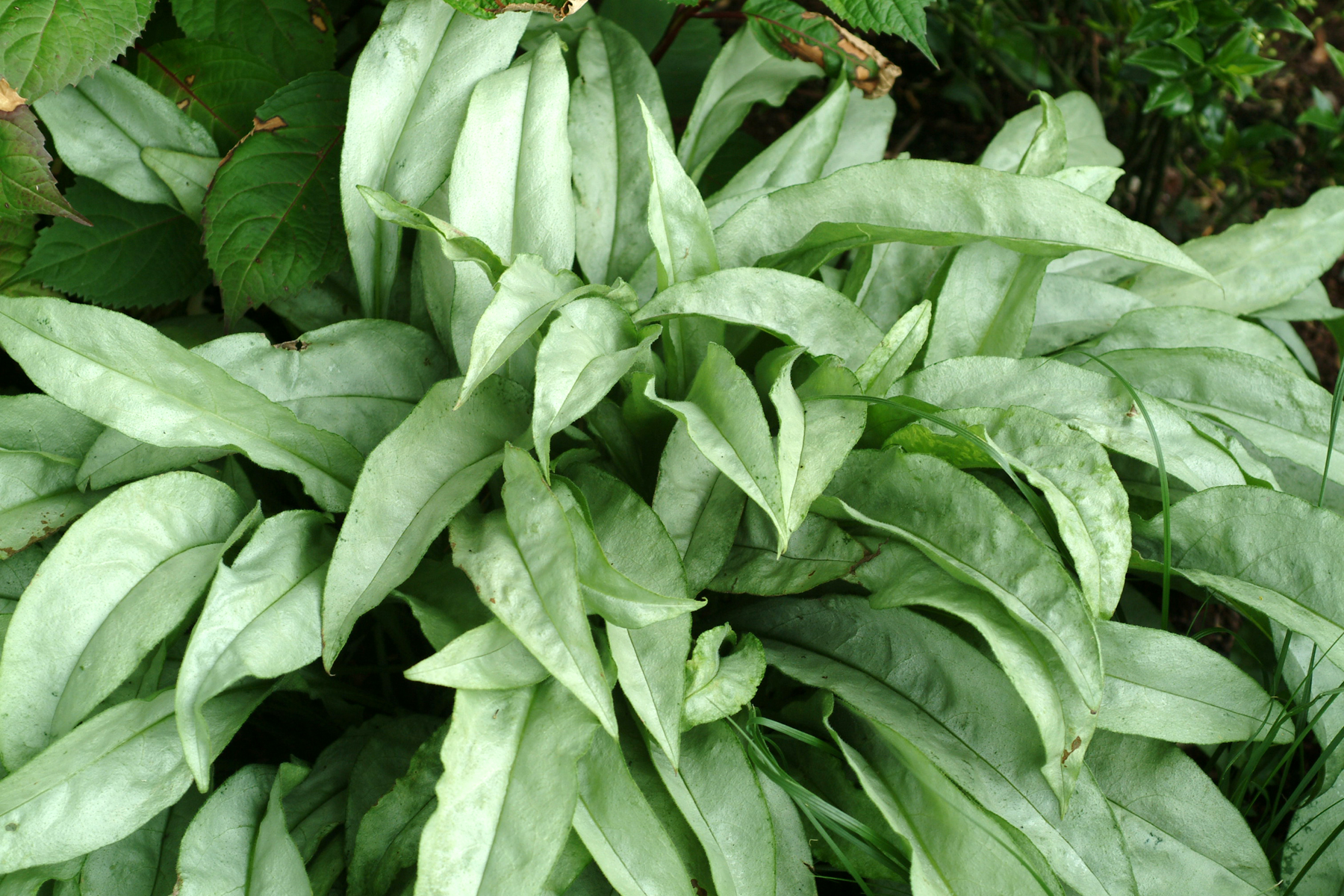 | How Different? | Strap-like, completely pewter-silver leaves, smaller blue flowers, no mildew problems. |