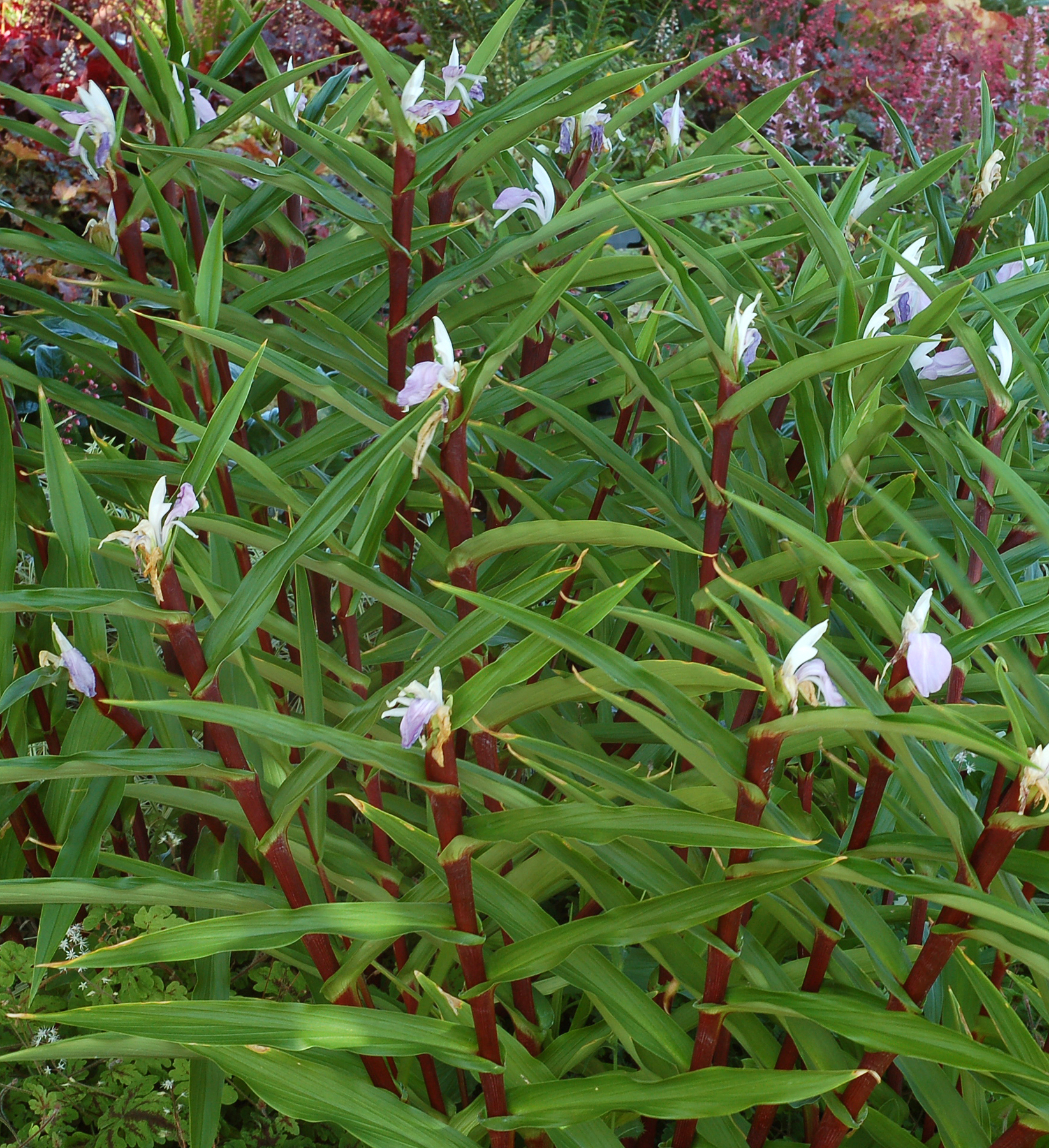 Plucked from the Himalayas, this zone 6 ginger relative is a stunner in a pot or in a shady woodland garden. The blood red stems are striking all season and the large, orchid-like lavender flowers are showy in late summer. While not recommended for the hot and humid south, it makes a superb addition to many gardens.