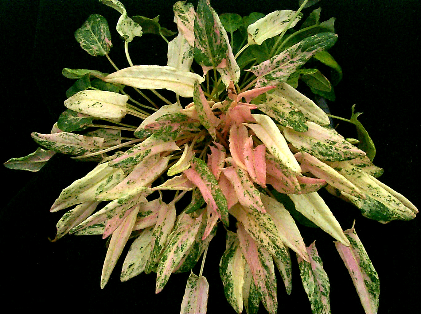 Foliage emerges in the spring a coral pink color. Leaves are green and pink and variegated ivory. Spreads underground.